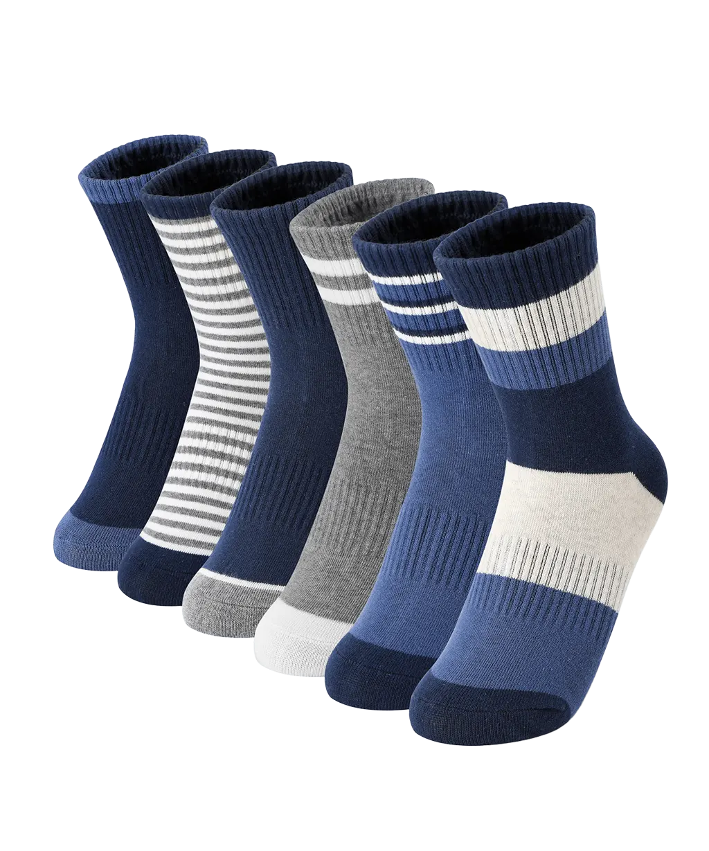MOGGEI Boys Kids Girls Athletic Socks Basketball Sport Youth Crew Cotton Breathable Outdoor Socks 6 Pairs(Blue Stripes Series)