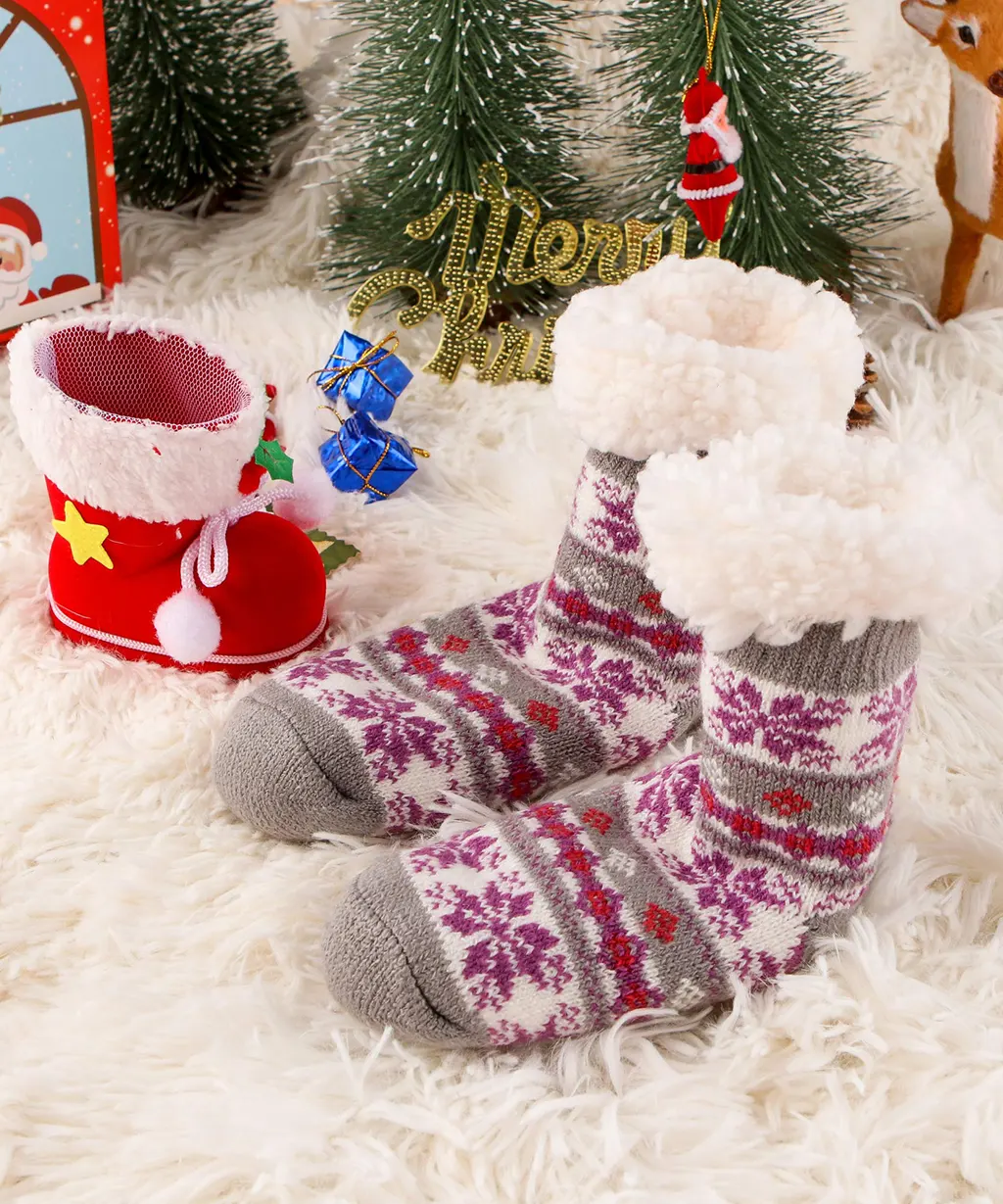 MOGGEI Girls Slipper Fuzzy Socks Kids Boys Fluffy Fleece Lined Warm Plush Sherpa Winter Child Home Socks(Two Deer-grey)