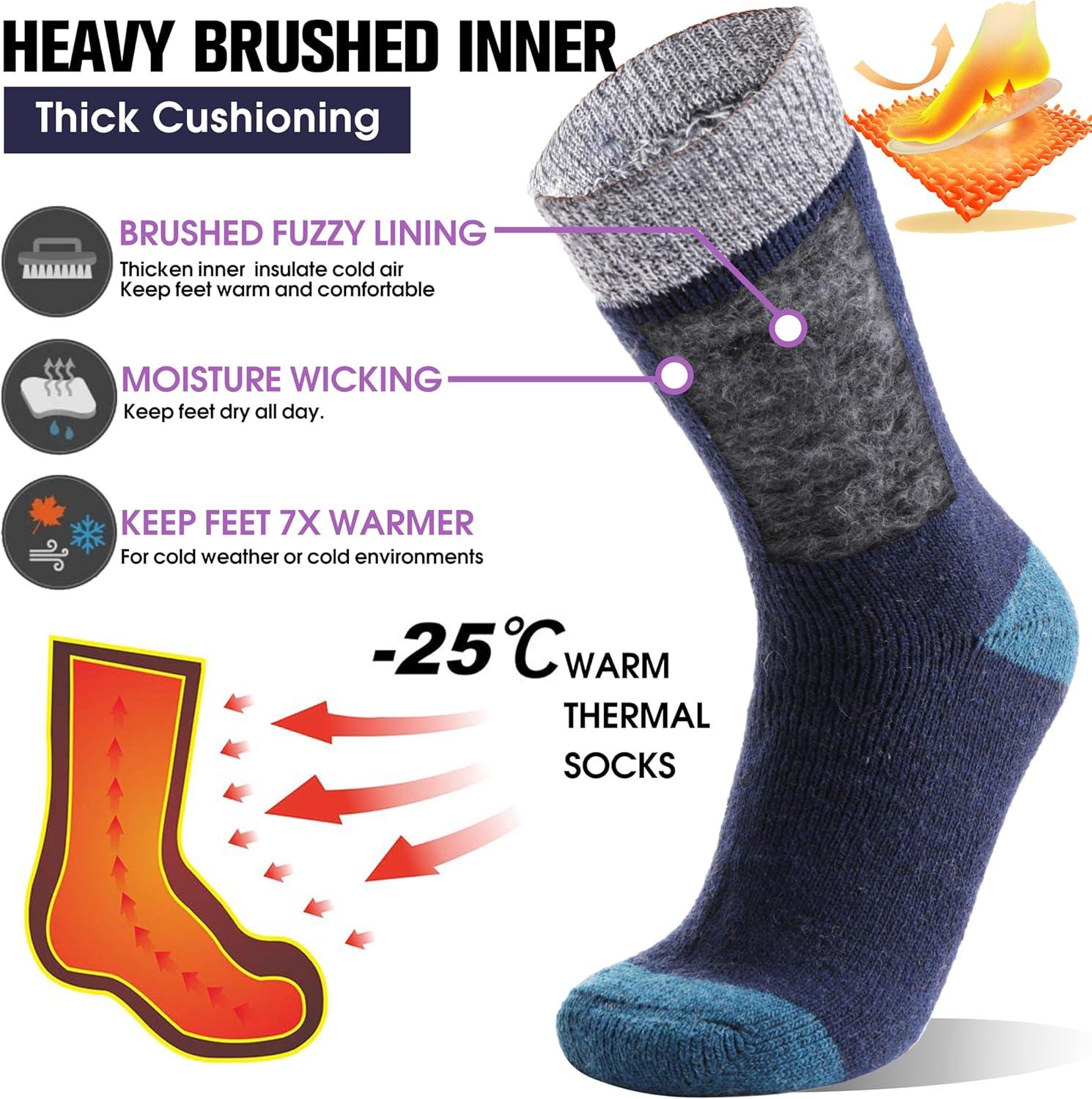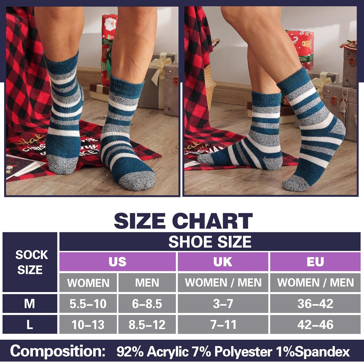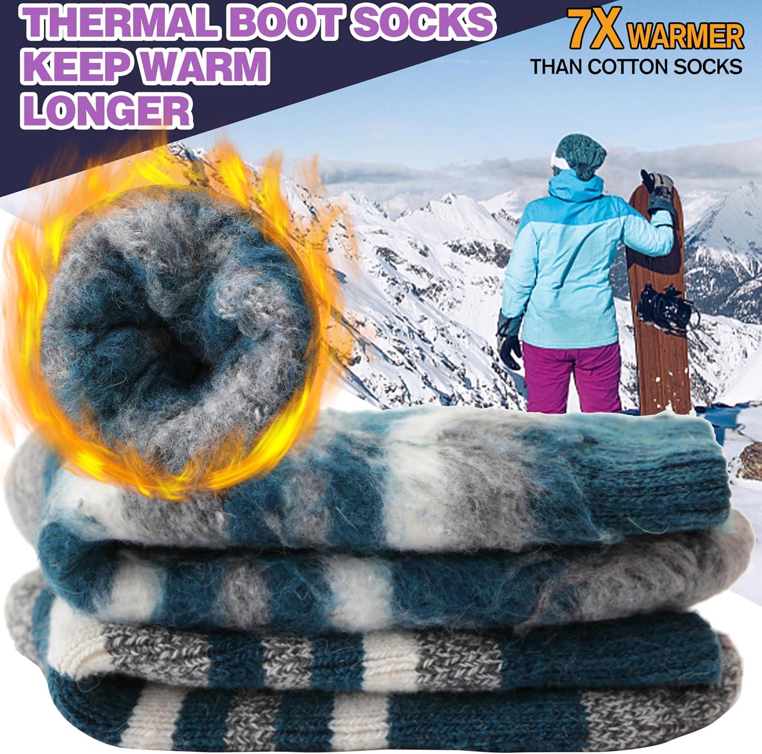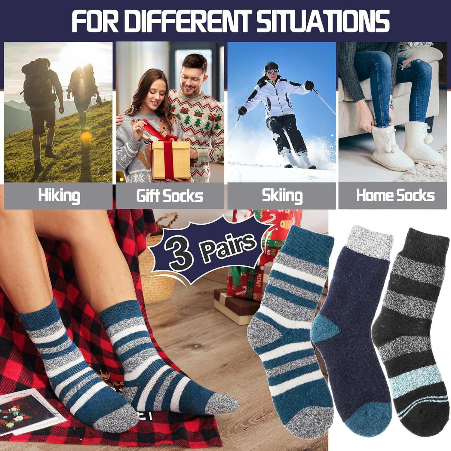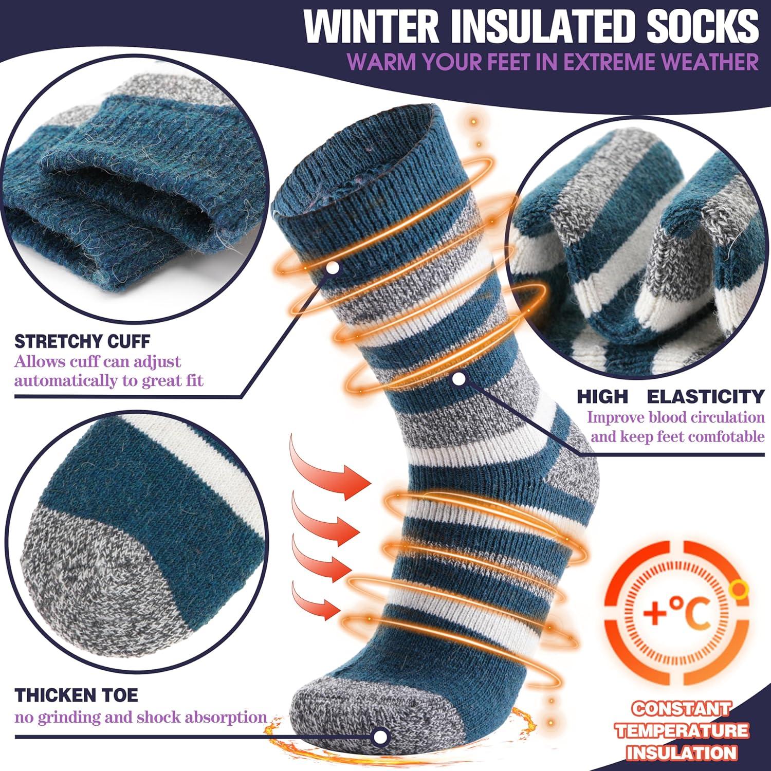 3 Pairs Thermal Warm Socks for Men & Women Thick Winter Extra Warm Insulated Boot Ski Socks for Cold Weather(Blue Stripes)