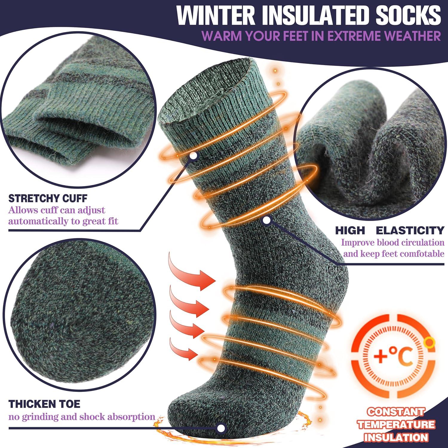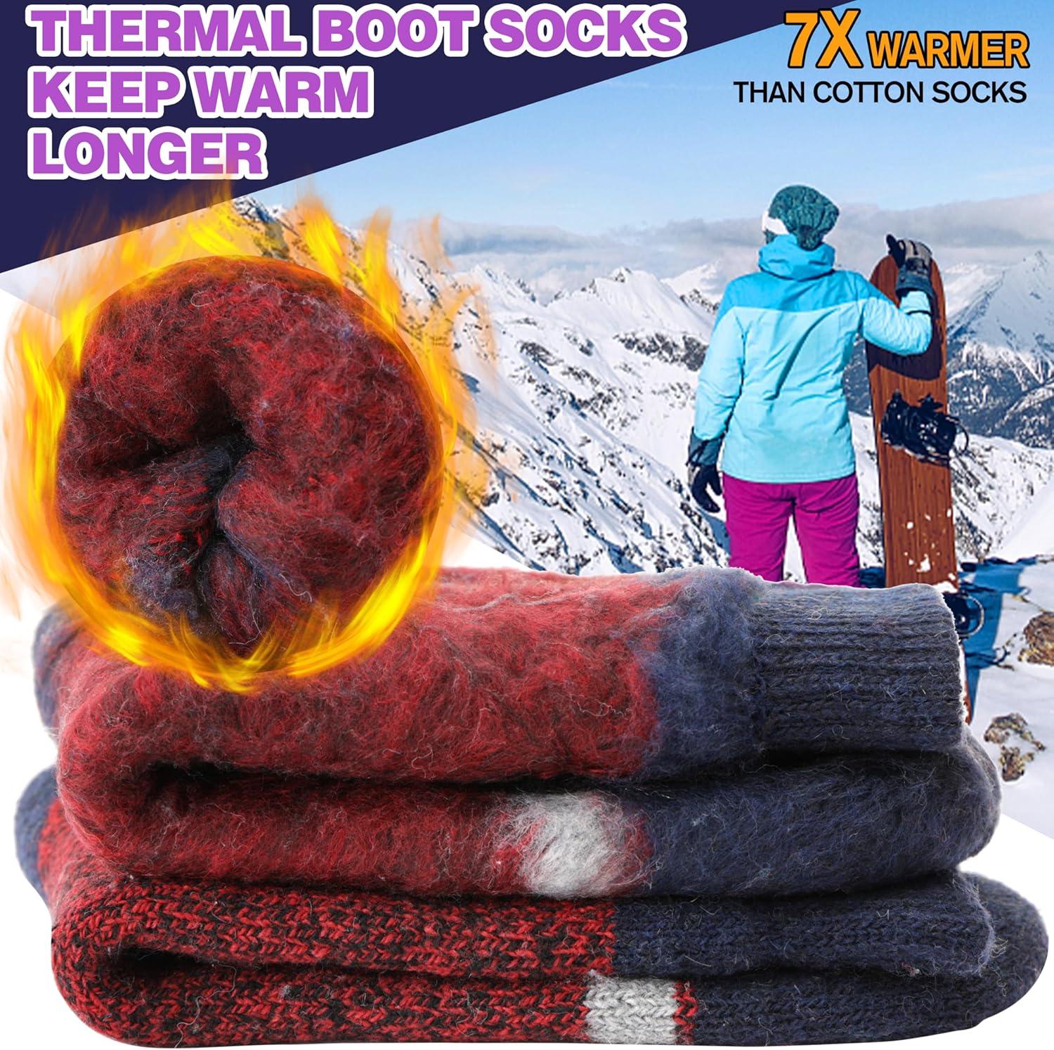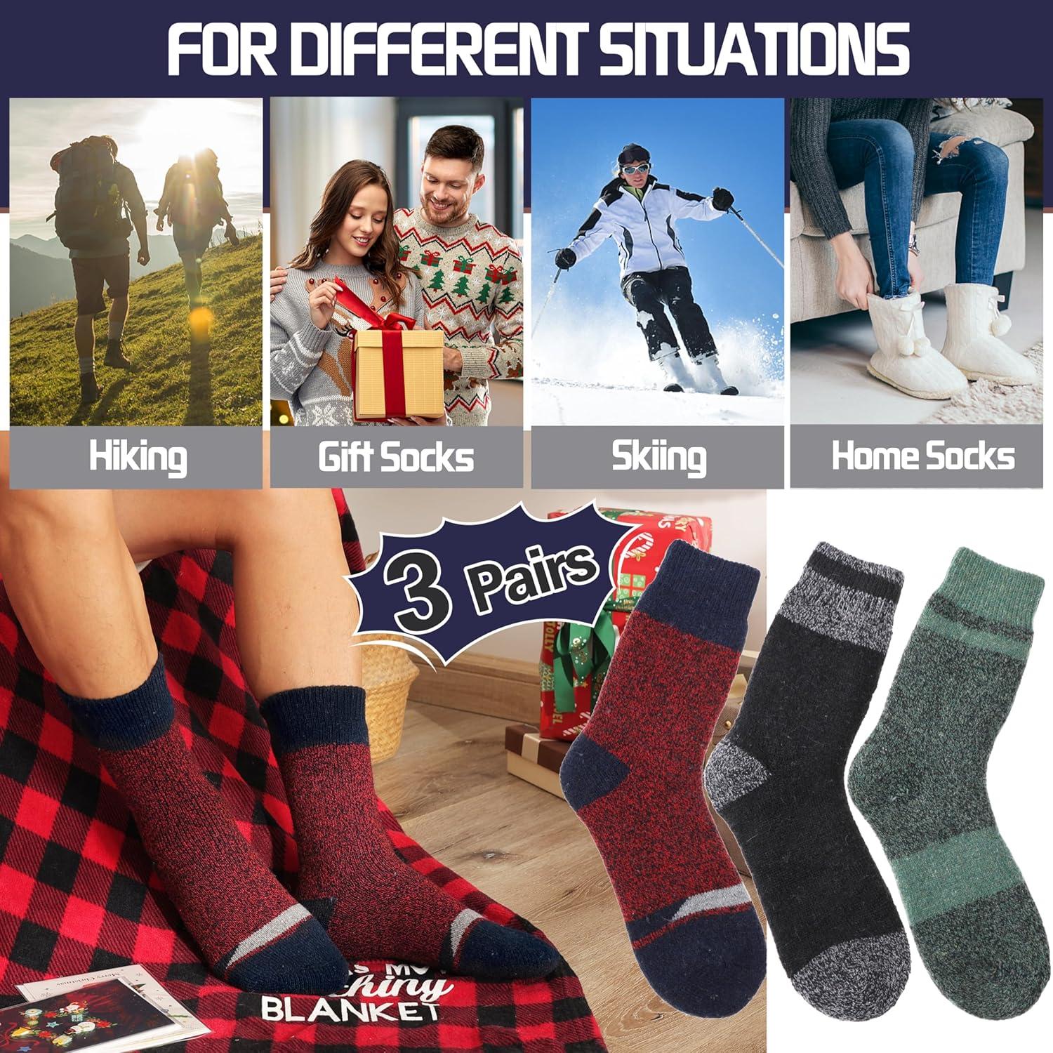 3 Pairs Thermal Warm Socks for Men & Women Thick Winter Extra Warm Insulated Boot Ski Socks for Cold Weather(Green Red Black)