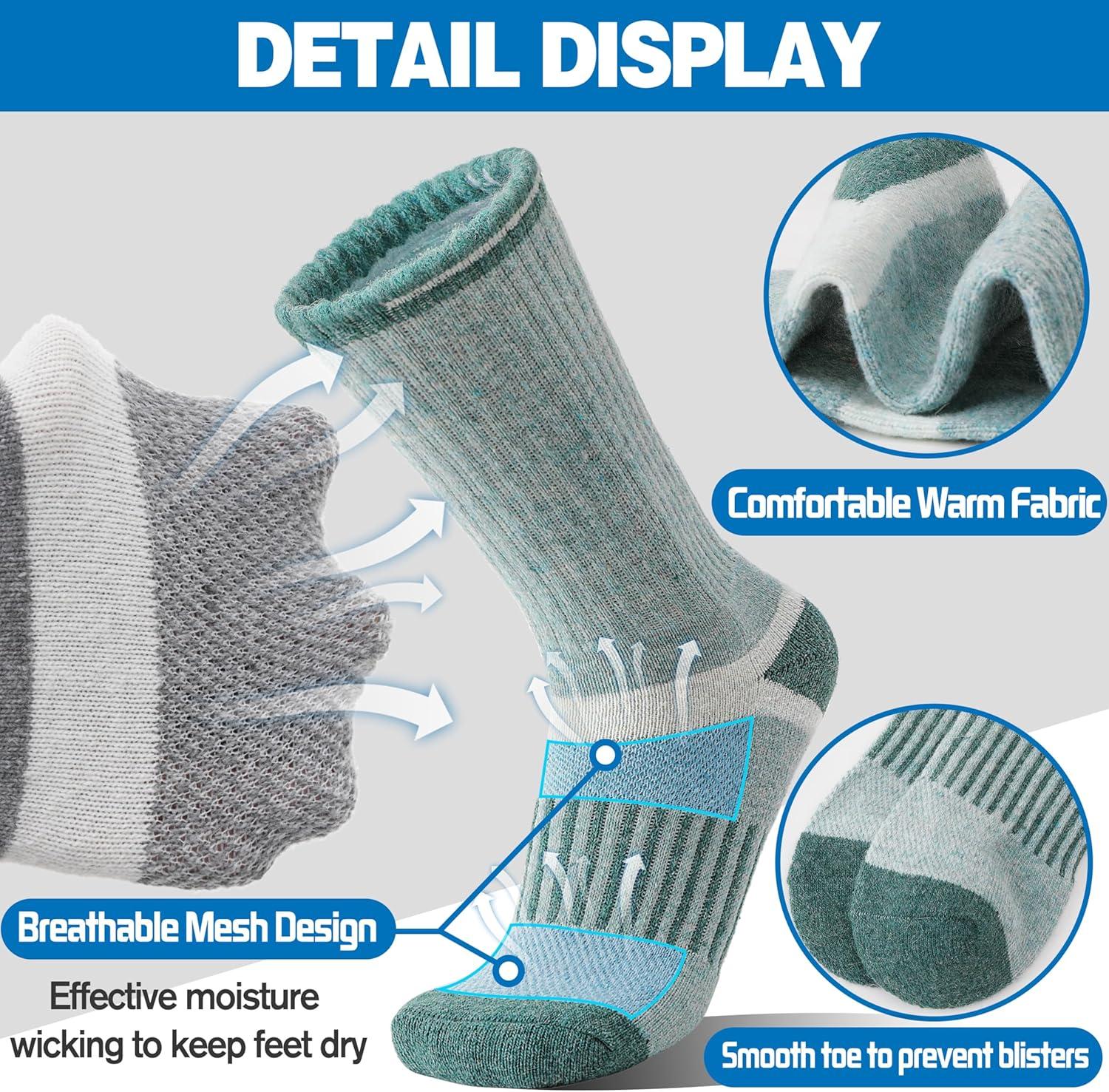 5 Pairs Merino Wool Hiking Socks Warm Thermal Winter Cozy Cushioned Moisture Wicking Socks for Women & Men(Khaki/Purple/Green/Grey)