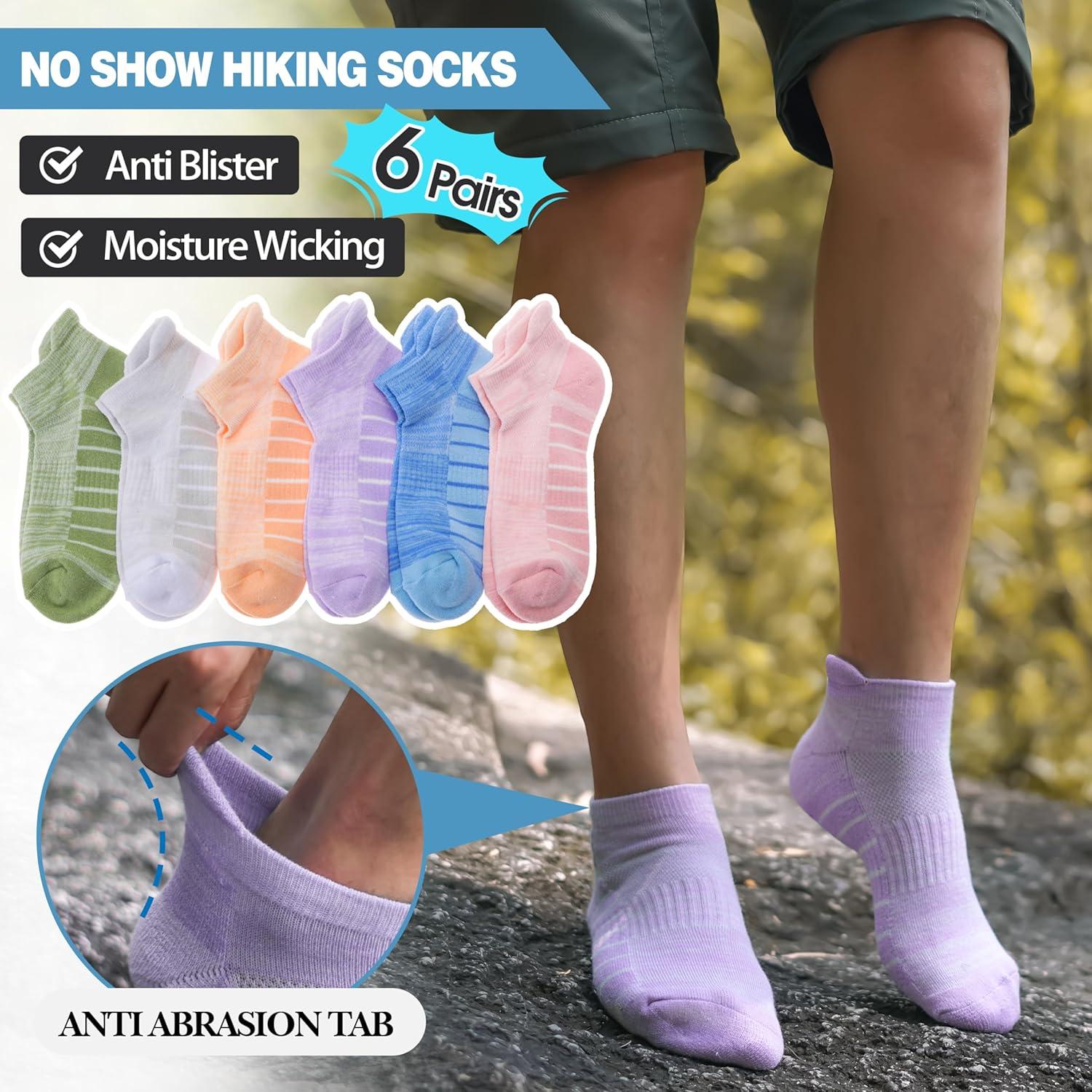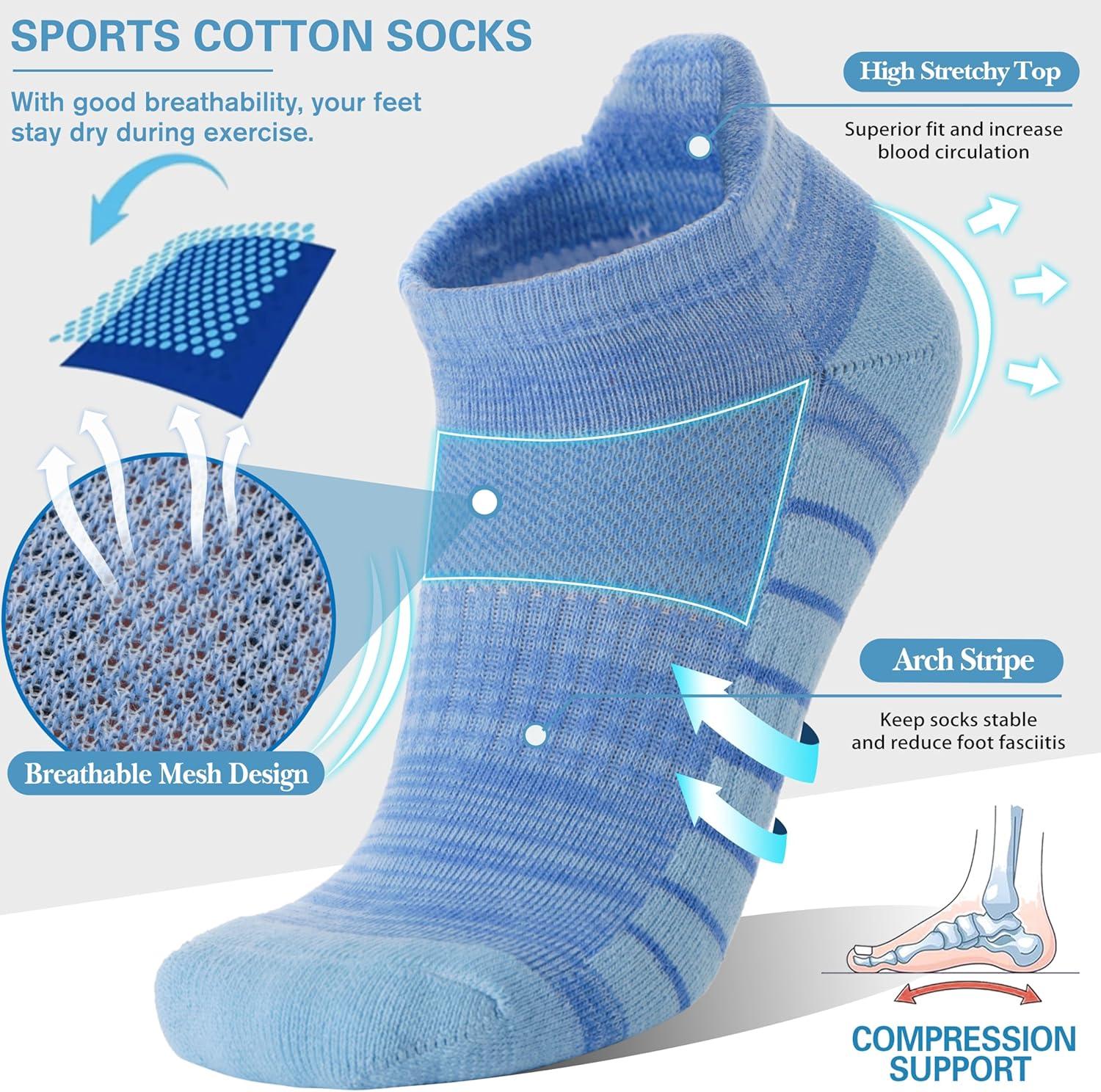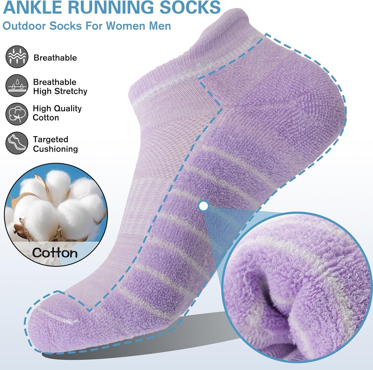 Ankle No Show Running Hiking Athletic Socks Sports Compression Cotton Cushioned Socks 6 Pairs for Women Men(Colorful)