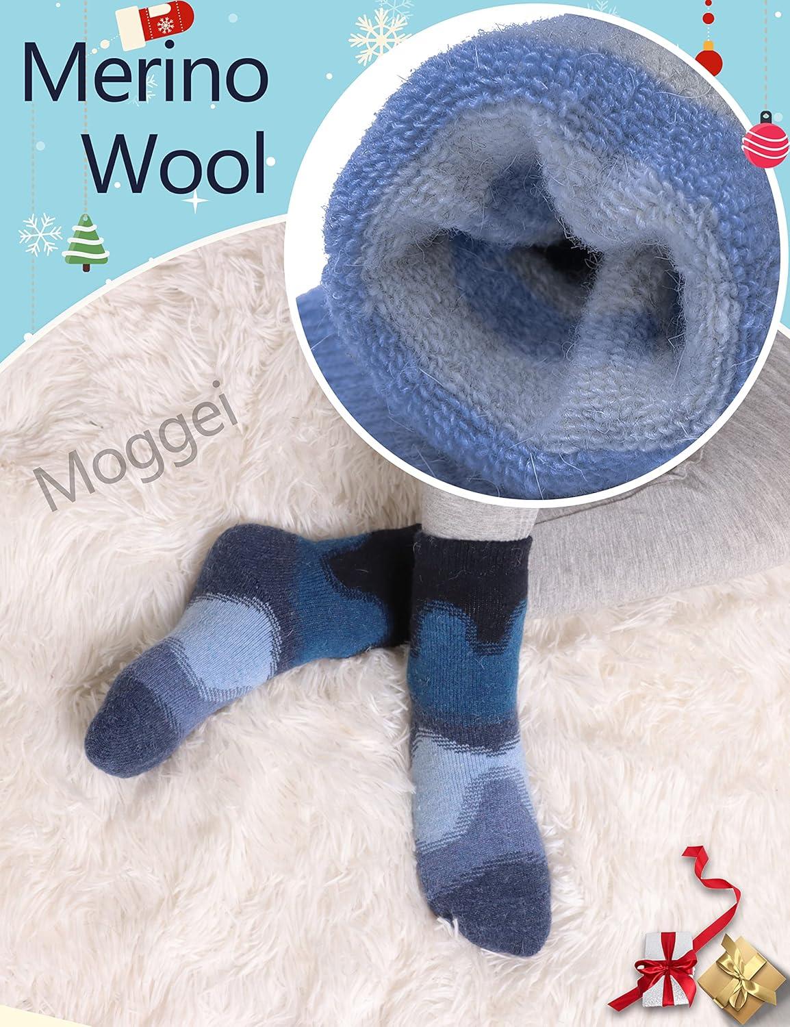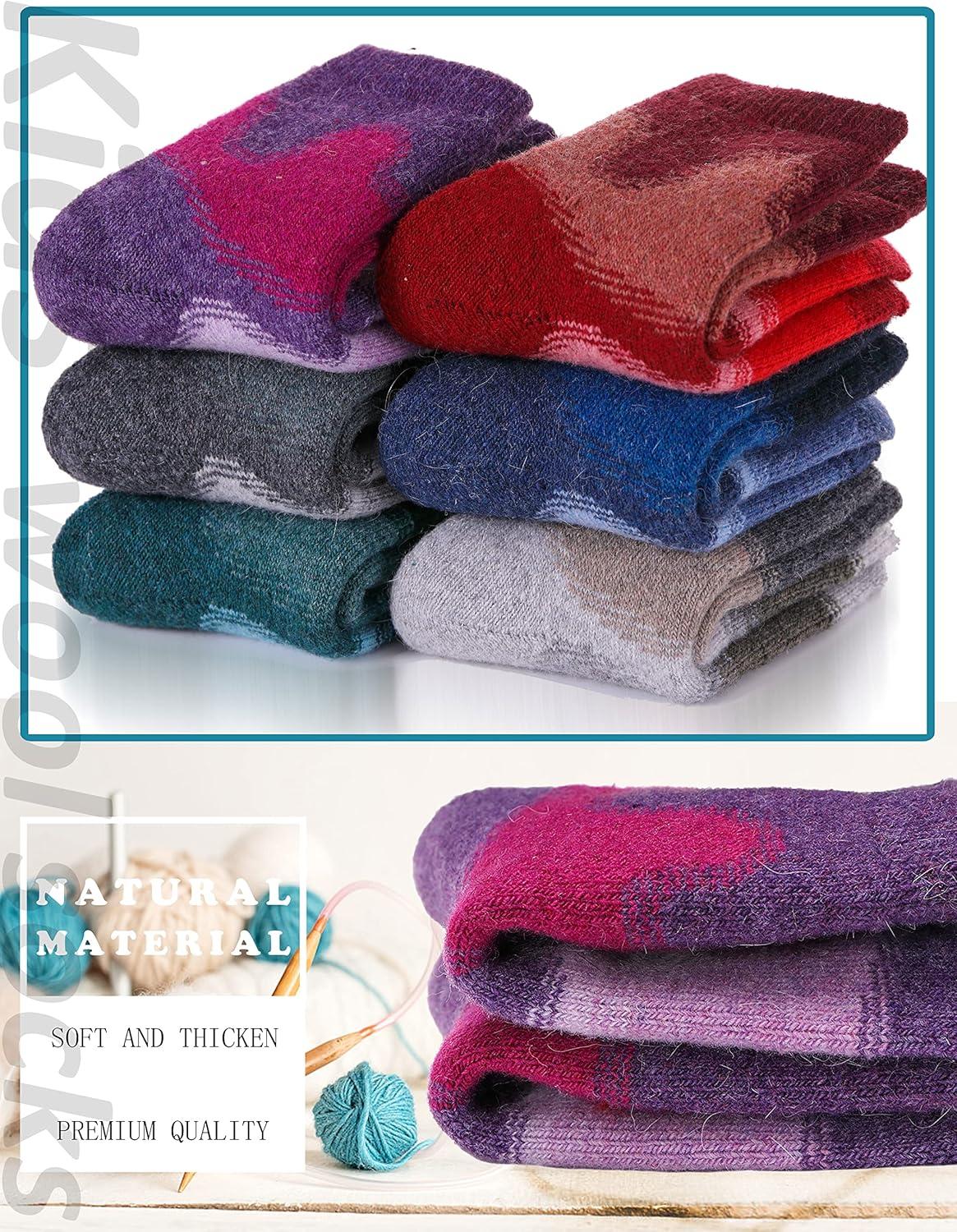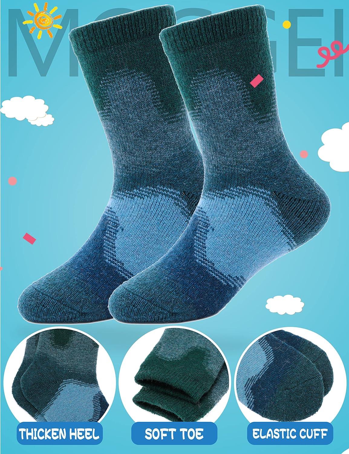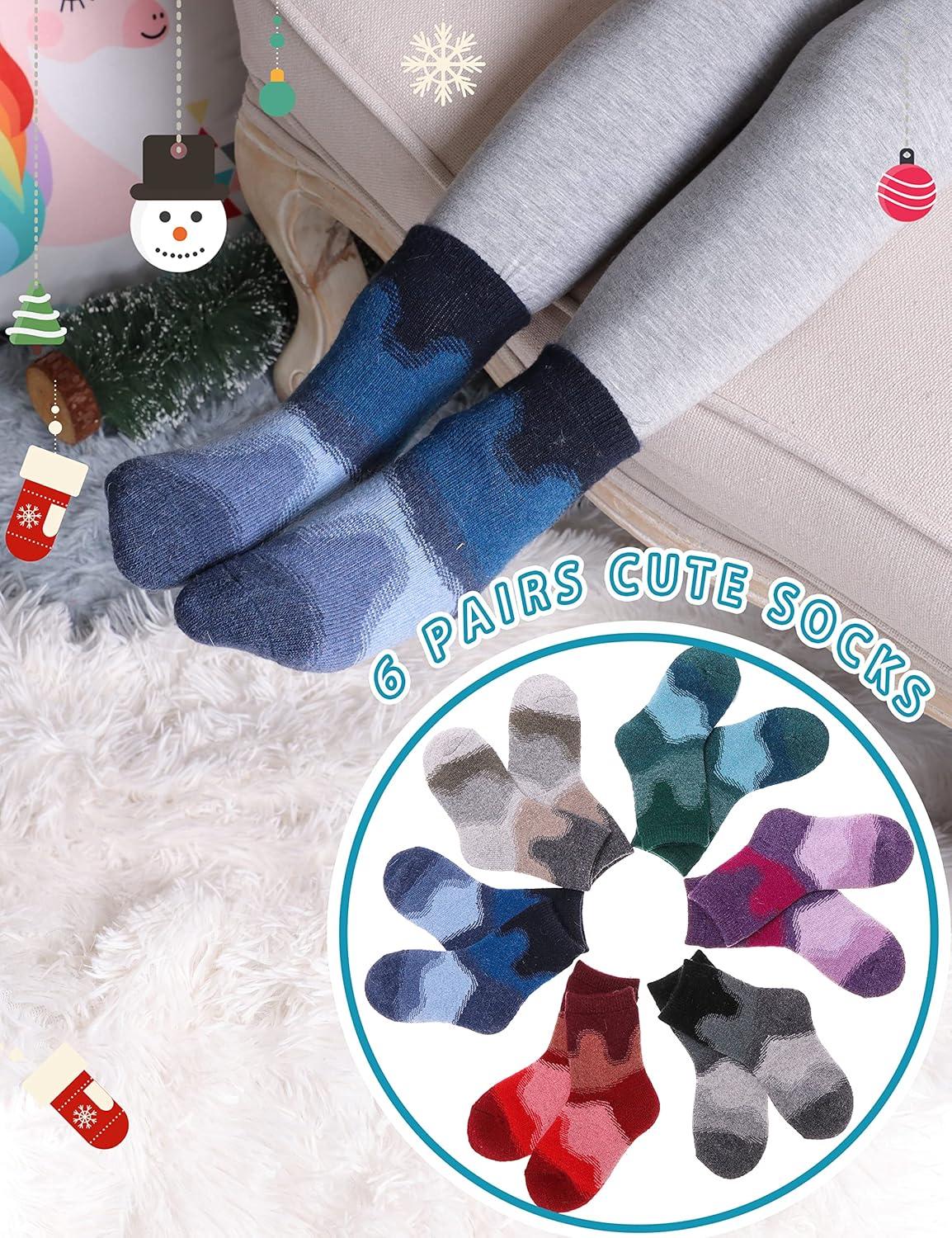 Kids Merino Wool Hiking Socks Boys Girls Toddler Thermal Winter Warm Thick Cushioned Moisture Wicking Socks 6 Pairs(Purple/Black/Red/Grey/Blue/Green)