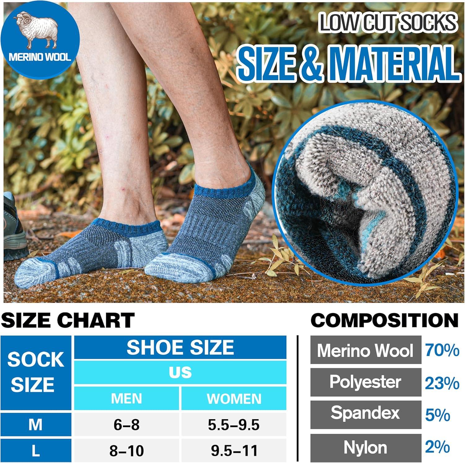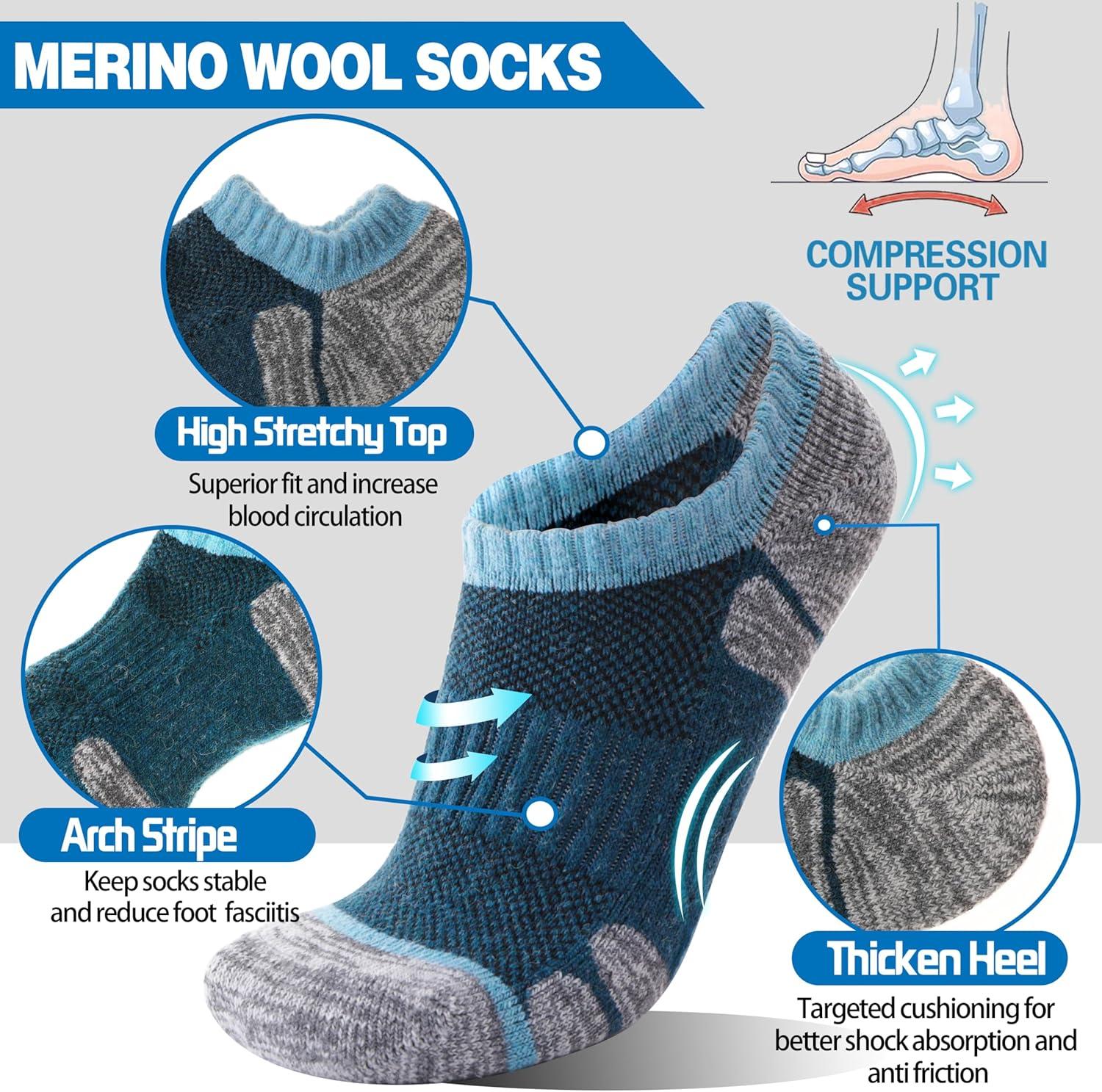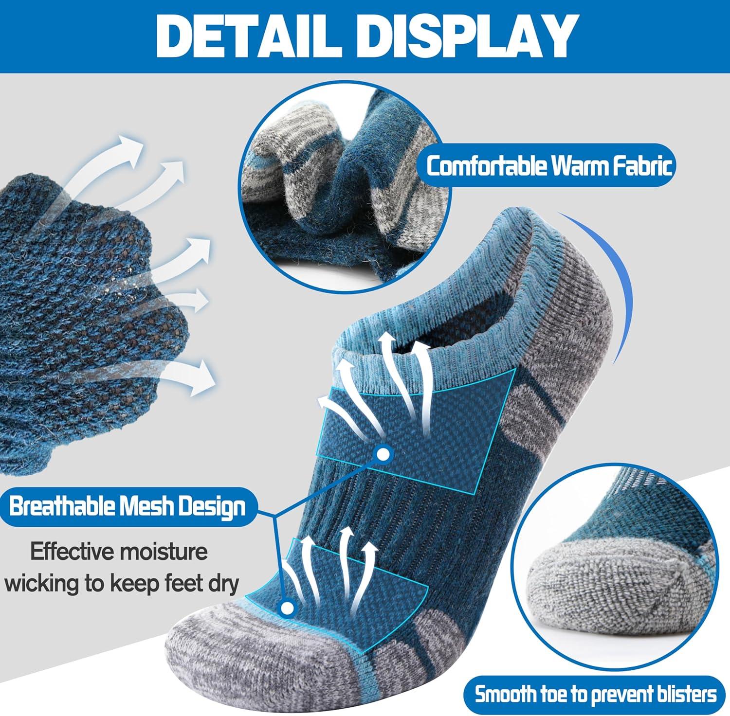 Merino Wool Hiking Running No Show Socks for Women Men Thick Warm Athletic Low Cut Thermal Ankle Socks 6 Pairs(Assorted)