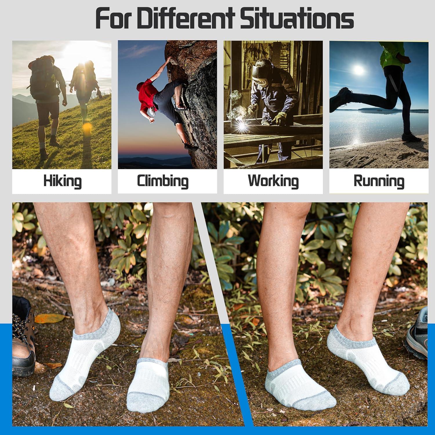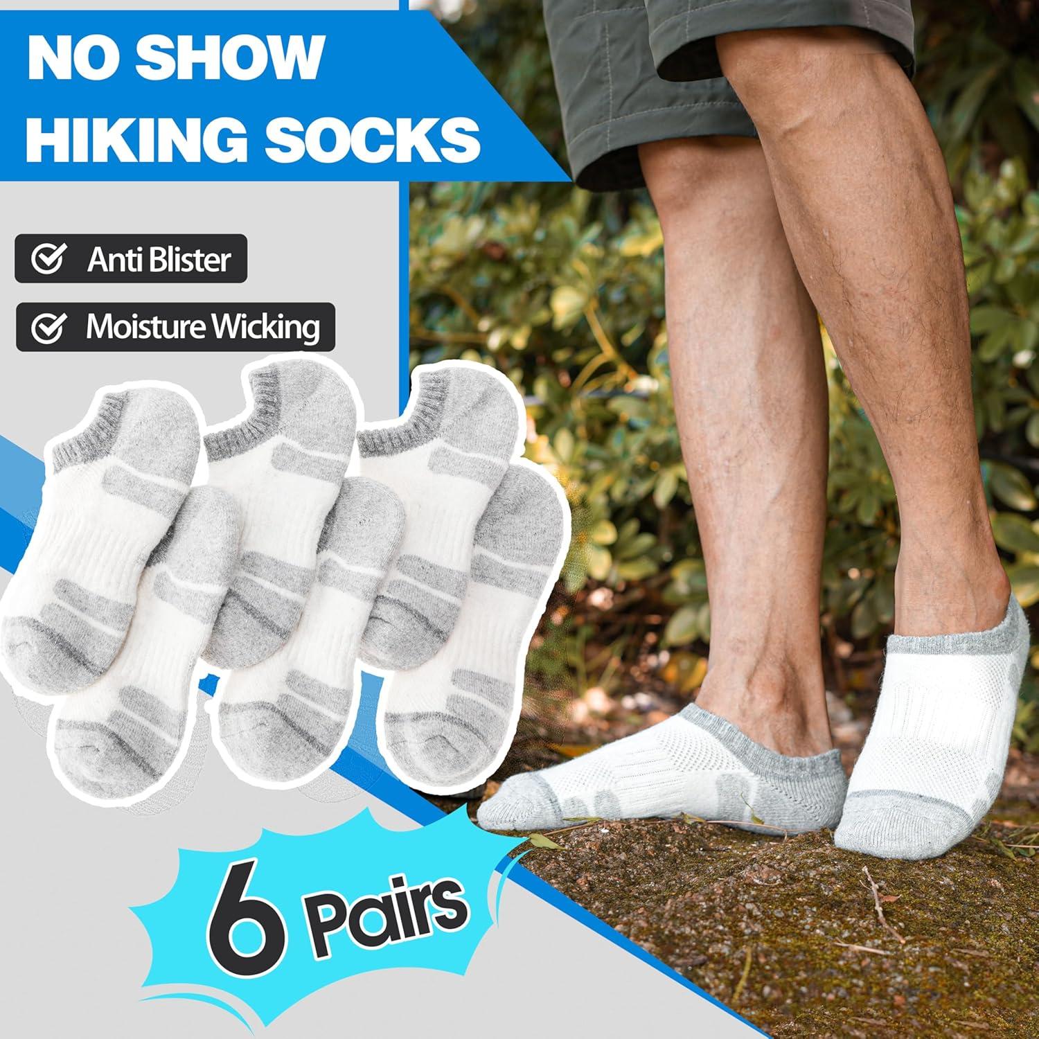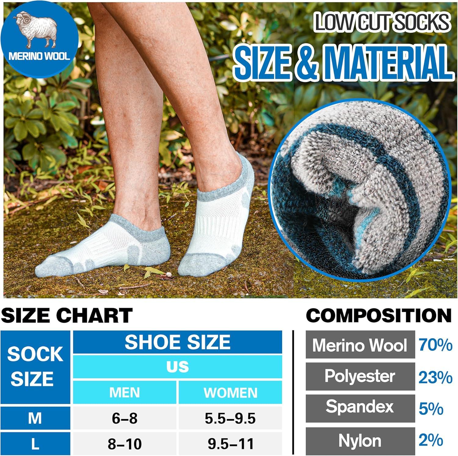 Merino Wool Hiking Running No Show Socks for Women Men Thick Warm Athletic Low Cut Thermal Ankle Socks 6 Pairs(Grey White)
