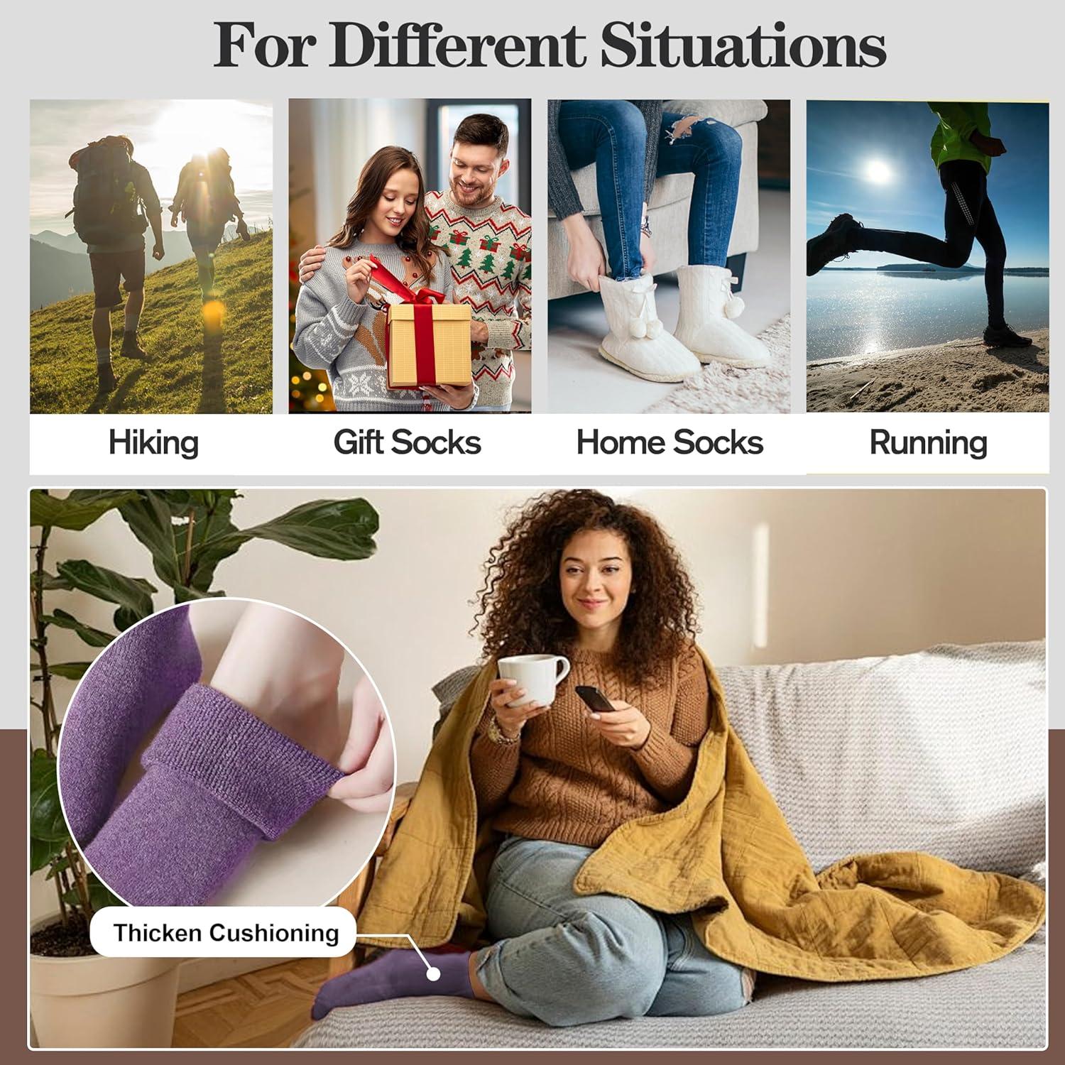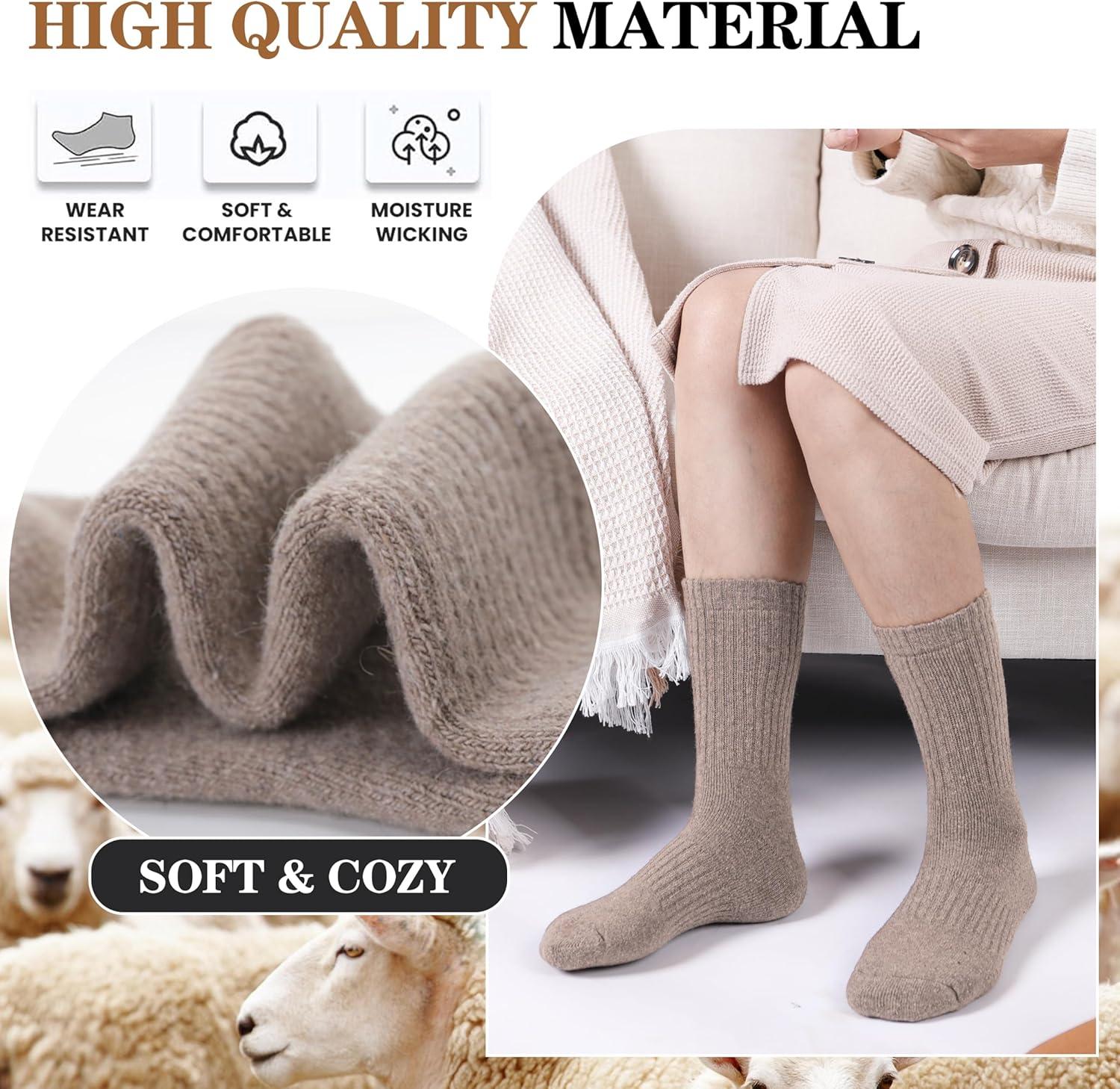MOGGEI 5 Pairs Womens Merino Wool Socks Hiking Warm Winter Thick Thermal Crew Cozy Cabin Ladies Gift Comfy Boot Work Socks(Black/Grey/Light Violet/Light Coffee/White)