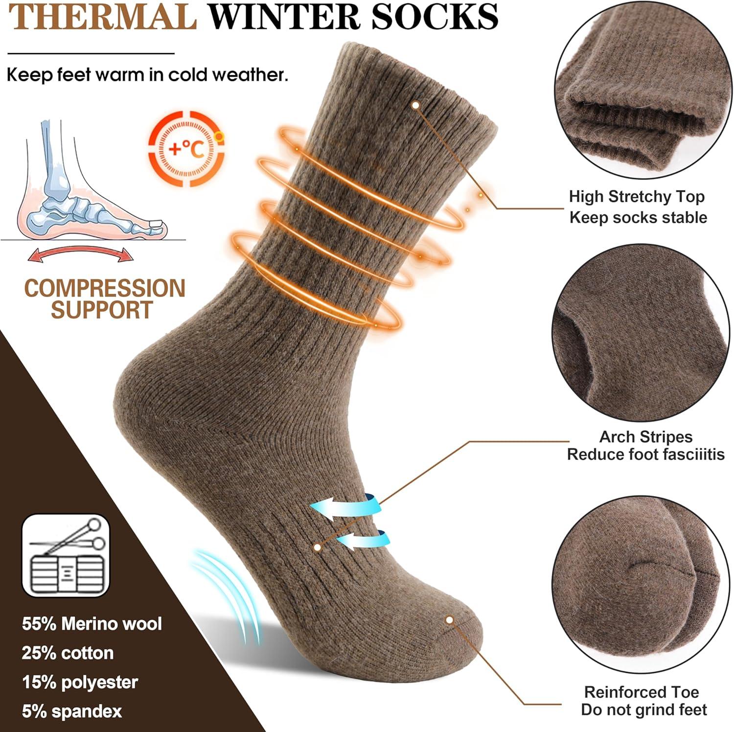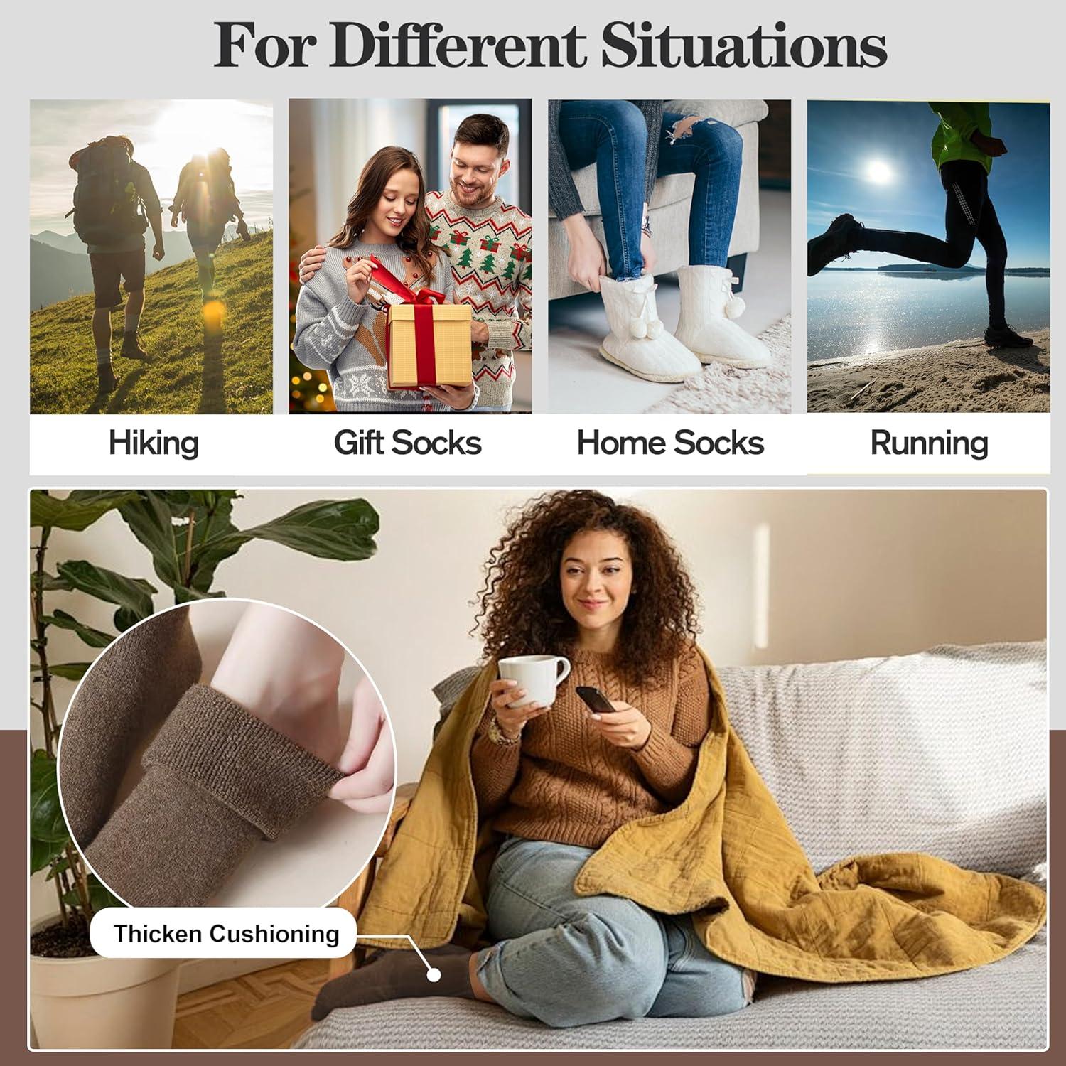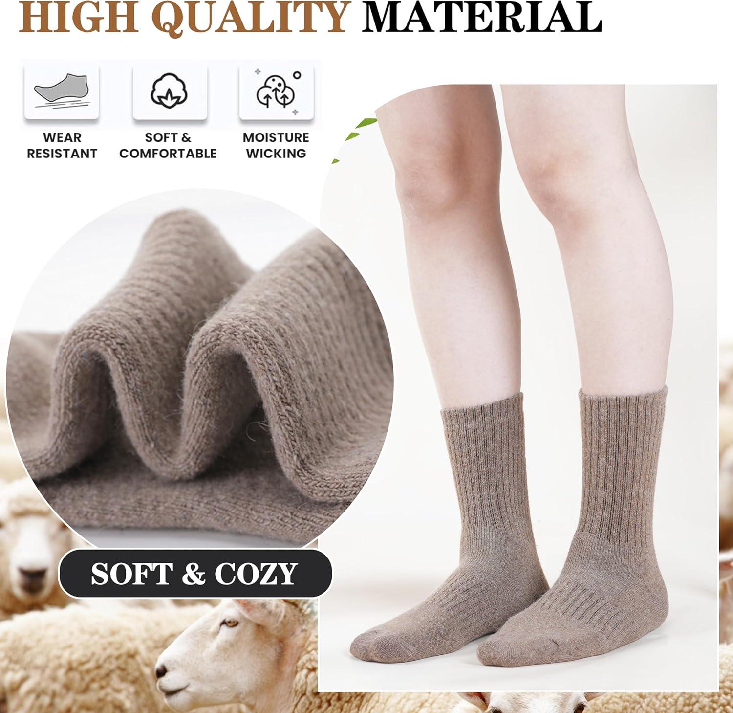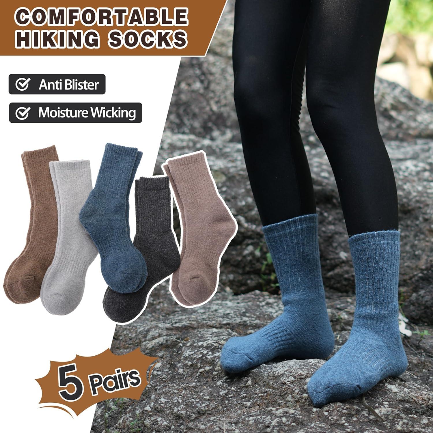 MOGGEI 5 Pairs Womens Merino Wool Socks Hiking Warm Winter Thick Thermal Crew Cozy Cabin Ladies Gift Comfy Boot Work Socks(Dark Grey/Khaki Series/Blue/Grey)