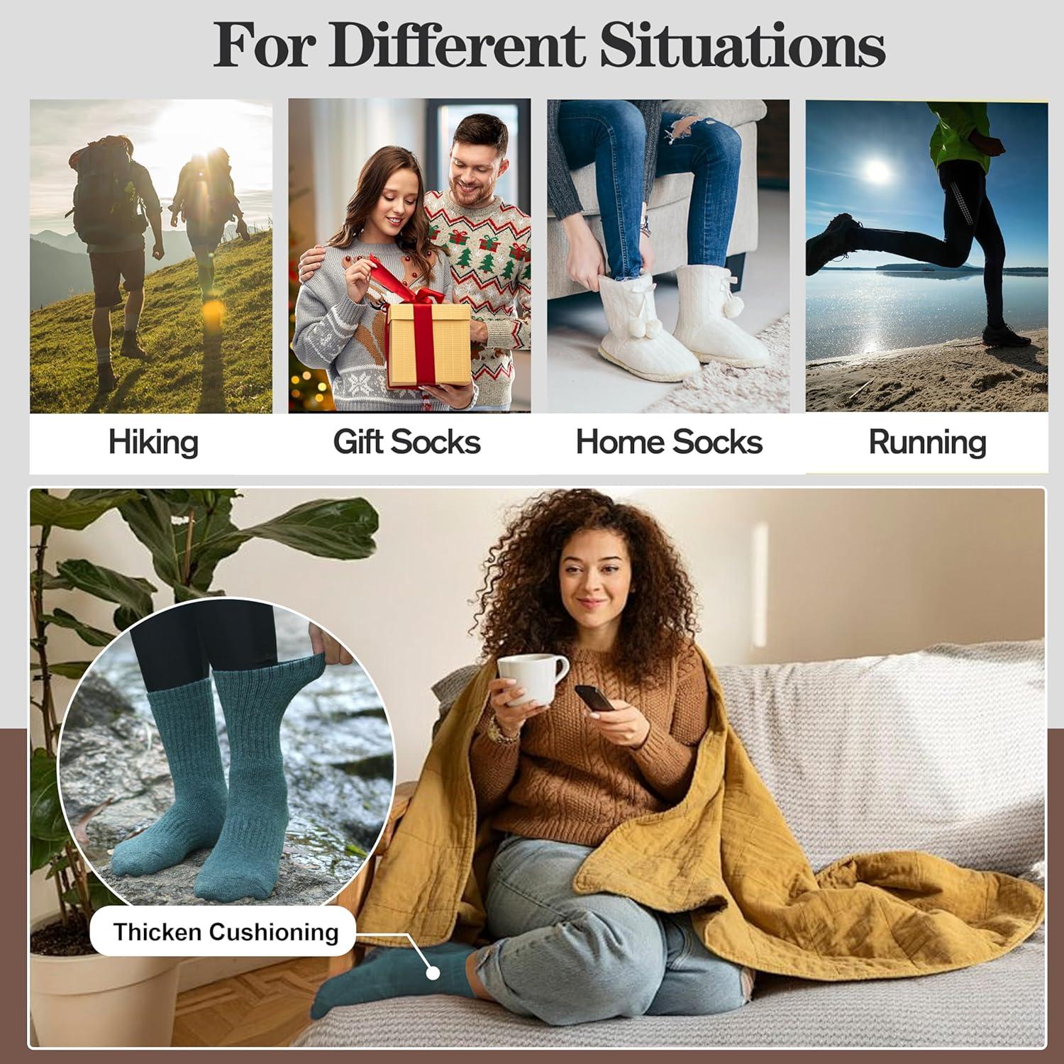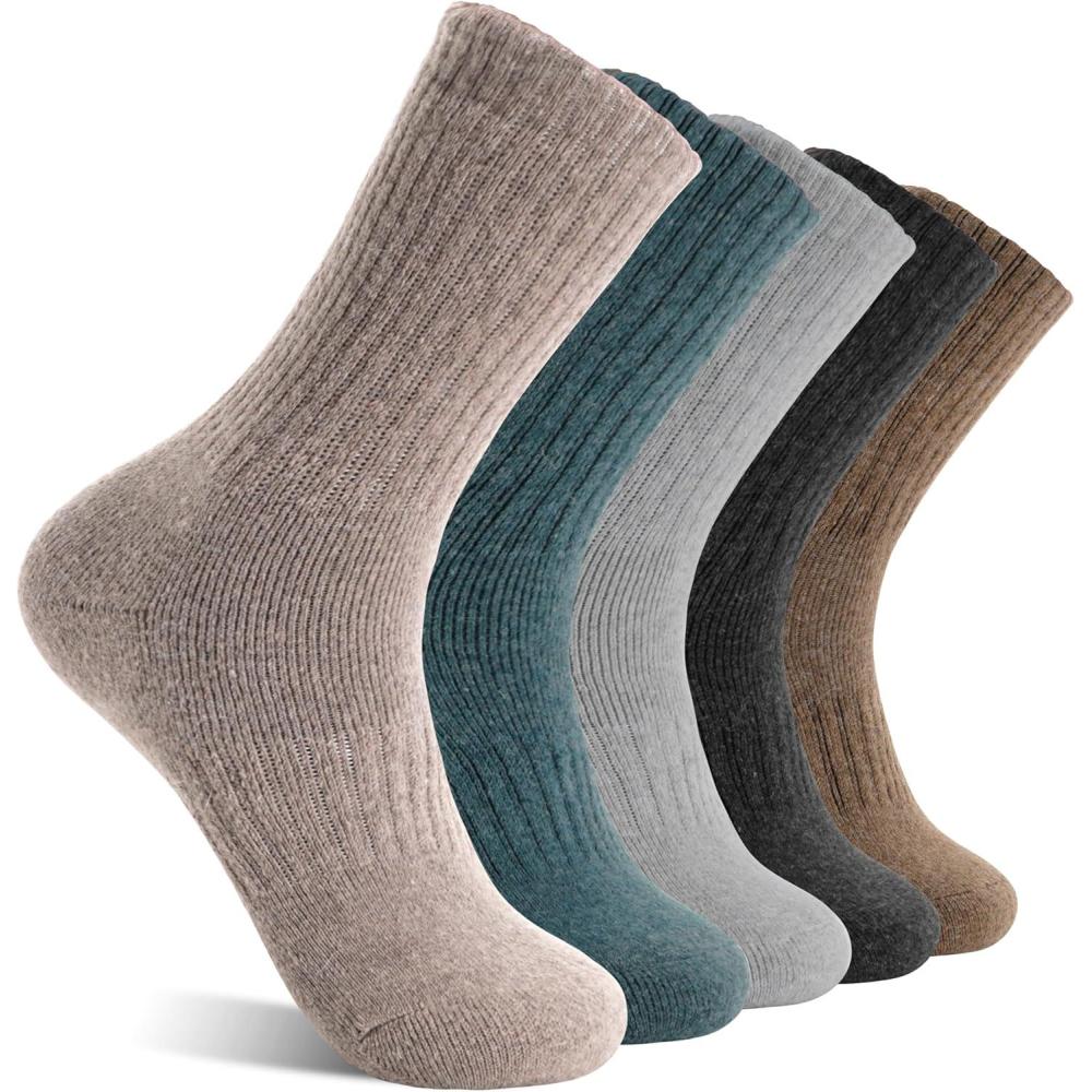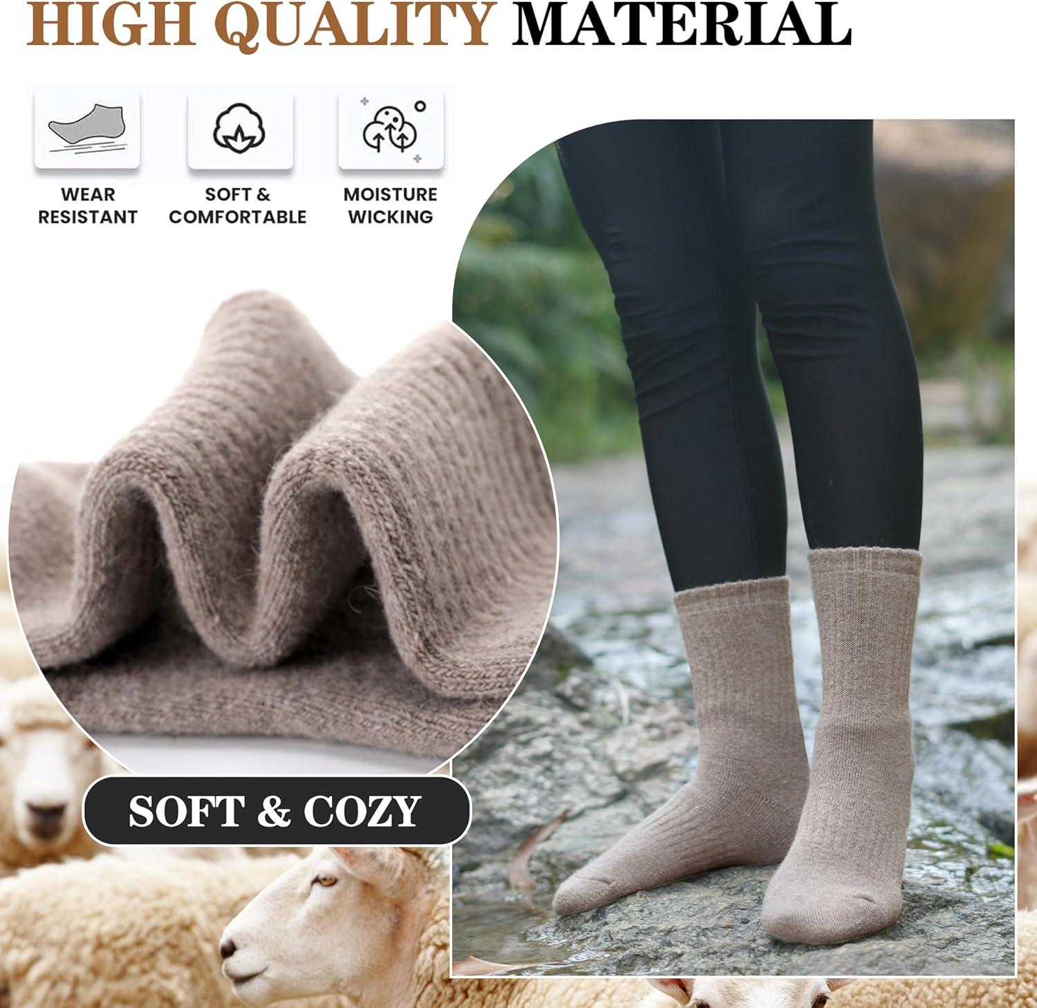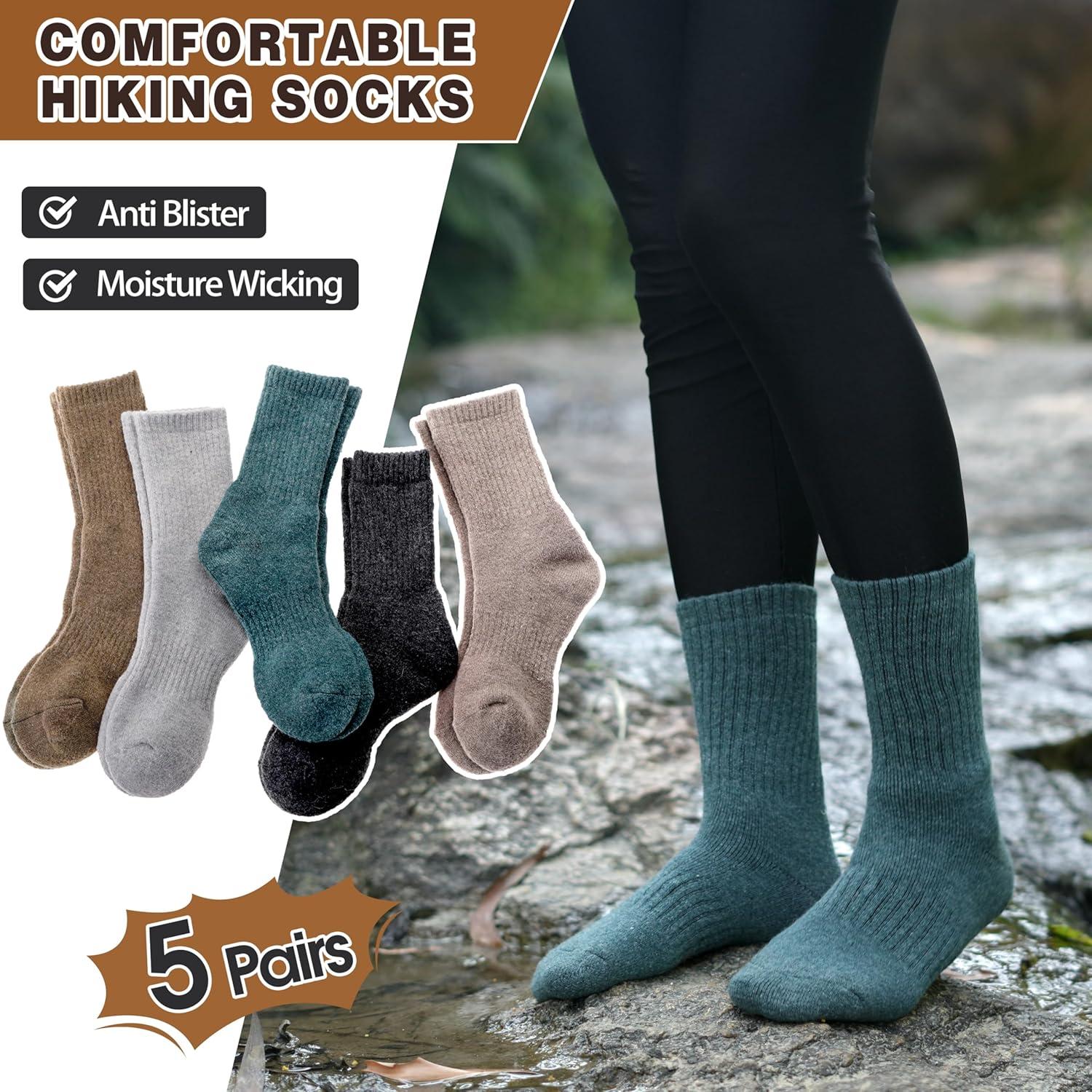 MOGGEI 5 Pairs Womens Merino Wool Socks Hiking Warm Winter Thick Thermal Crew Cozy Cabin Ladies Gift Comfy Boot Work Socks(Grey/Khaki Series/Green/Grey)