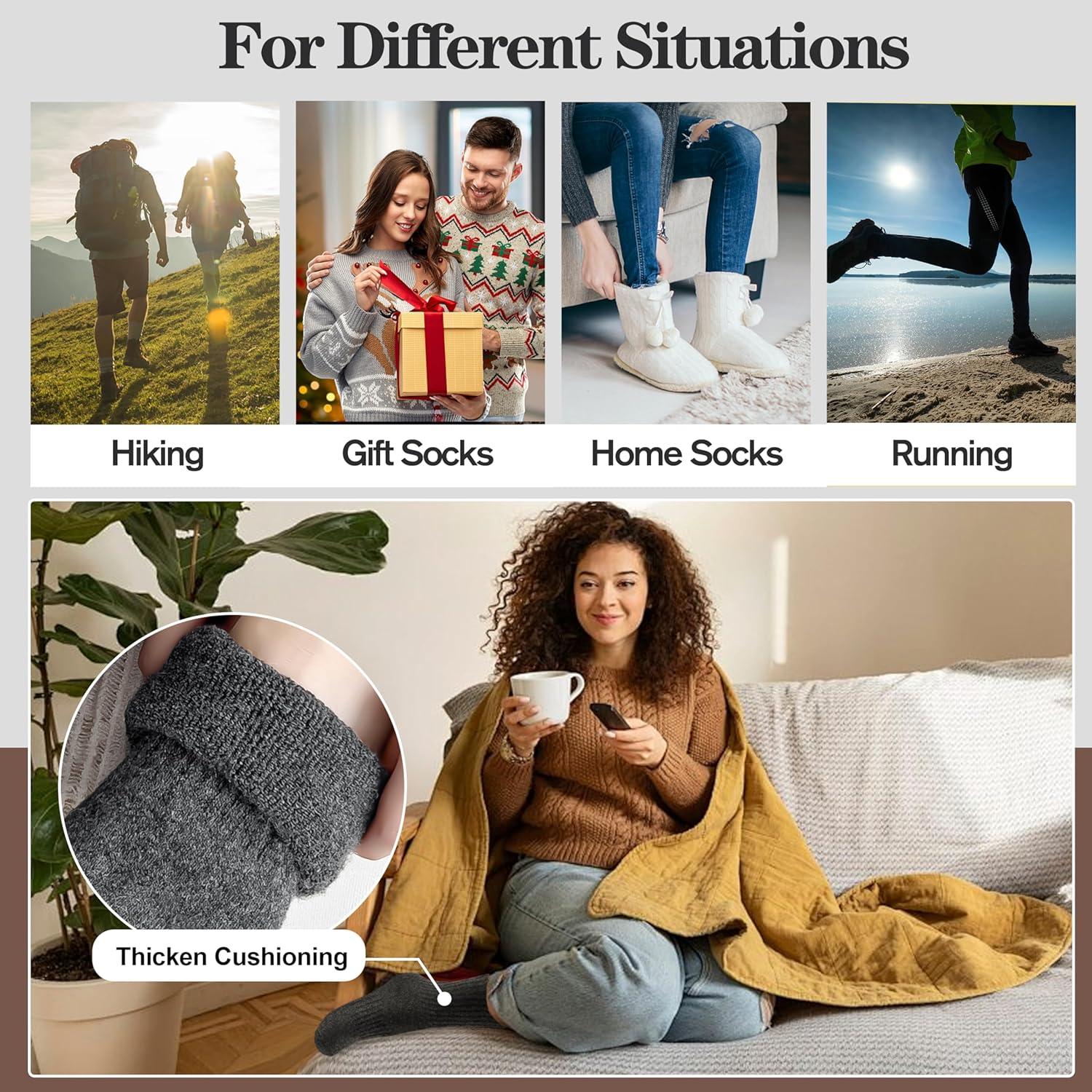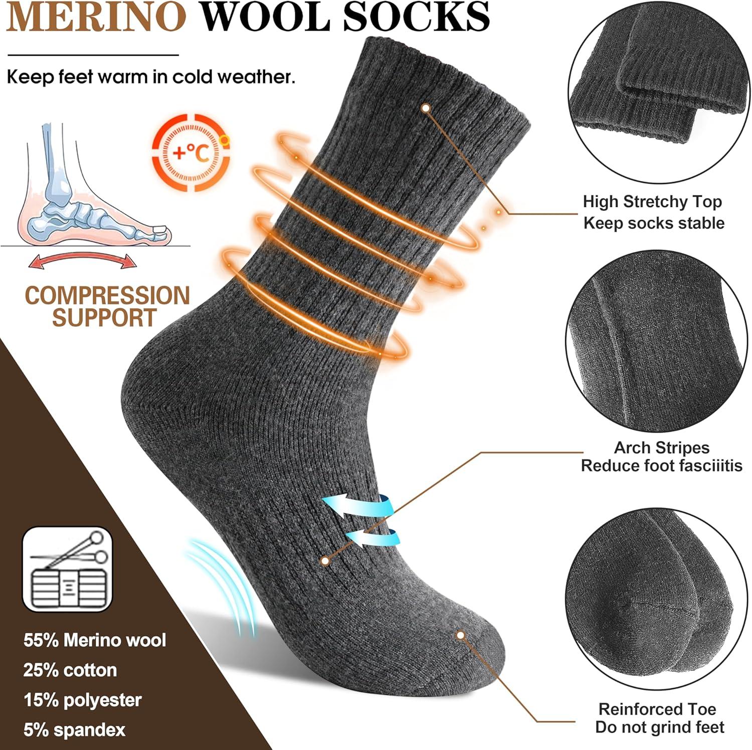MOGGEI 5 Pairs Womens Merino Wool Socks Hiking Warm Winter Thick Thermal Crew Cozy Cabin Ladies Gift Comfy Boot Work Socks(Grey)