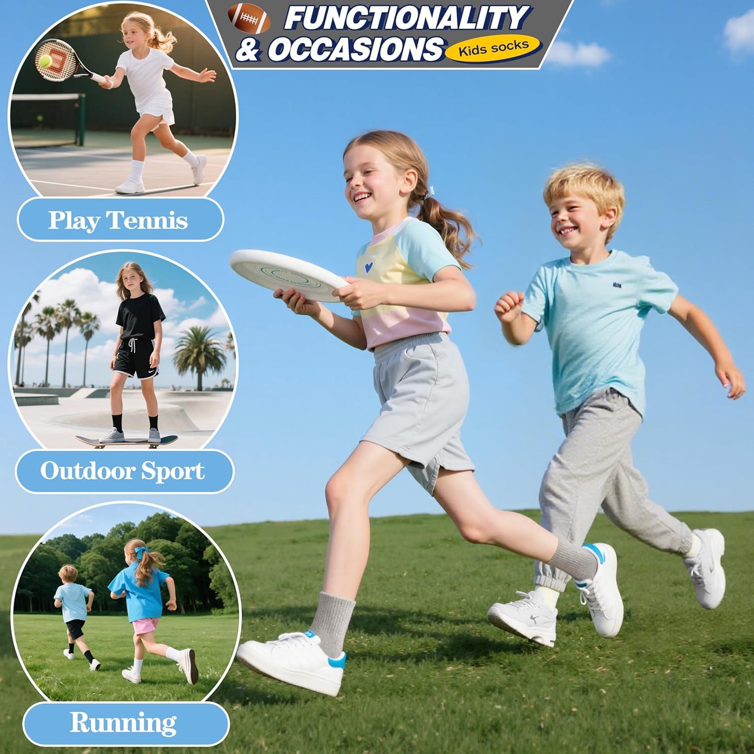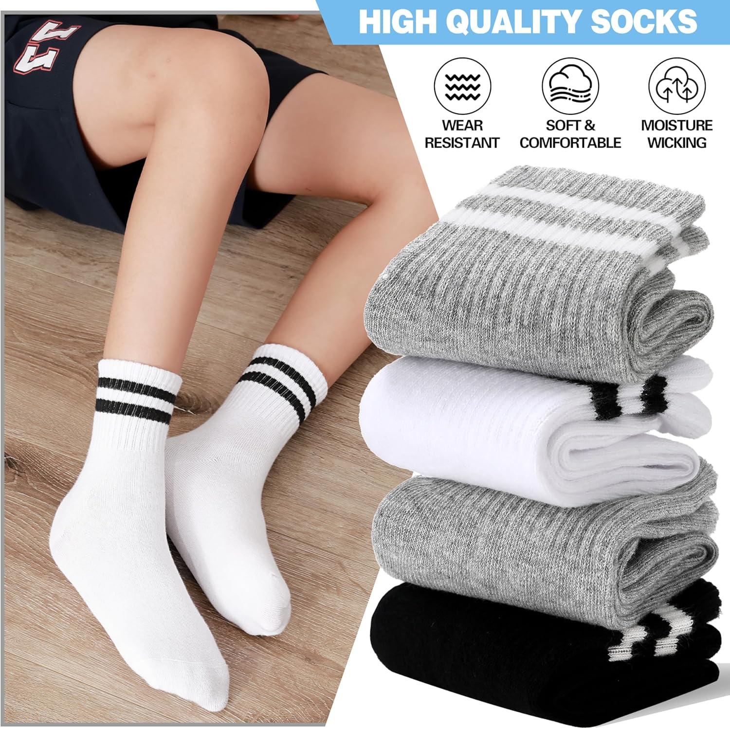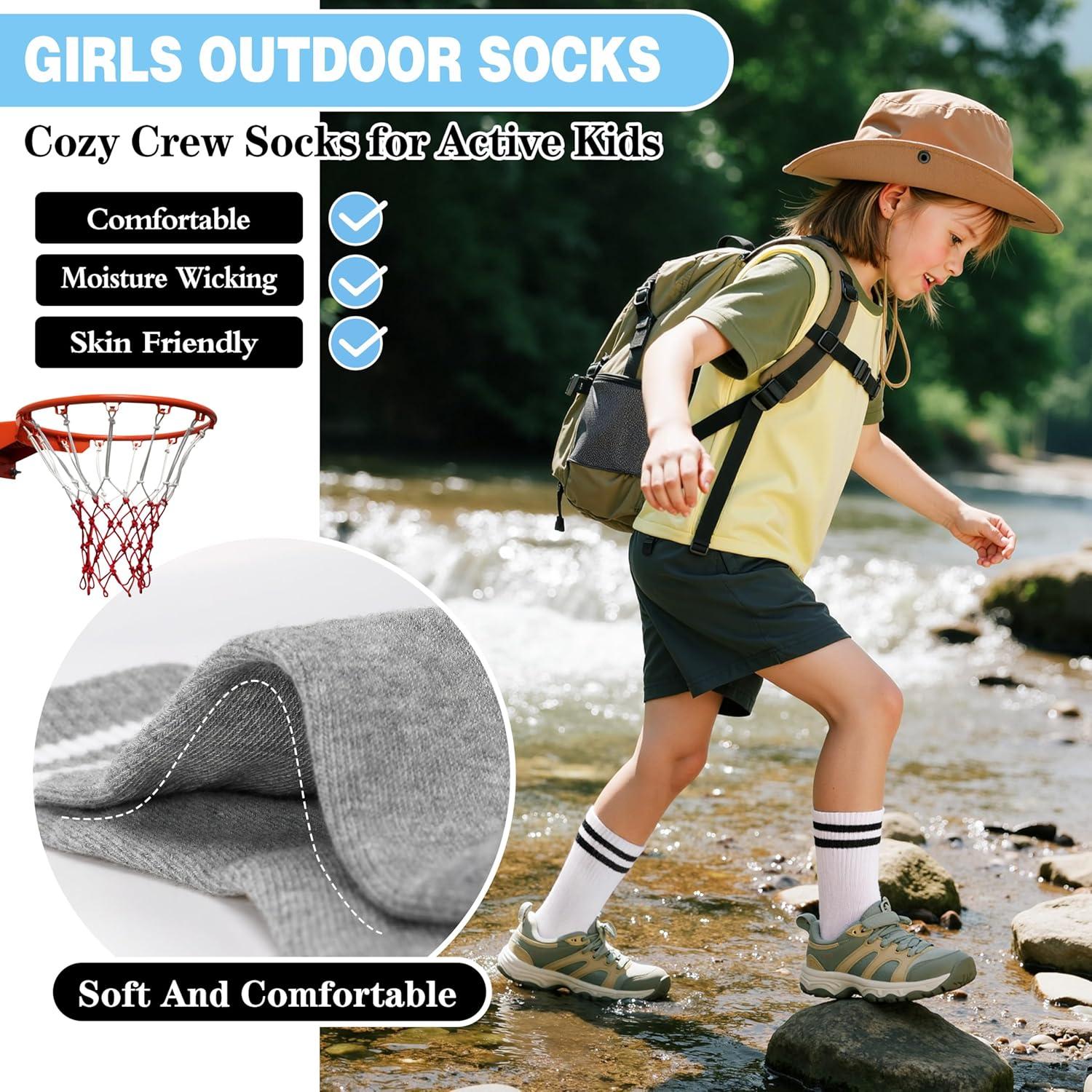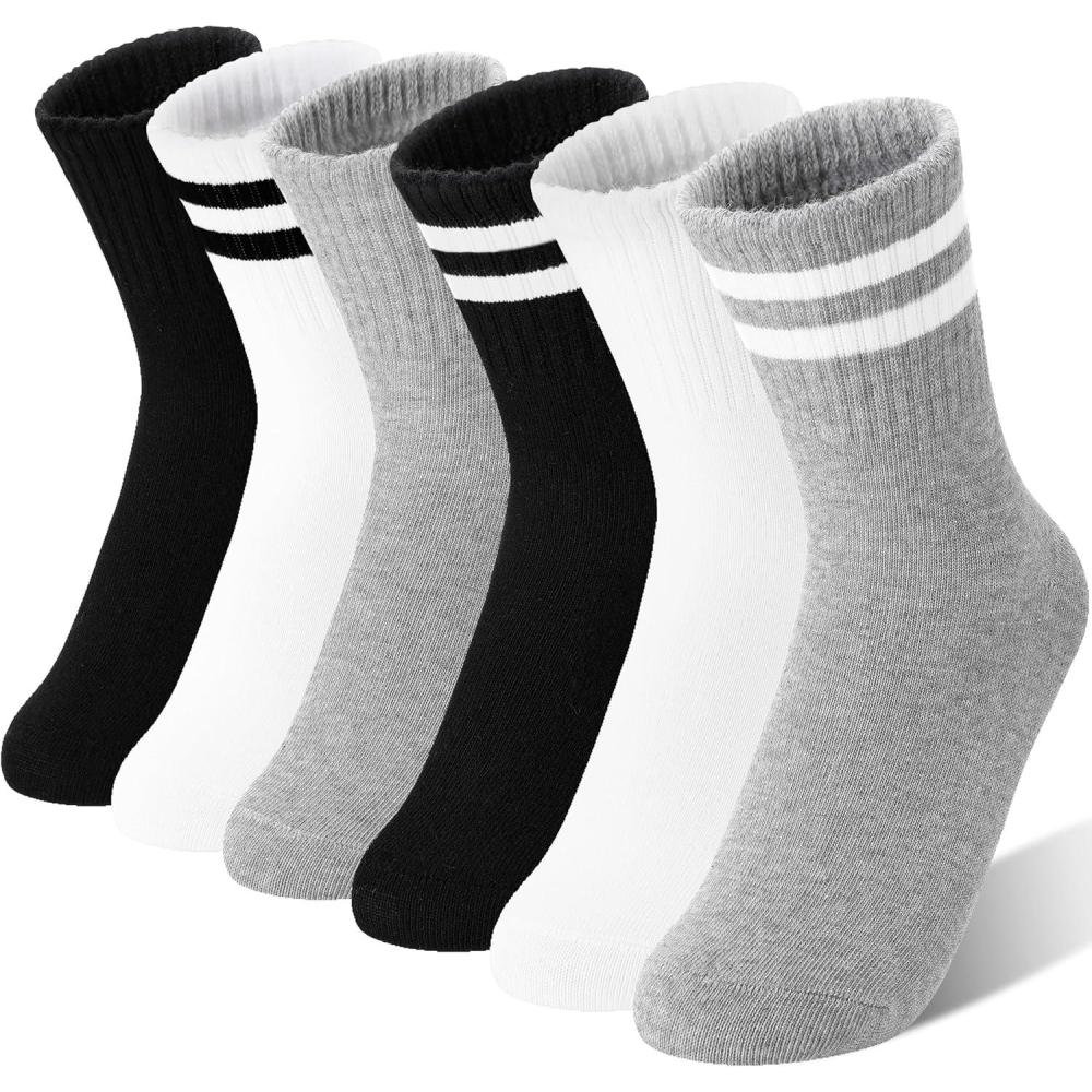 MOGGEI 6 Pairs Girls Kids Socks Athletic Sport Basketball Cotton Soft Crew Breathable Socks for Outdoor(White Black)