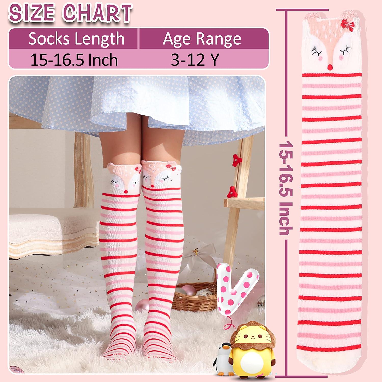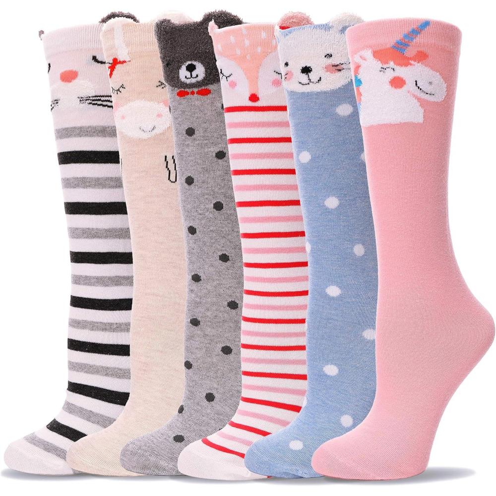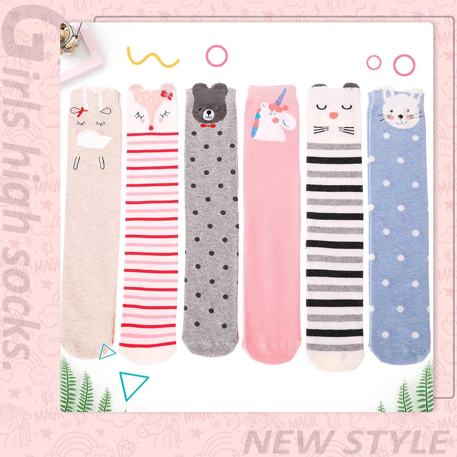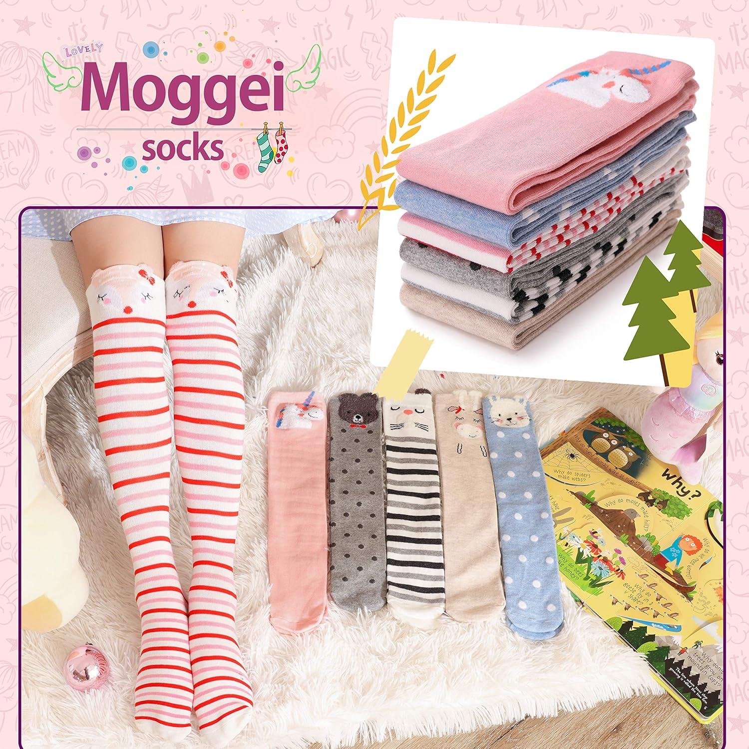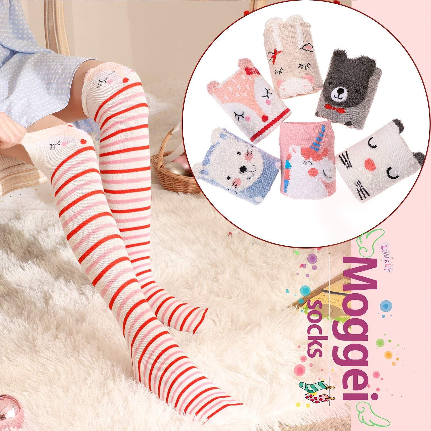 MOGGEI 6 Pairs Kids Girls Knee High Socks Gift Long Crazy Silly Tall Funny Boot Cute Animal Child Fun Socks(Animal C)