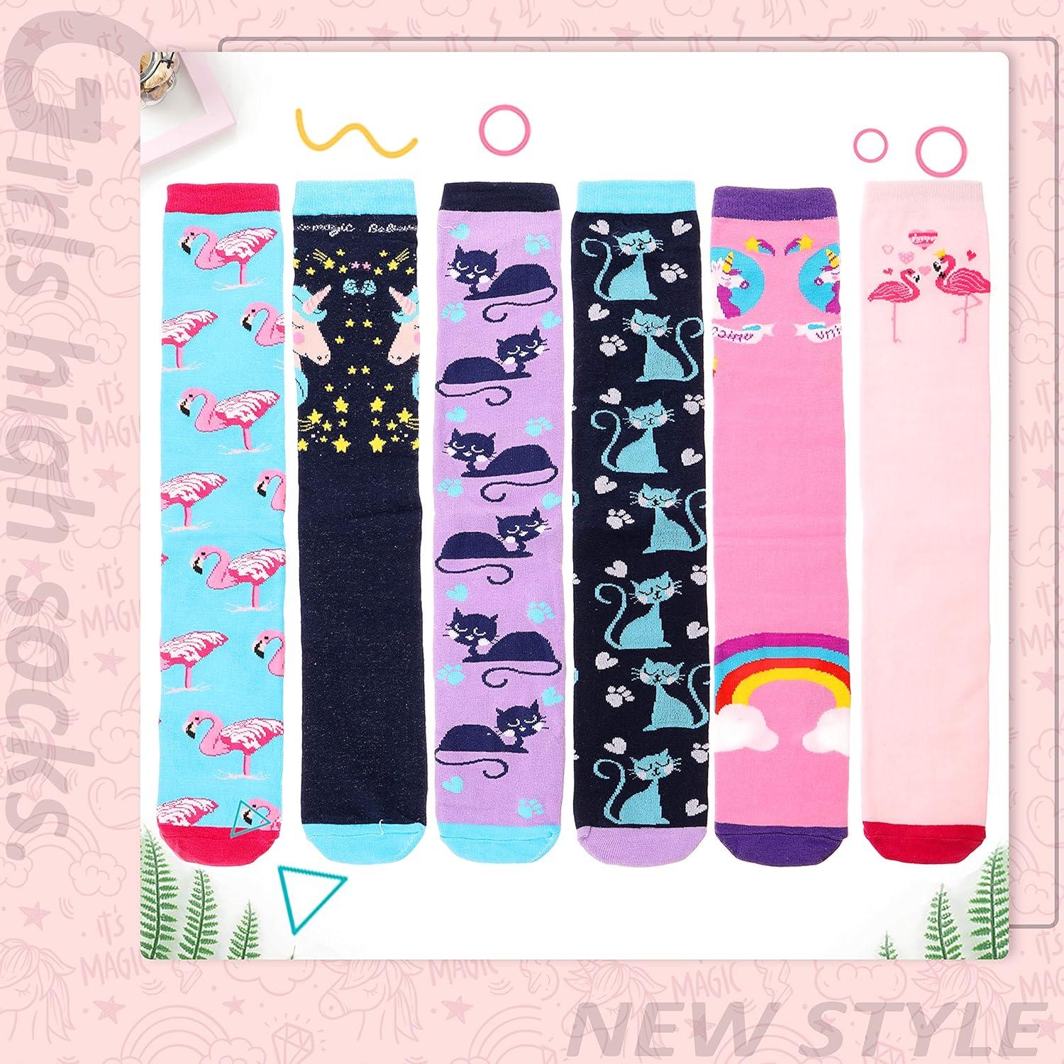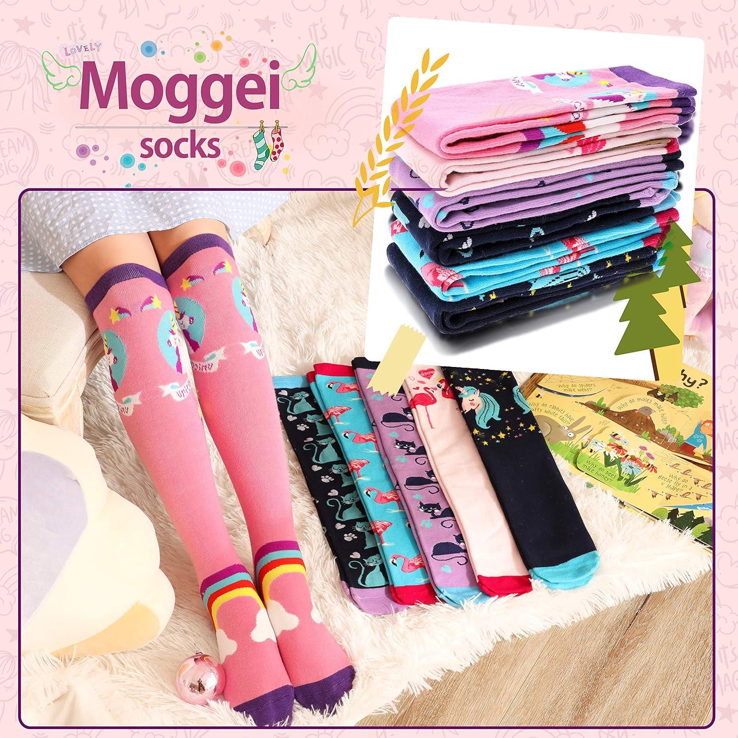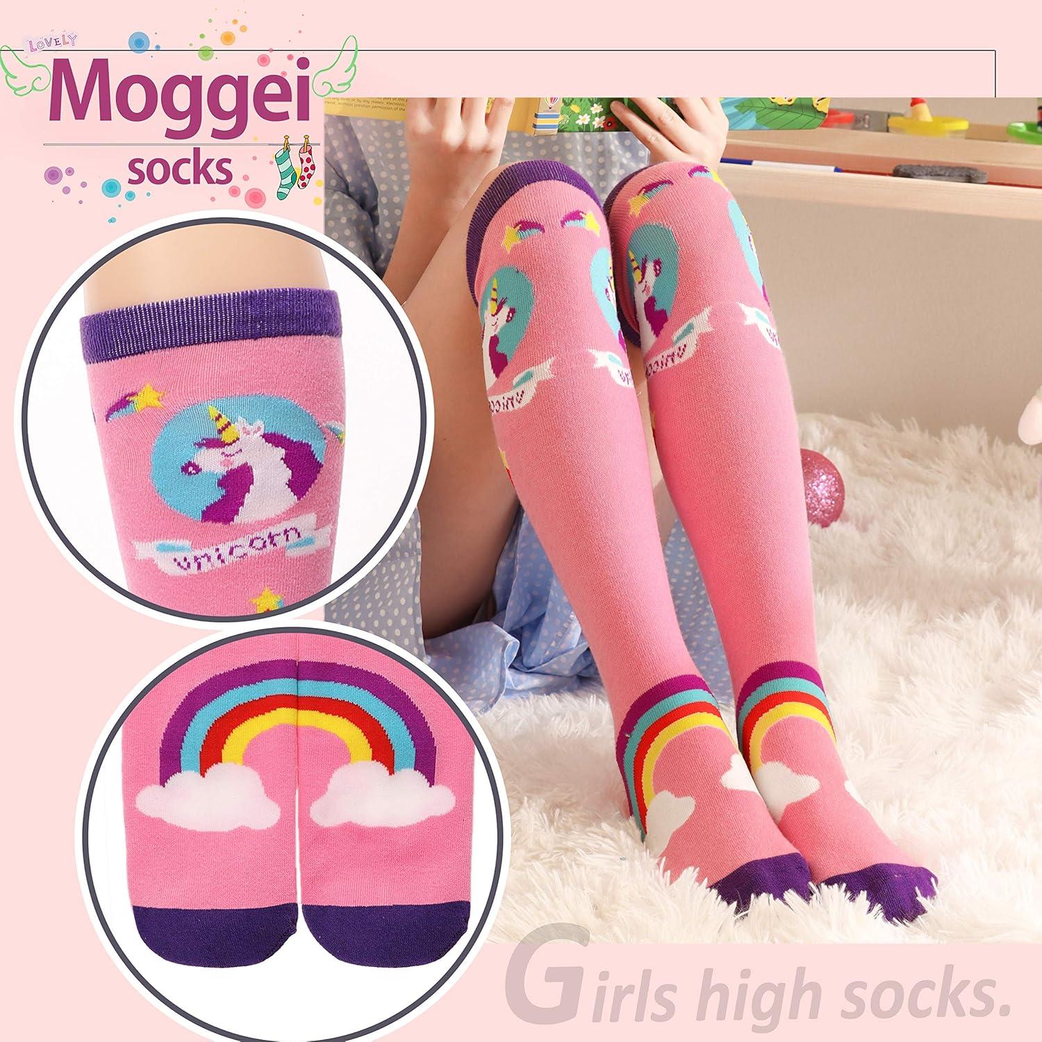 MOGGEI 6 Pairs Kids Girls Knee High Socks Gift Long Crazy Silly Tall Funny Boot Cute Animal Child Fun Socks(Animal F)