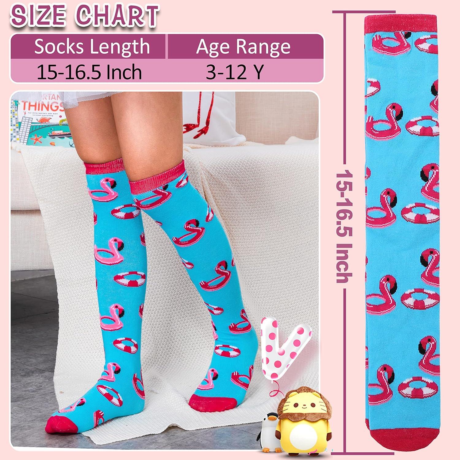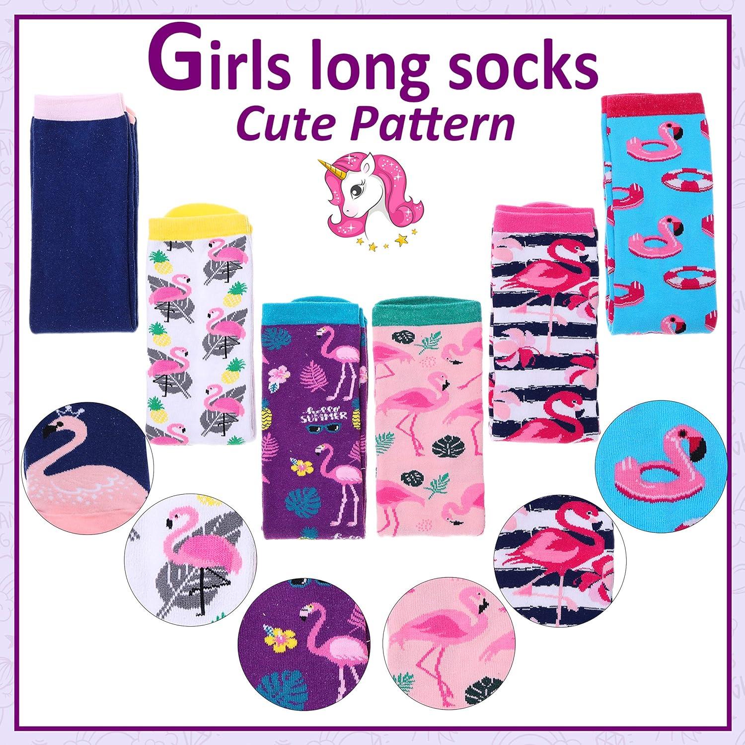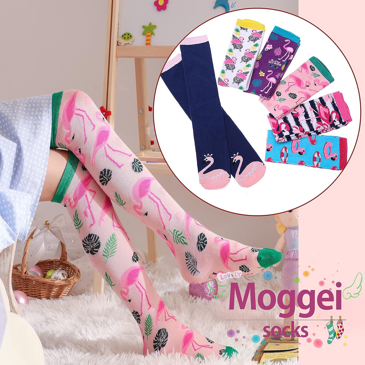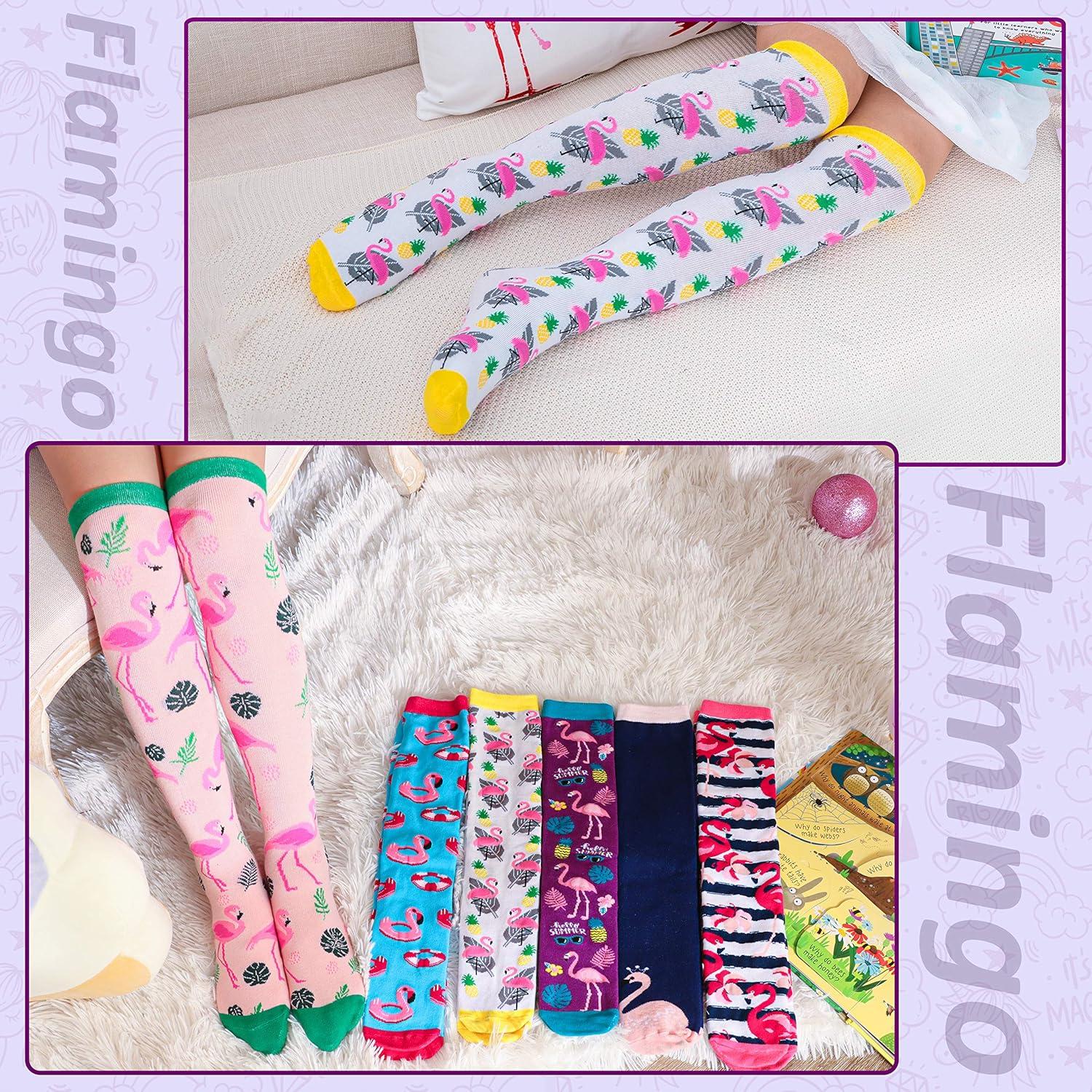 MOGGEI 6 Pairs Kids Girls Knee High Socks Gift Long Crazy Silly Tall Funny Boot Cute Animal Child Fun Socks(Flamingo)