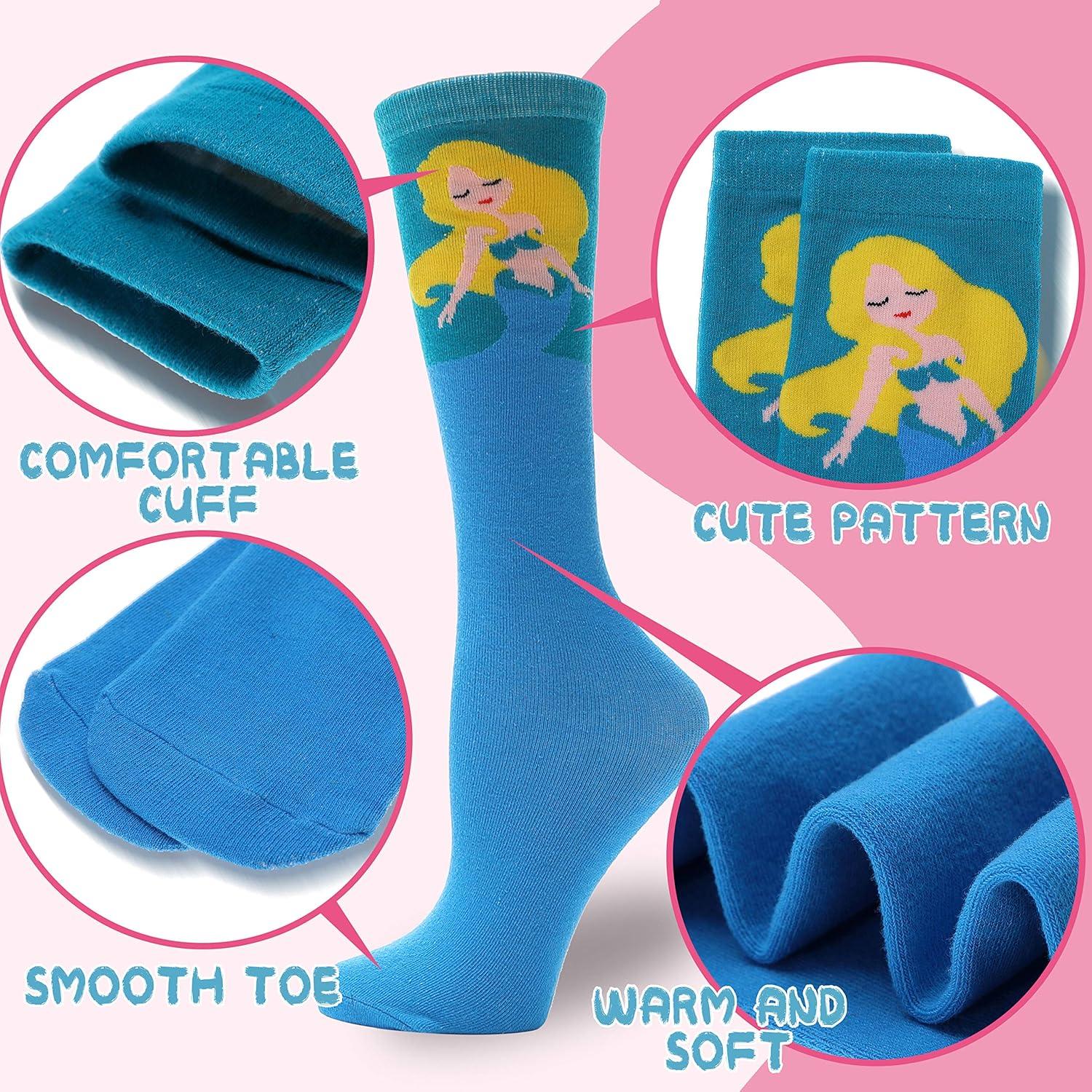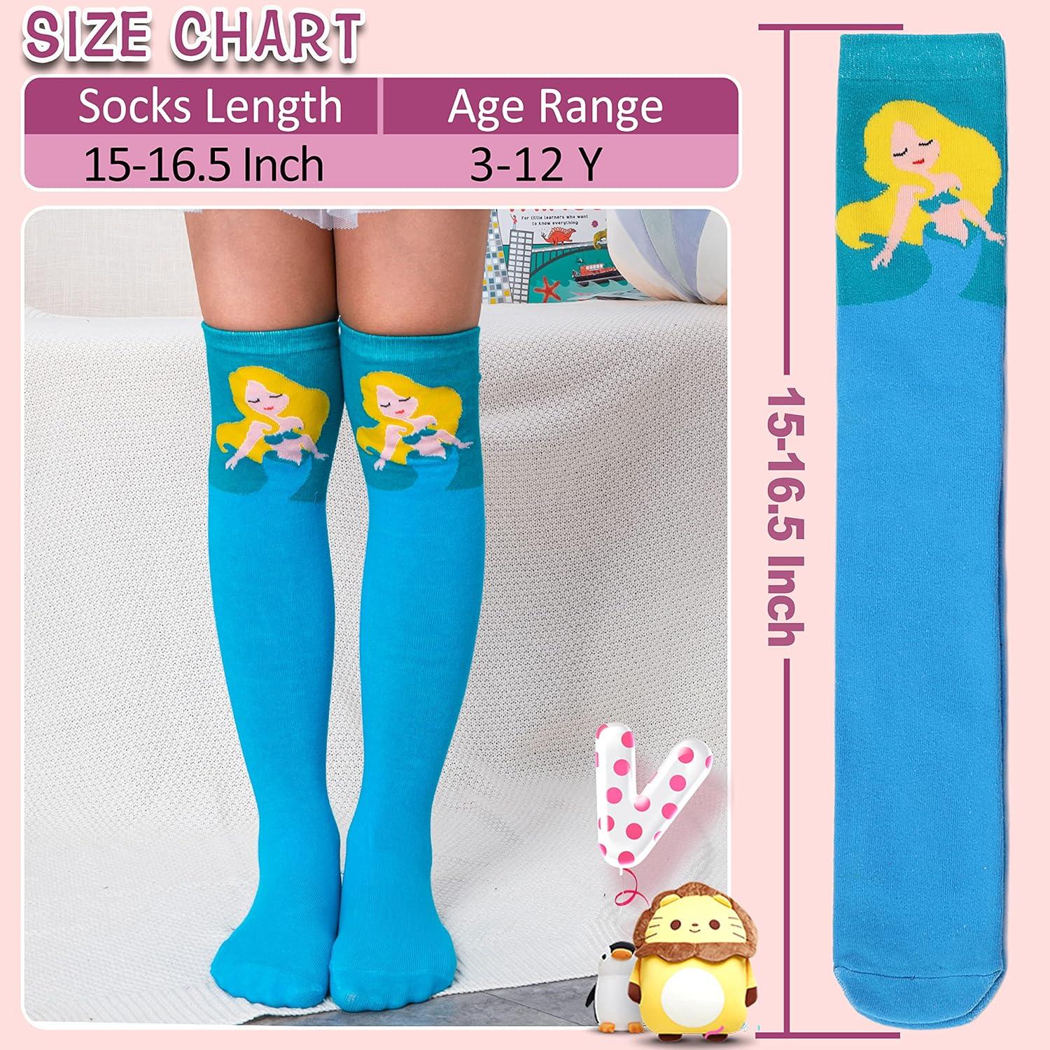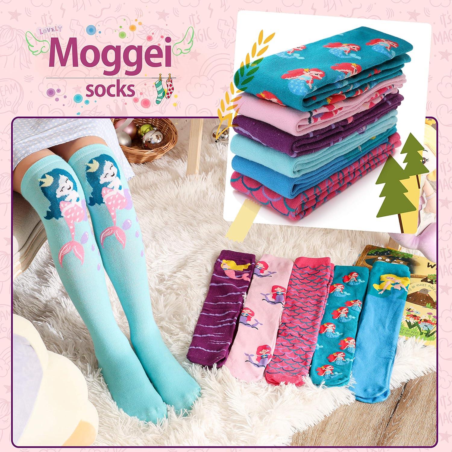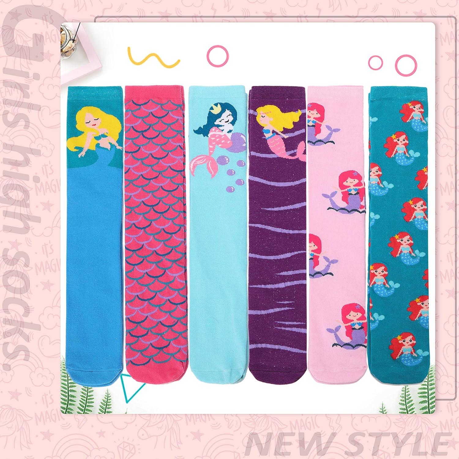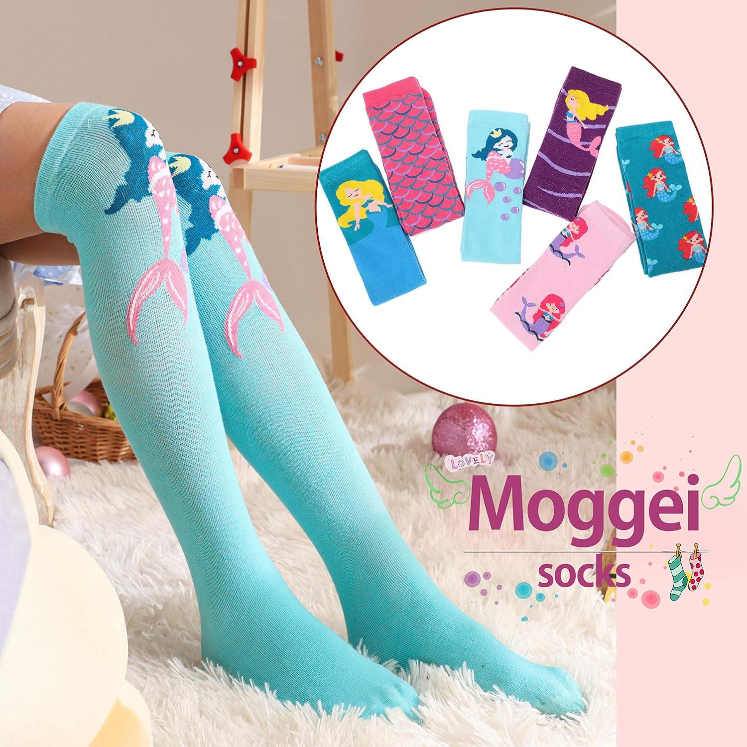 MOGGEI 6 Pairs Kids Girls Knee High Socks Gift Long Crazy Silly Tall Funny Boot Cute Animal Child Fun Socks(Mermaid)