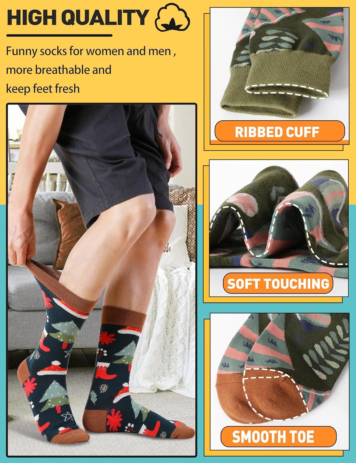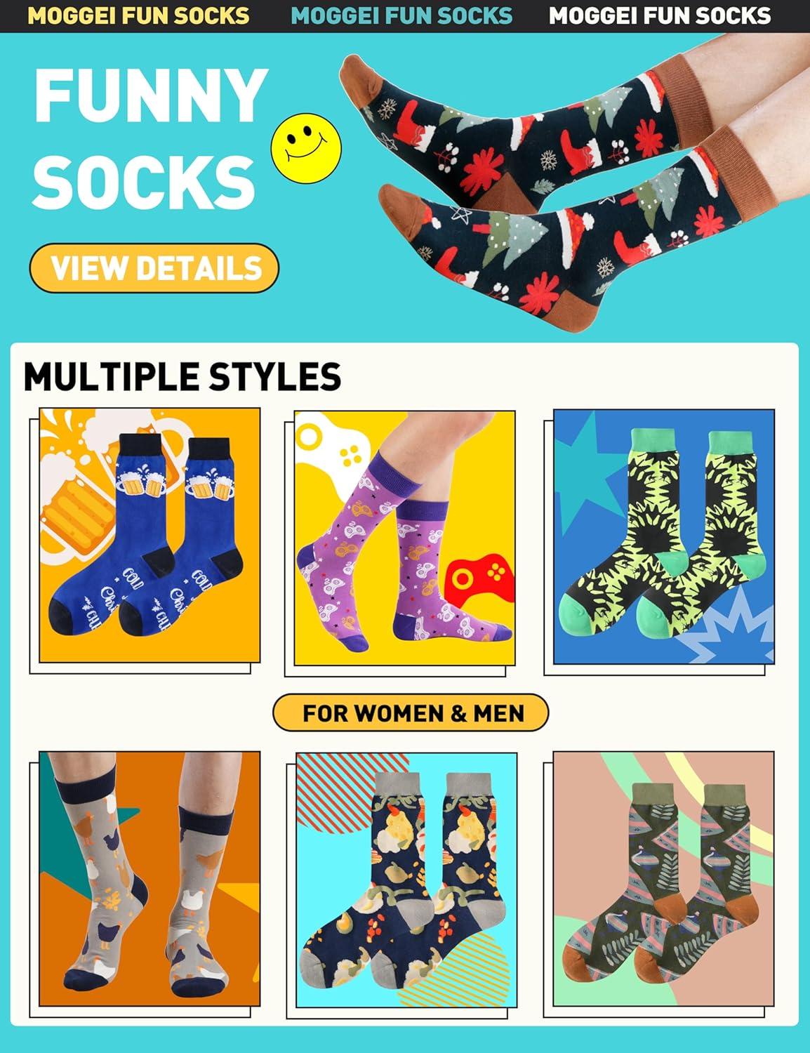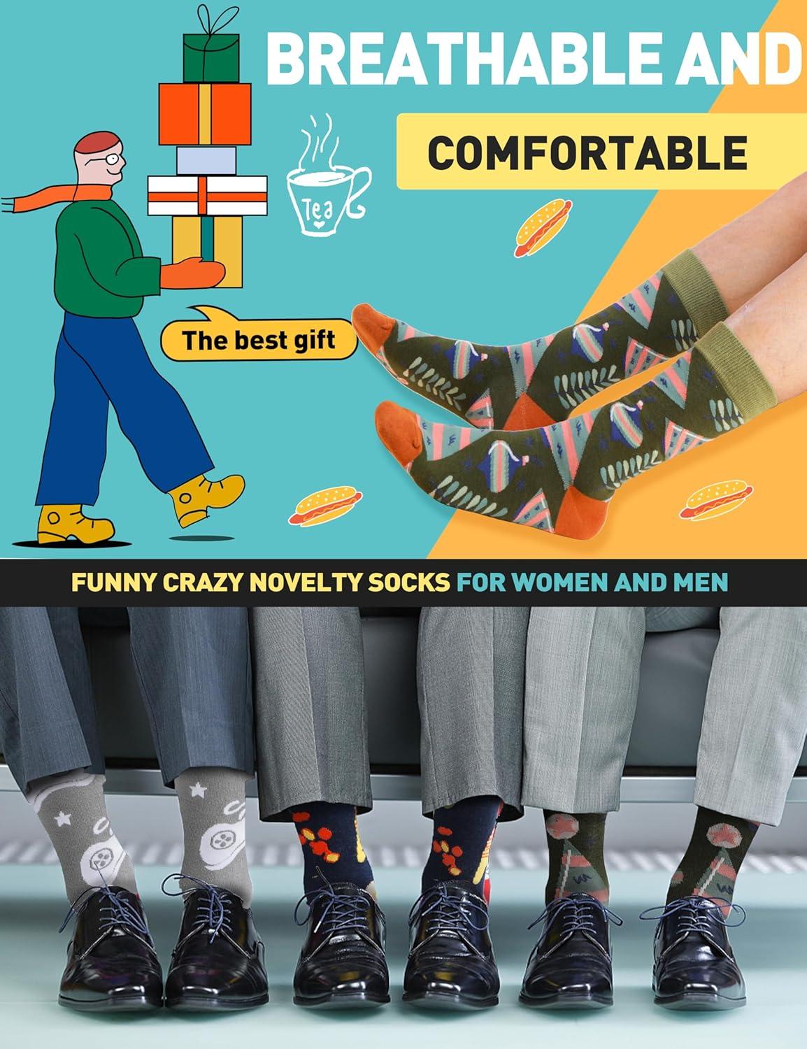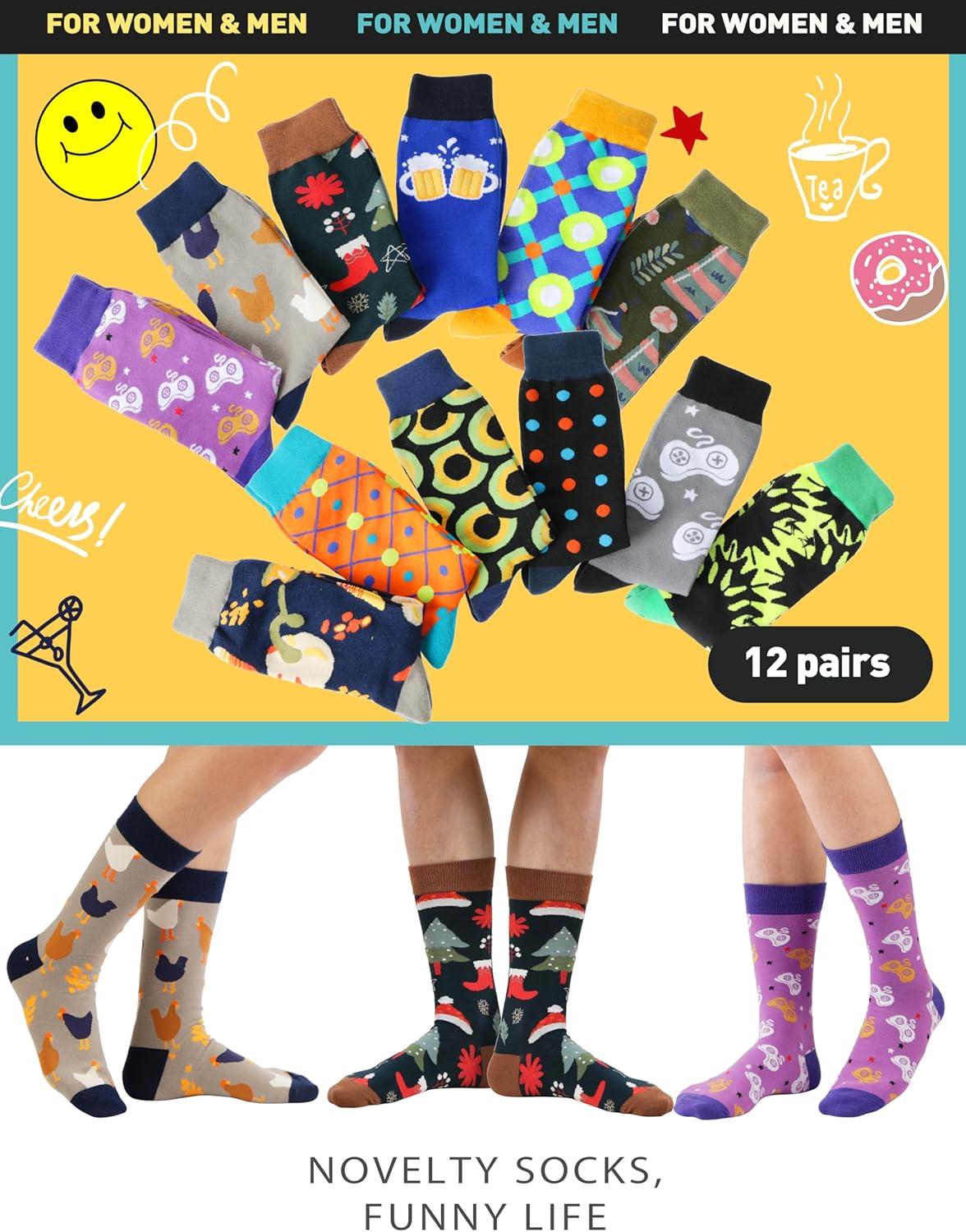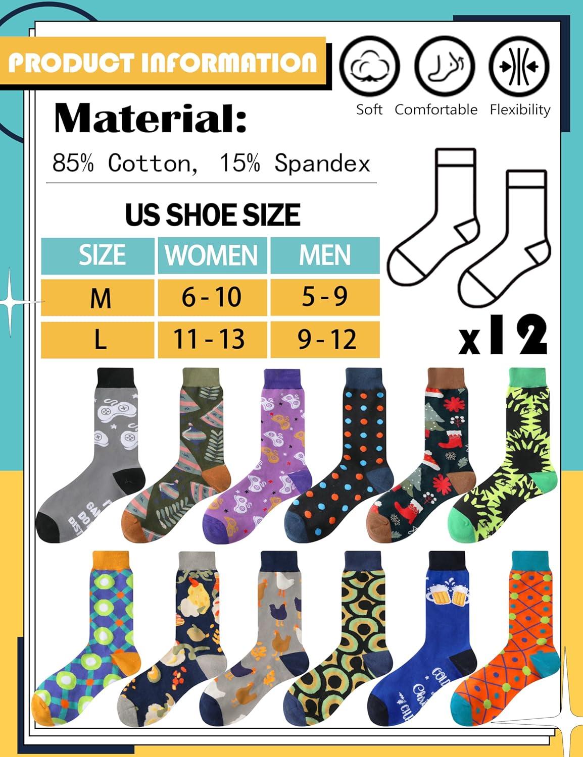 MOGGEI Funny Socks for Men Women Fun Cozy Crazy Novelty Fashion Breathable Printed Cotton Boot Socks(Cartoon (12 Pairs))