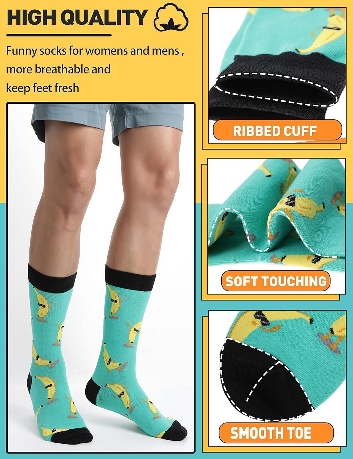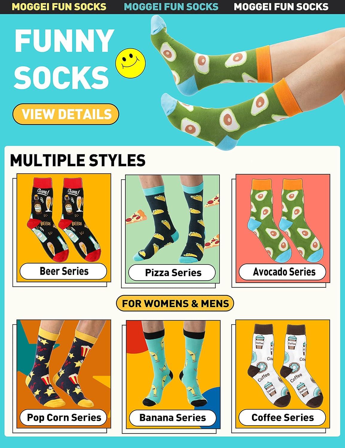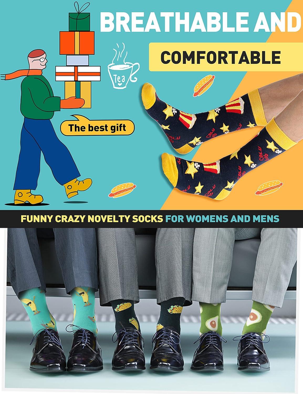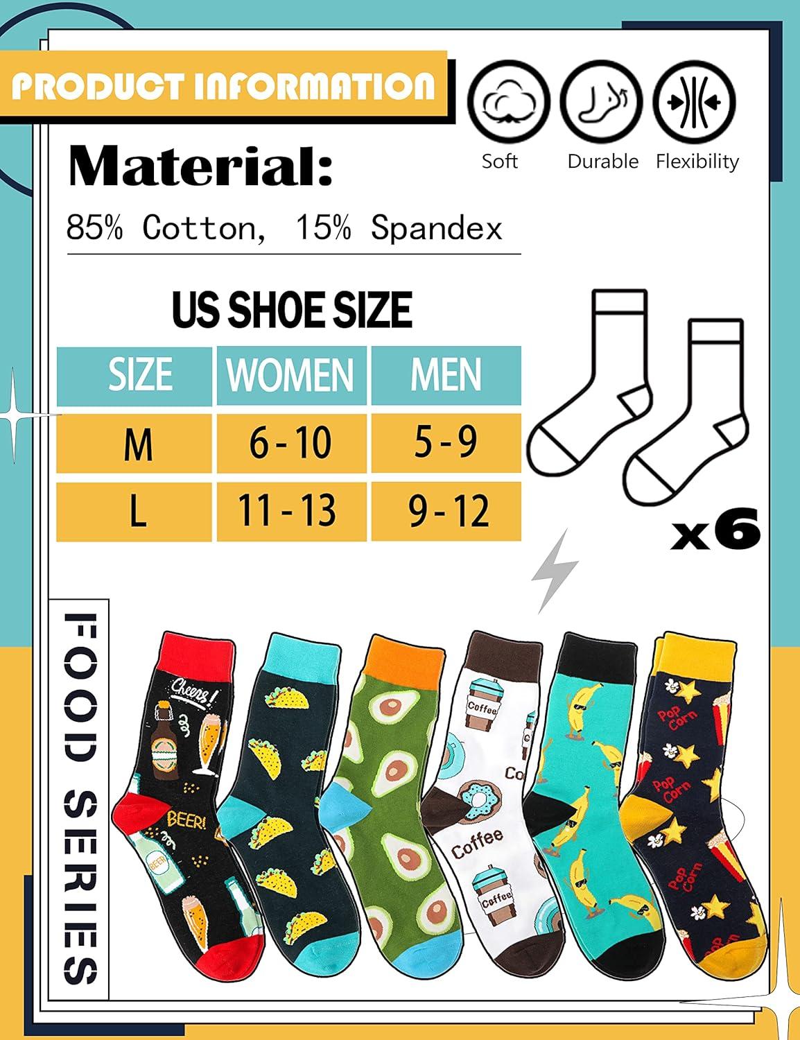 MOGGEI Funny Socks for Men Women Fun Cozy Crazy Novelty Fashion Cotton Boot Breathable Printed 6 Pairs(Fruit – Drink B(6 Pairs))