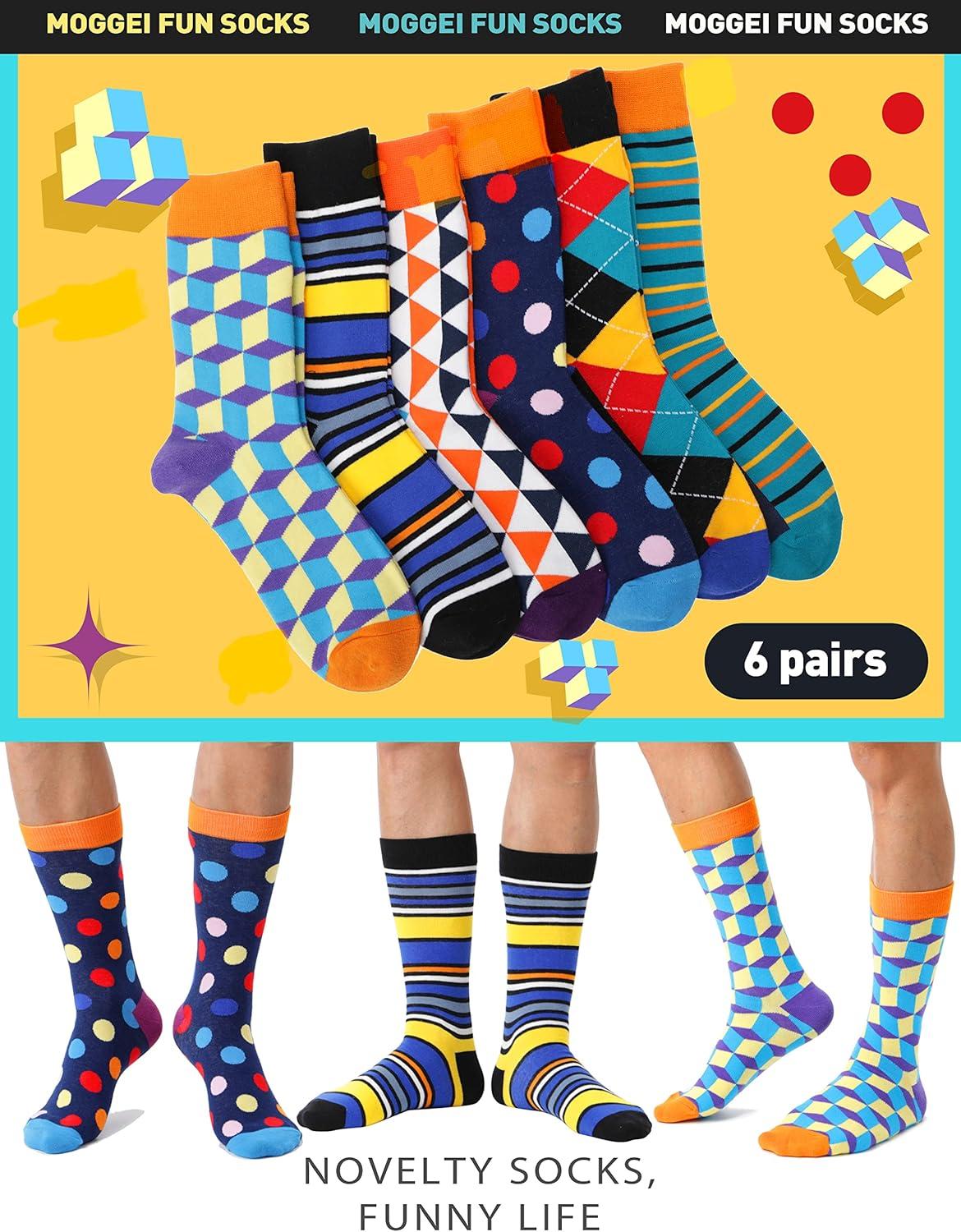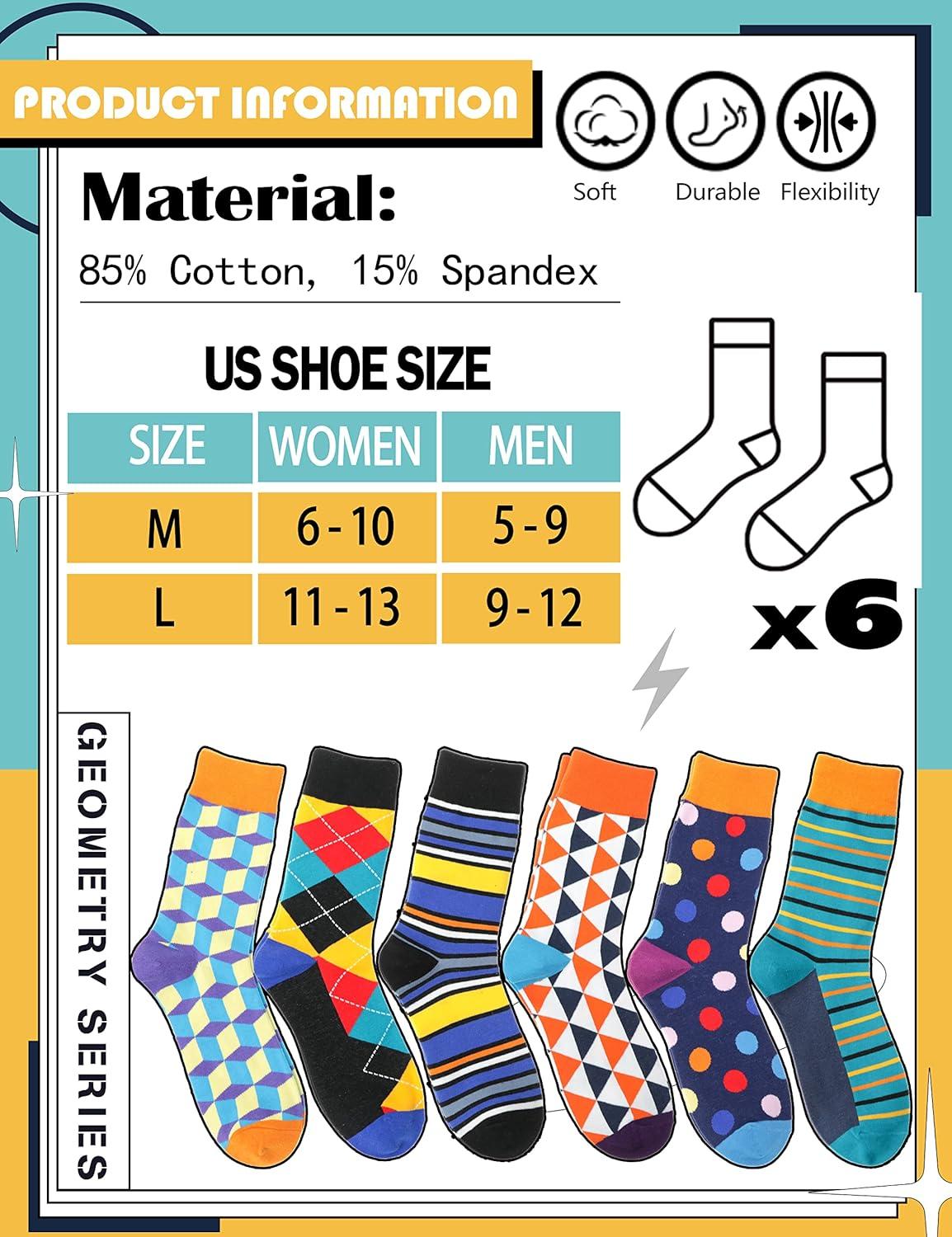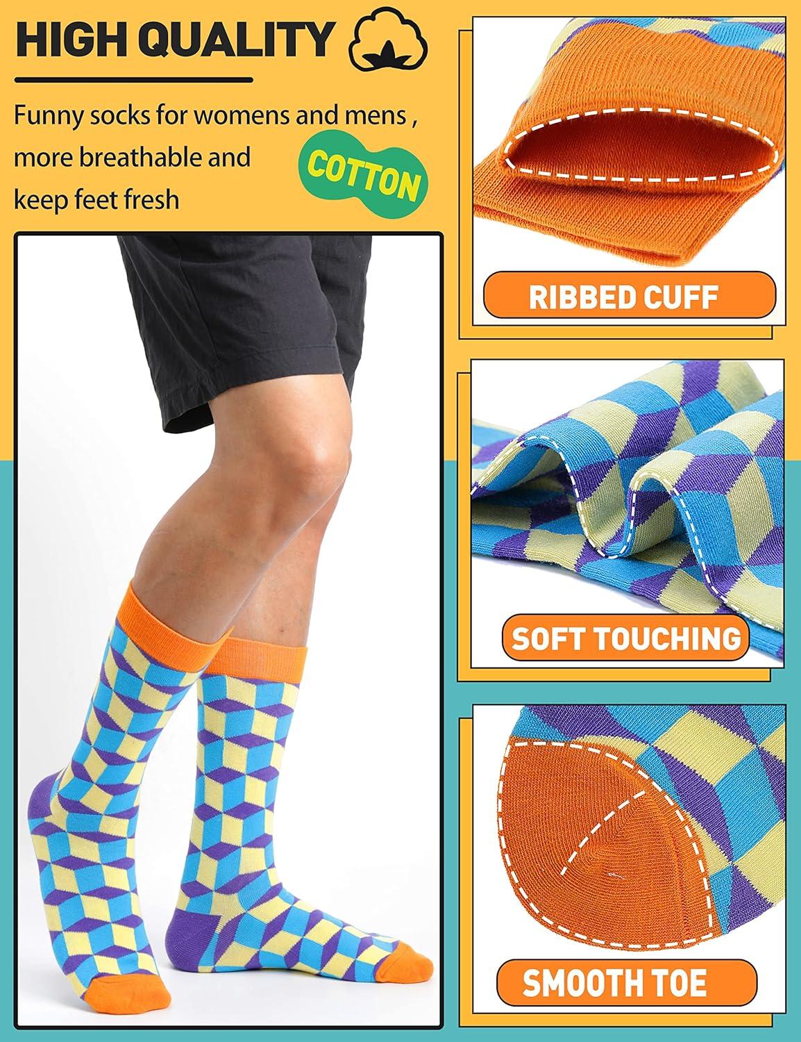 MOGGEI Funny Socks for Men Women Fun Cozy Crazy Novelty Fashion Cotton Boot Breathable Printed 6 Pairs(Striped – Check(6 Pairs))