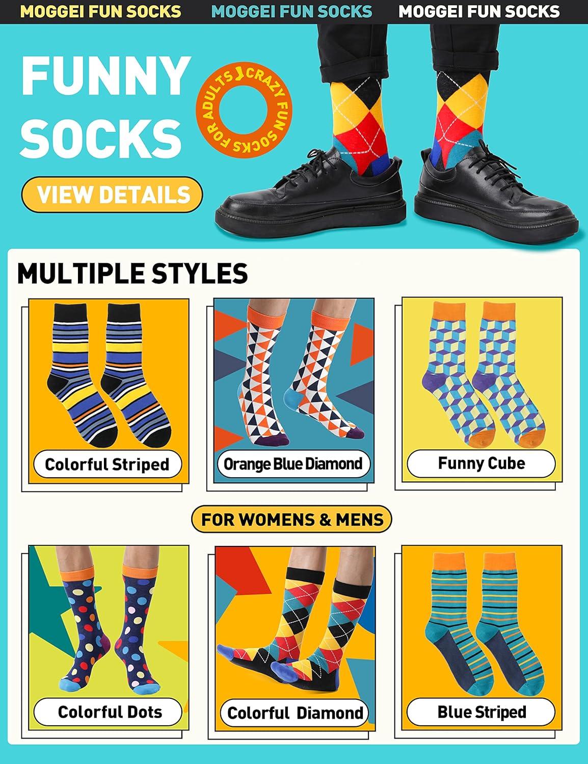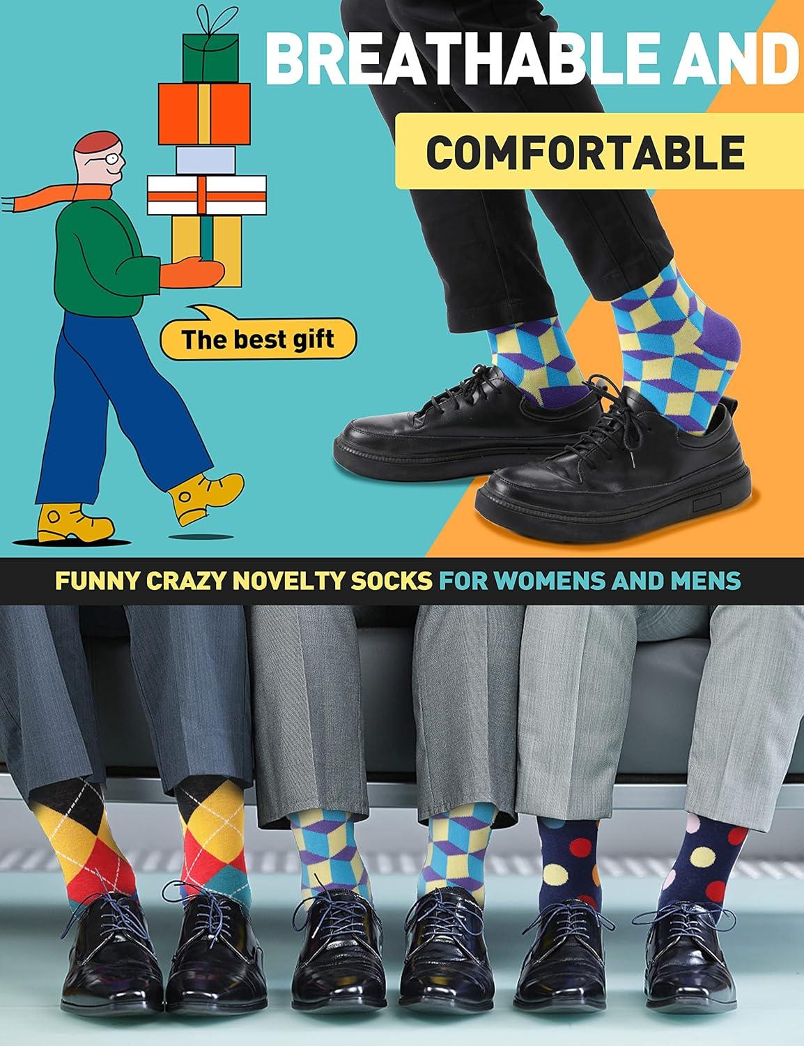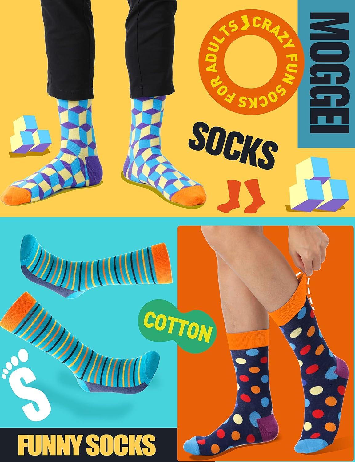 MOGGEI Funny Socks for Men Women Fun Cozy Crazy Novelty Fashion Cotton Boot Breathable Printed 6 Pairs(Striped – Check(6 Pairs))