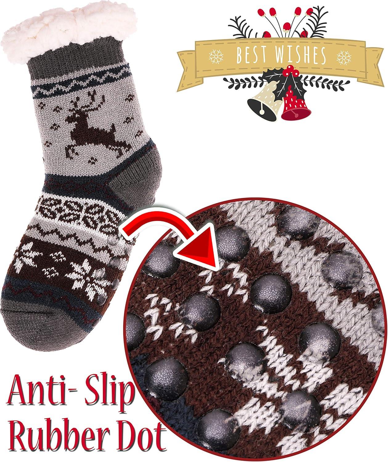 MOGGEI Girls Slipper Fuzzy Socks Kids Boys Fluffy Fleece Lined Warm Plush Sherpa Winter Child Home Socks(Deer-dark Grey a)