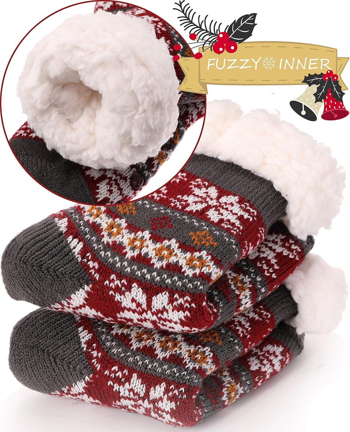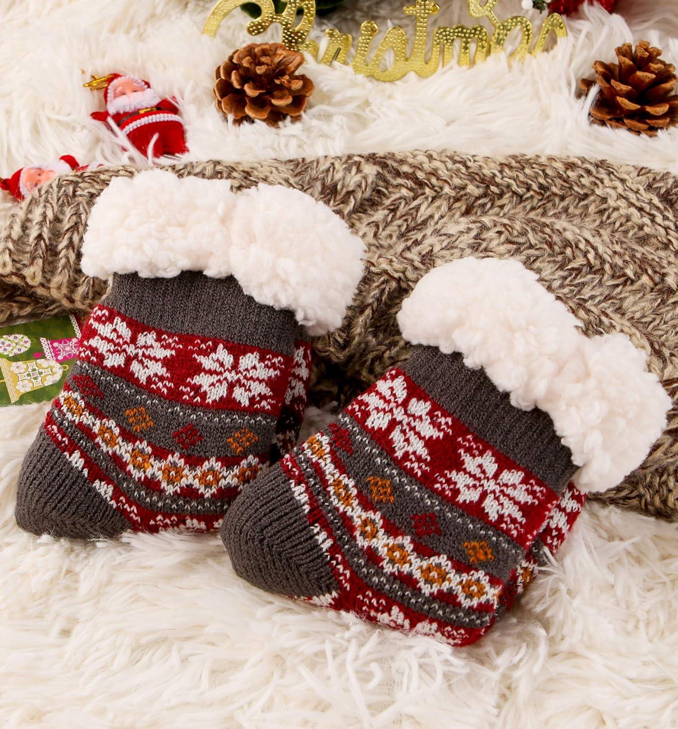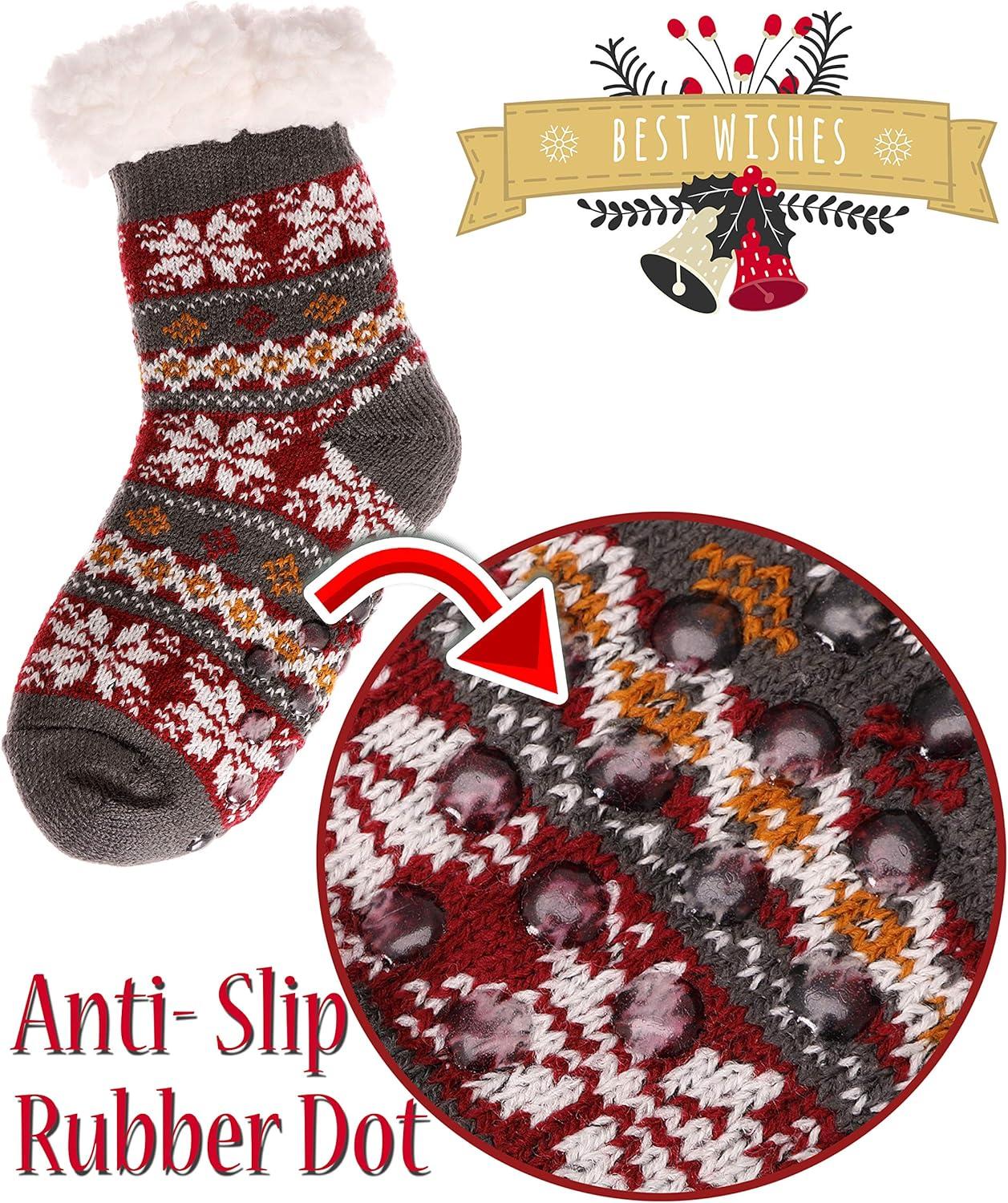 MOGGEI Girls Slipper Fuzzy Socks Kids Boys Fluffy Fleece Lined Warm Plush Sherpa Winter Child Home Socks(Grey & Red a)