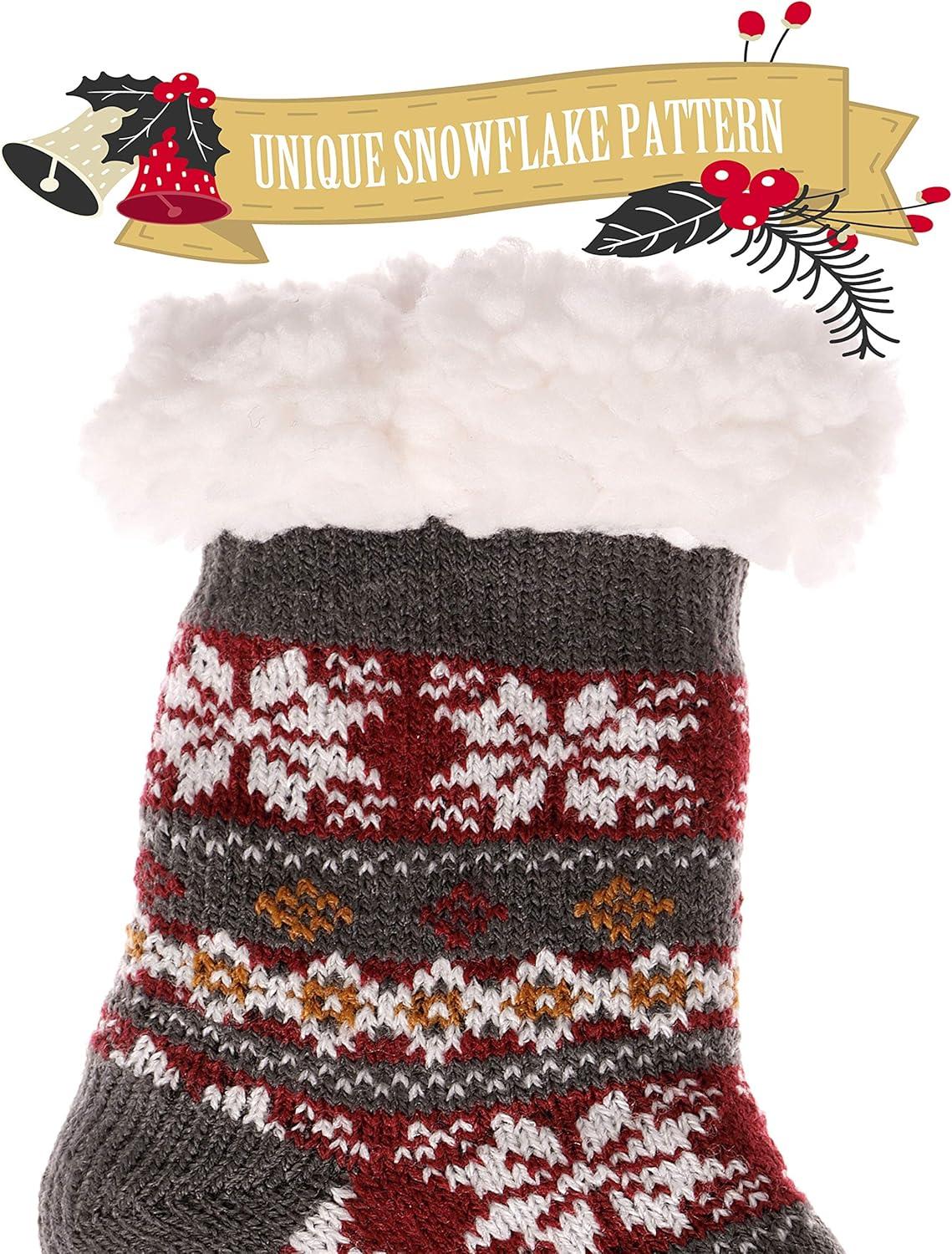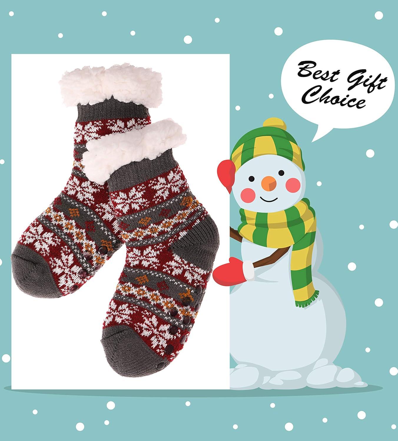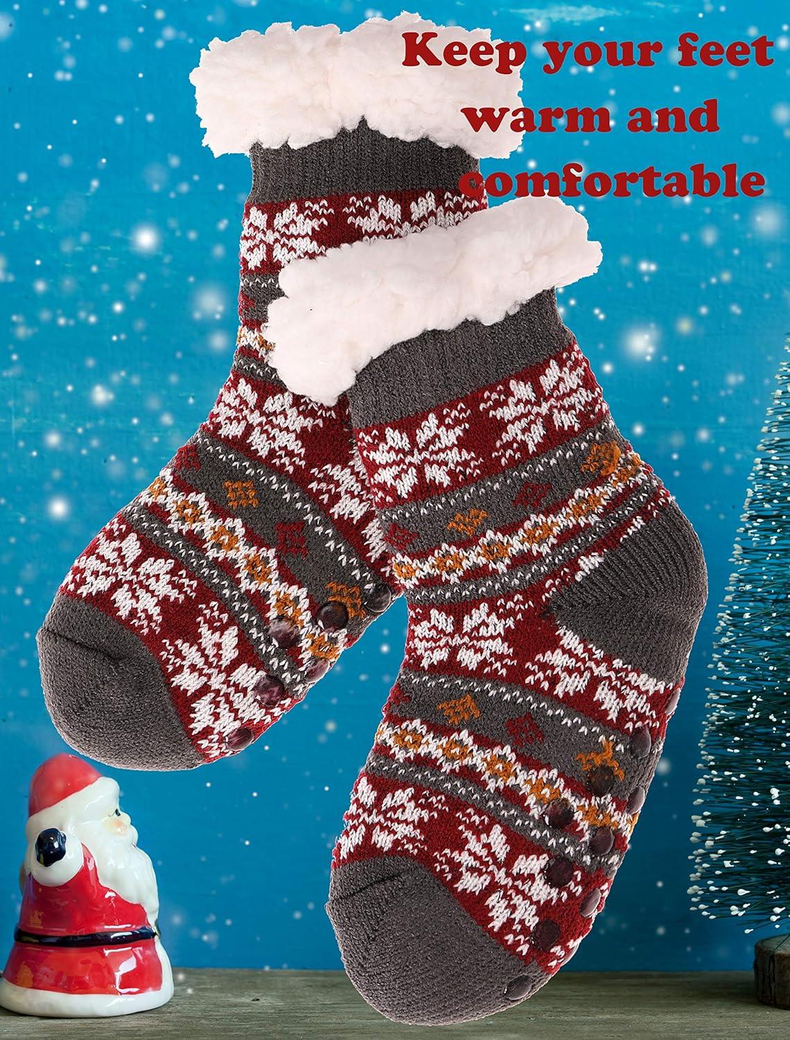MOGGEI Girls Slipper Fuzzy Socks Kids Boys Fluffy Fleece Lined Warm Plush Sherpa Winter Child Home Socks(Grey & Red a)