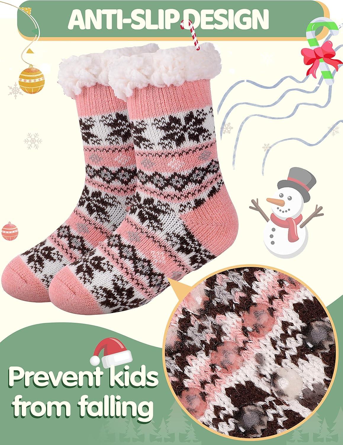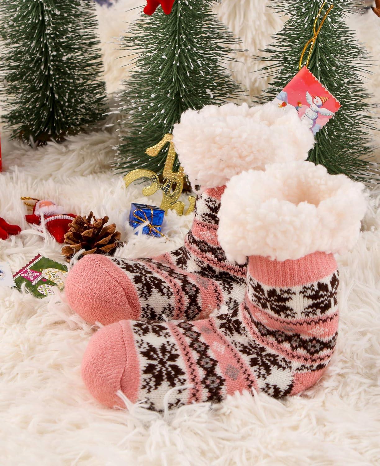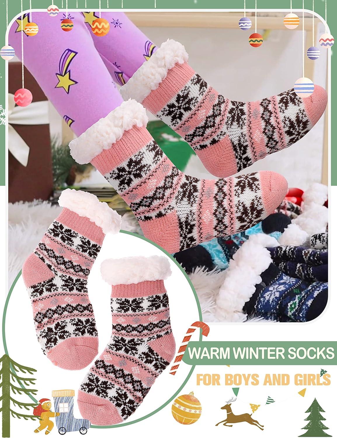 MOGGEI Girls Slipper Fuzzy Socks Kids Boys Fluffy Fleece Lined Warm Plush Sherpa Winter Child Home Socks(Pink)