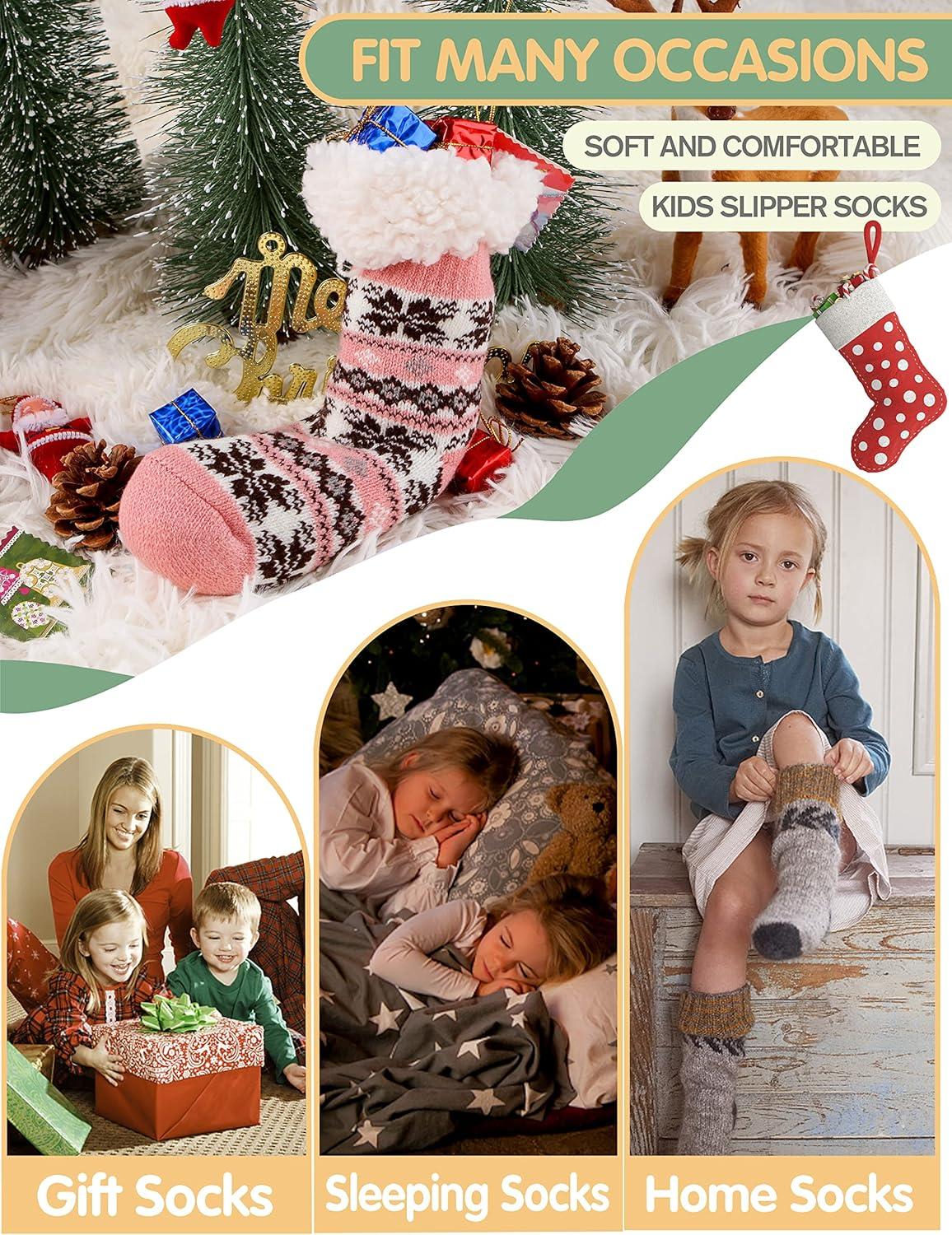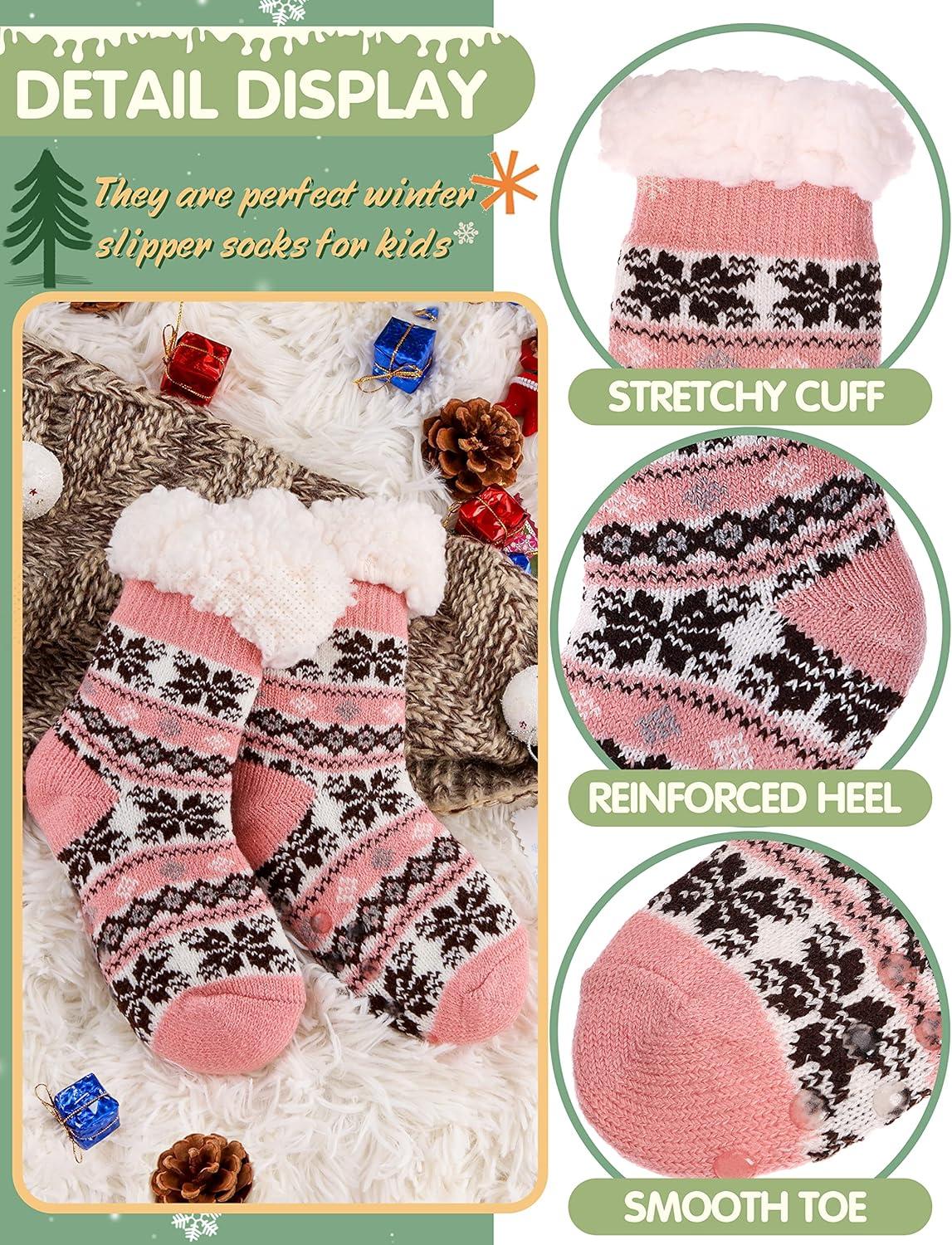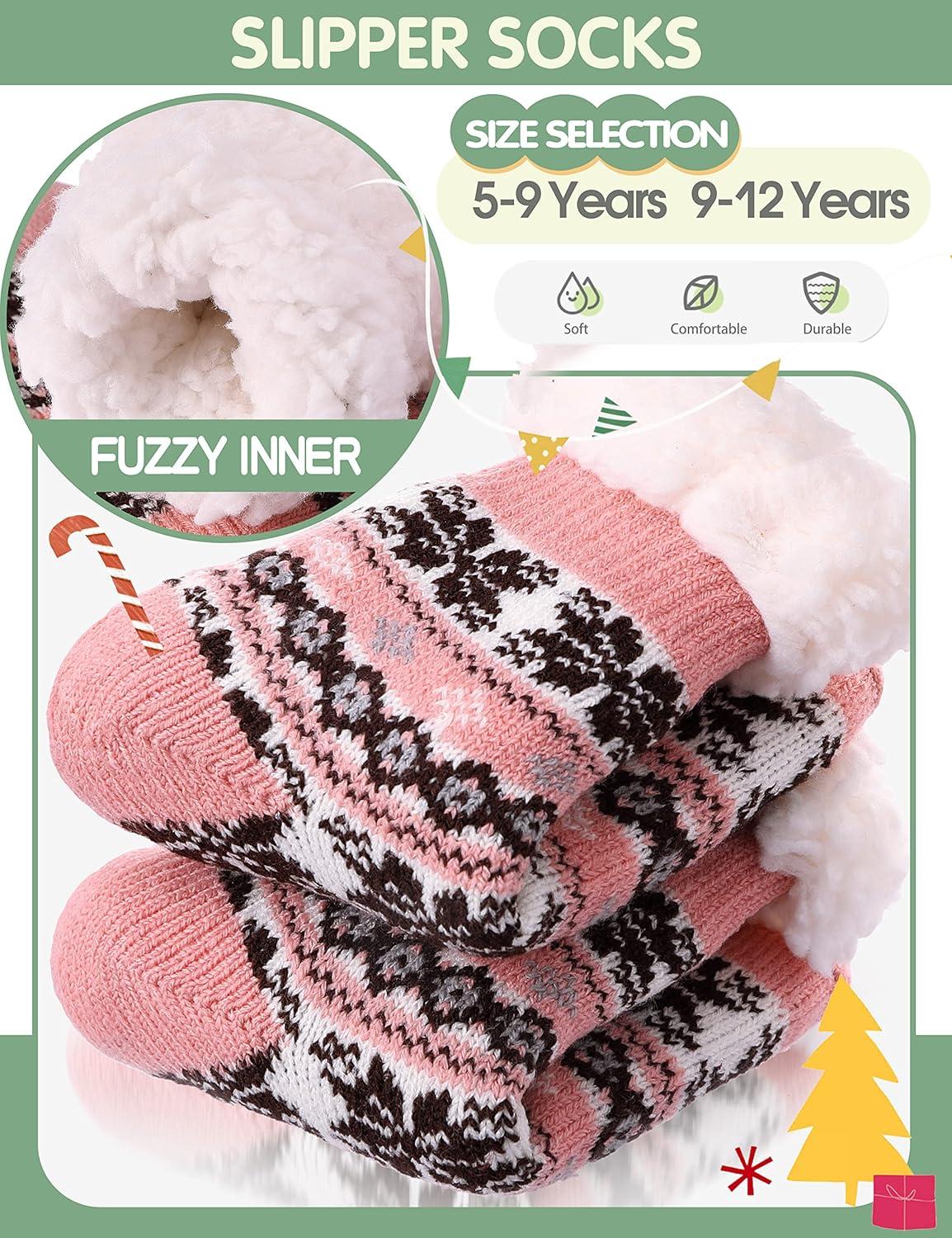 MOGGEI Girls Slipper Fuzzy Socks Kids Boys Fluffy Fleece Lined Warm Plush Sherpa Winter Child Home Socks(Pink)