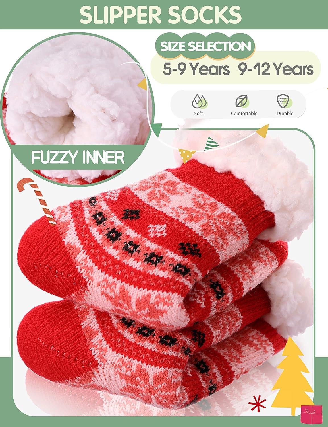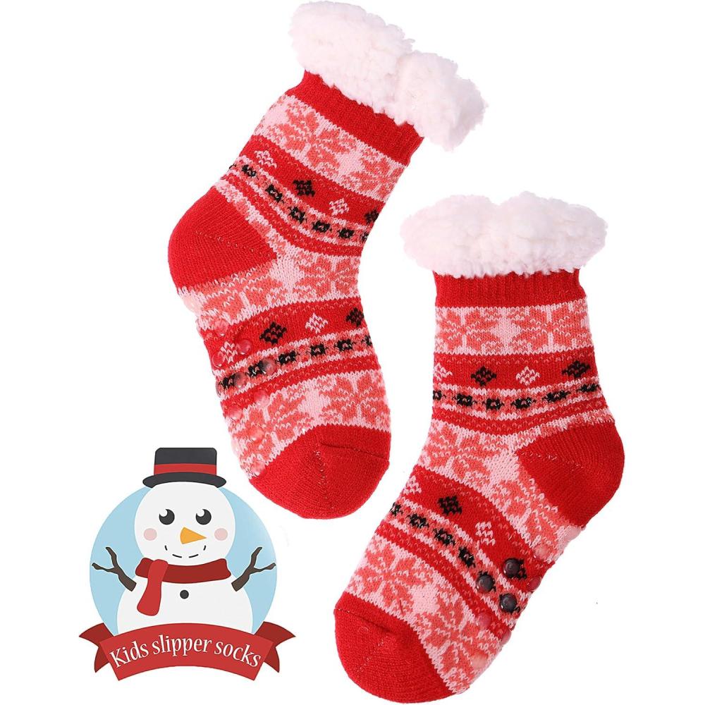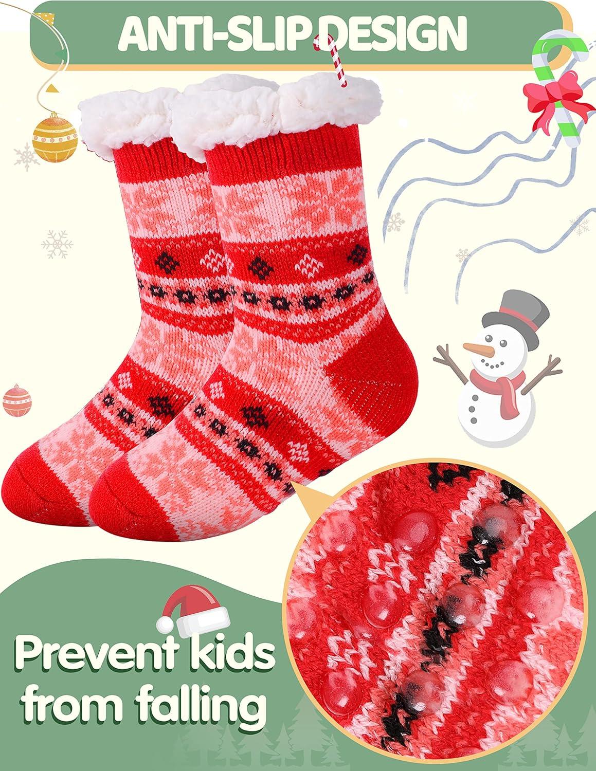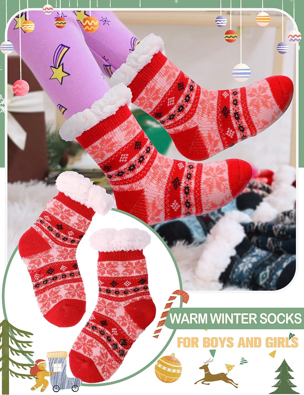 MOGGEI Girls Slipper Fuzzy Socks Kids Boys Fluffy Fleece Lined Warm Plush Sherpa Winter Child Home Socks(Red)