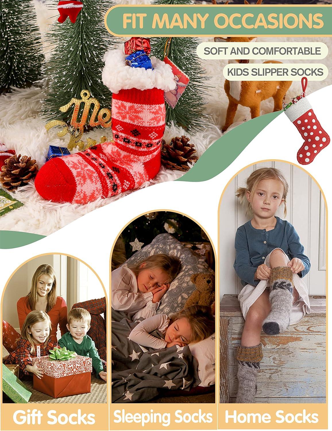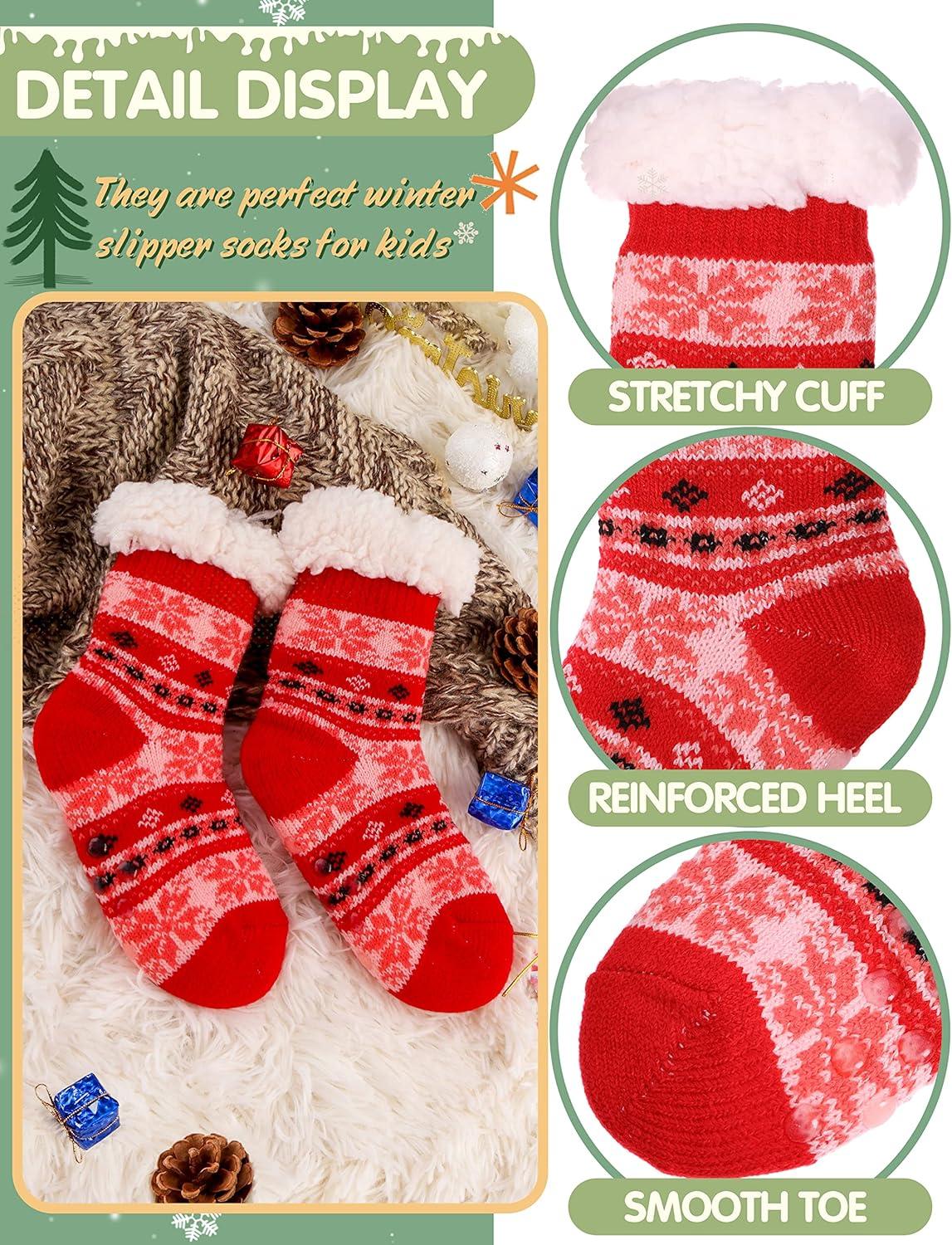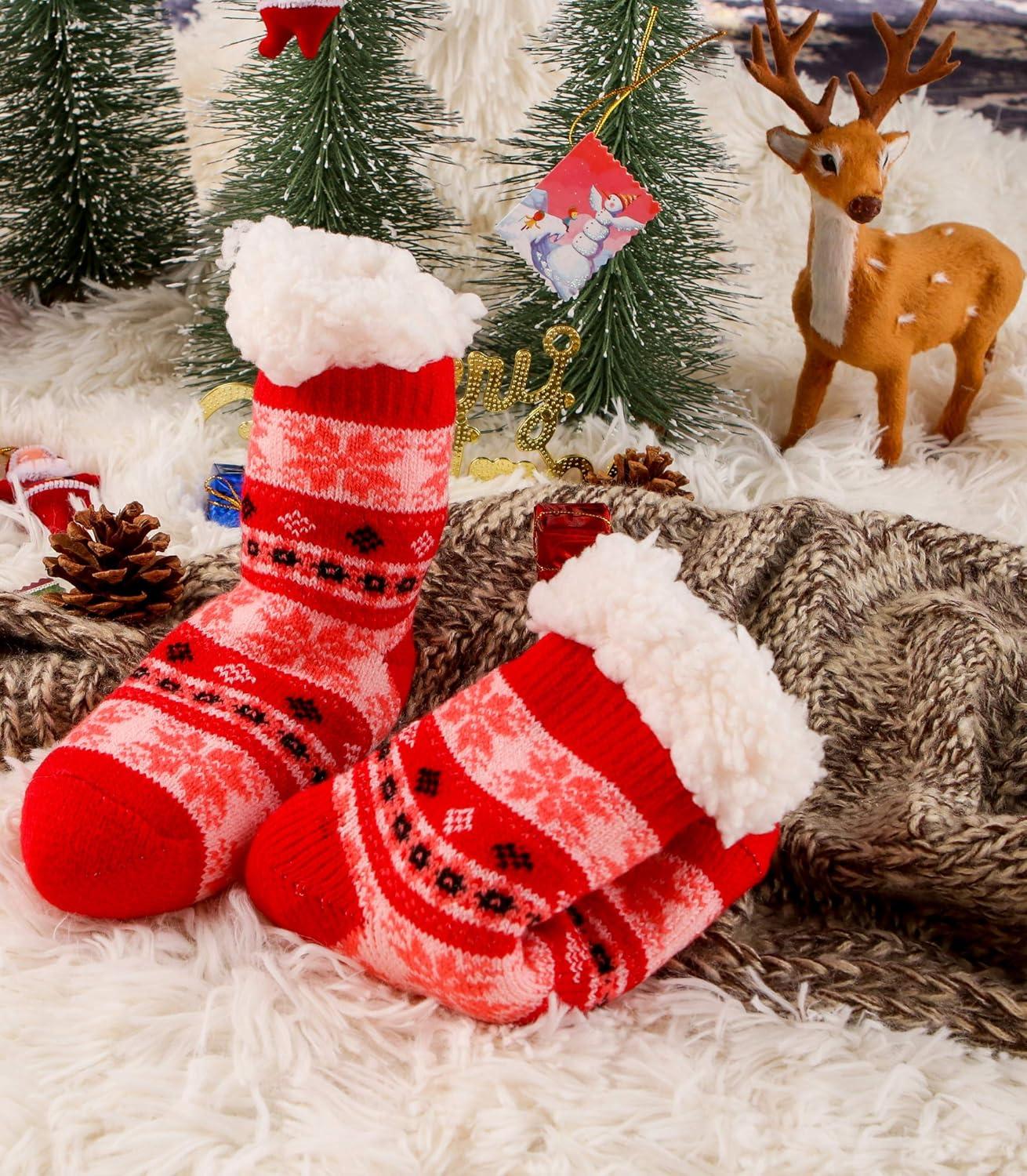 MOGGEI Girls Slipper Fuzzy Socks Kids Boys Fluffy Fleece Lined Warm Plush Sherpa Winter Child Home Socks(Red)