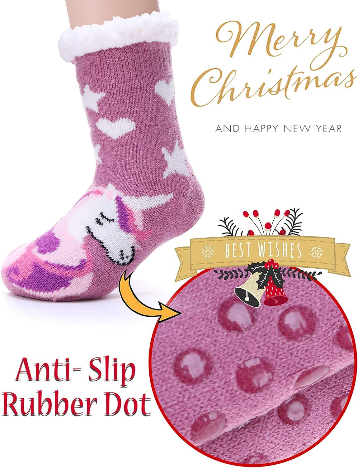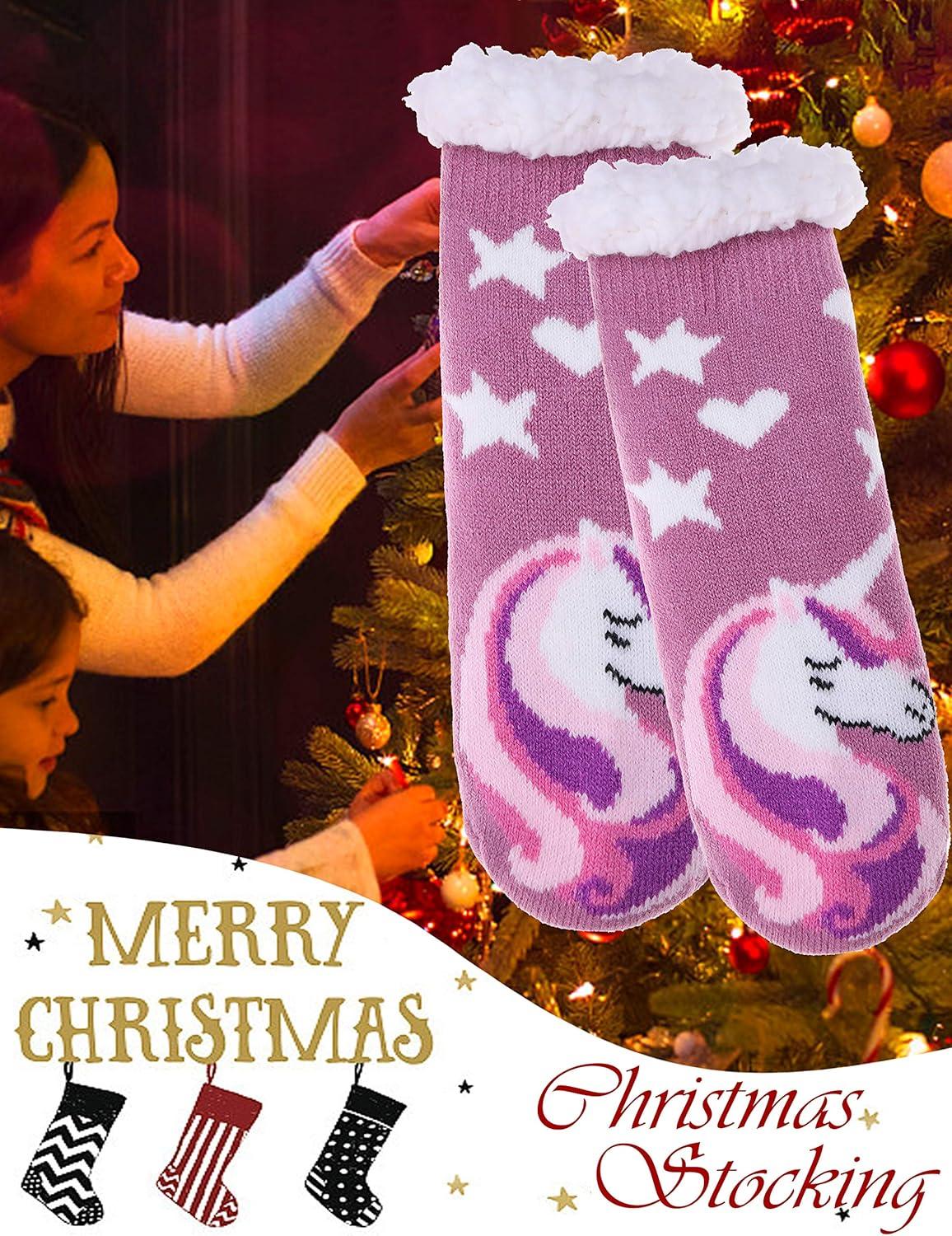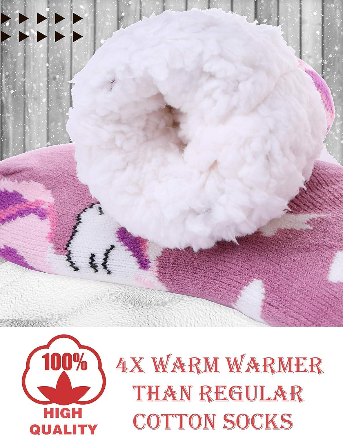 MOGGEI Girls Slipper Fuzzy Socks Kids Boys Fluffy Fleece Lined Warm Plush Sherpa Winter Child Home Socks(Unicorn B-purple)