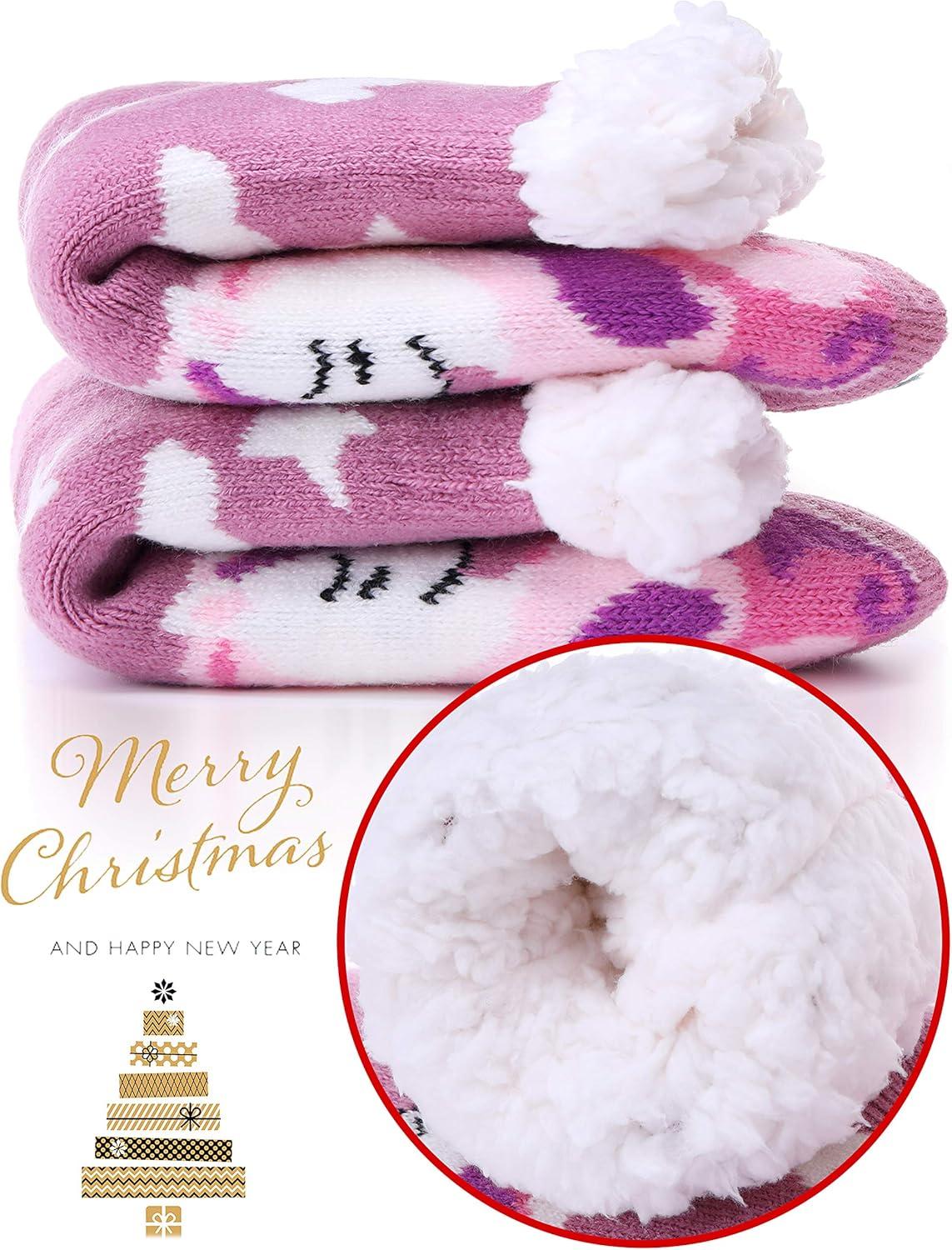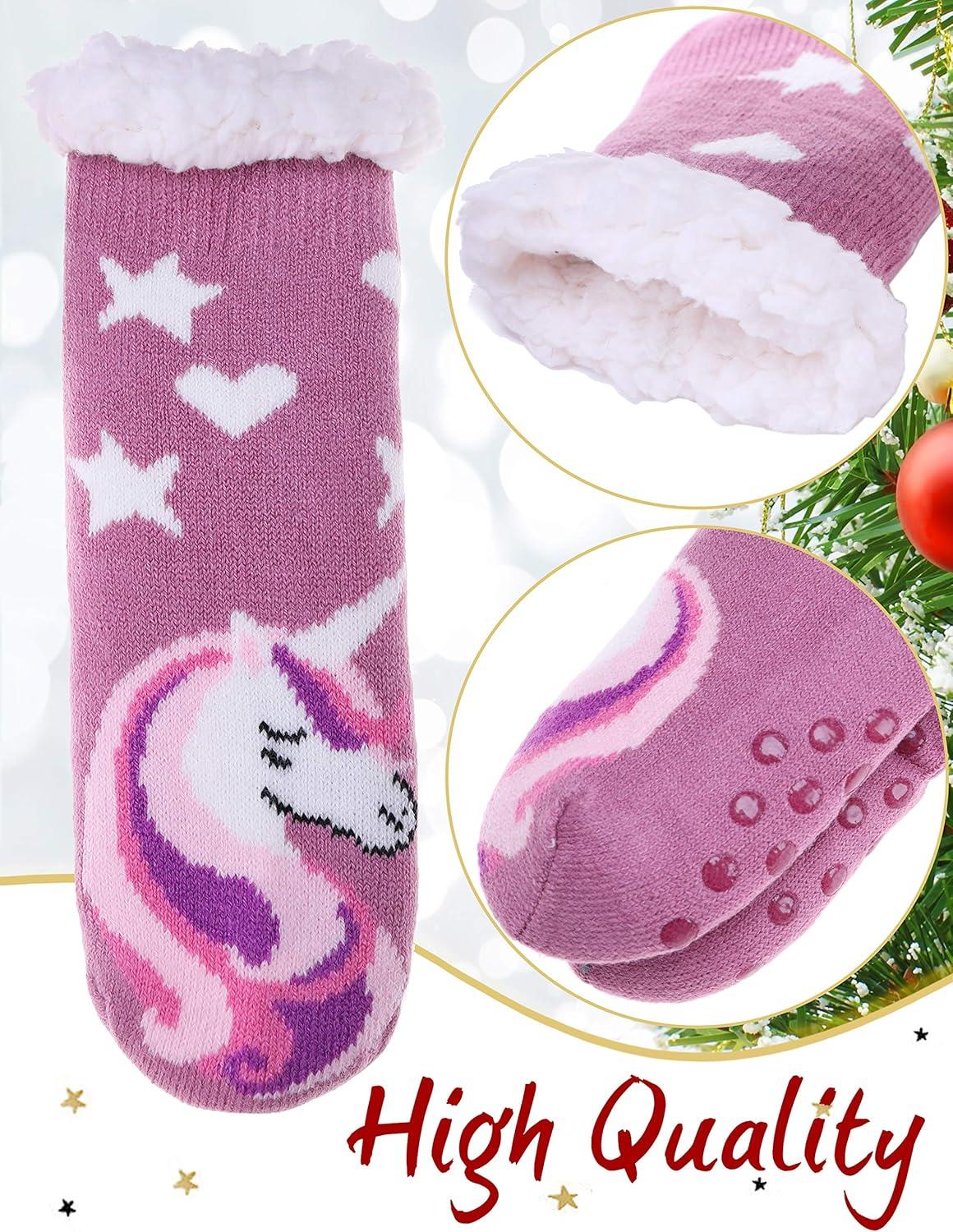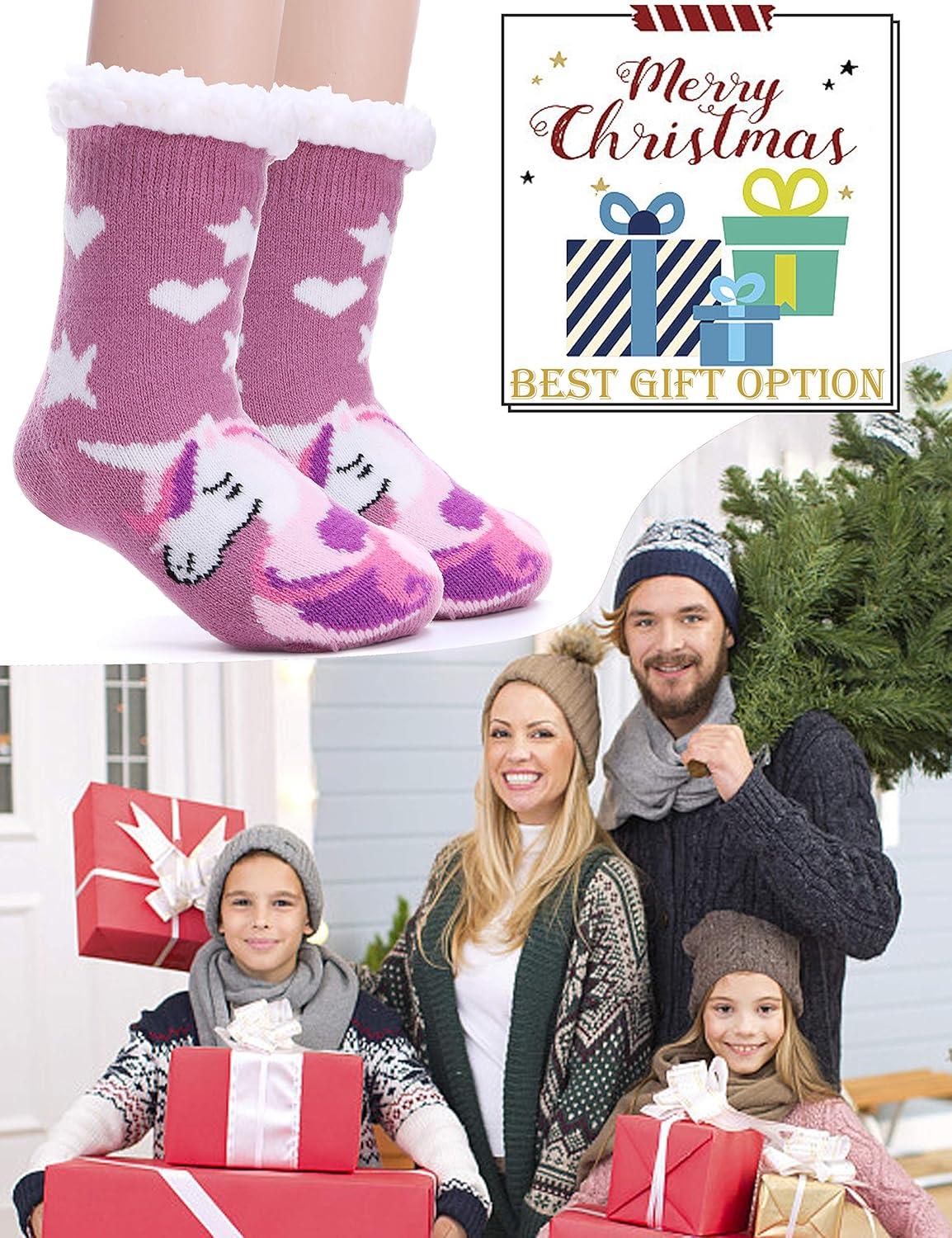 MOGGEI Girls Slipper Fuzzy Socks Kids Boys Fluffy Fleece Lined Warm Plush Sherpa Winter Child Home Socks(Unicorn B-purple)