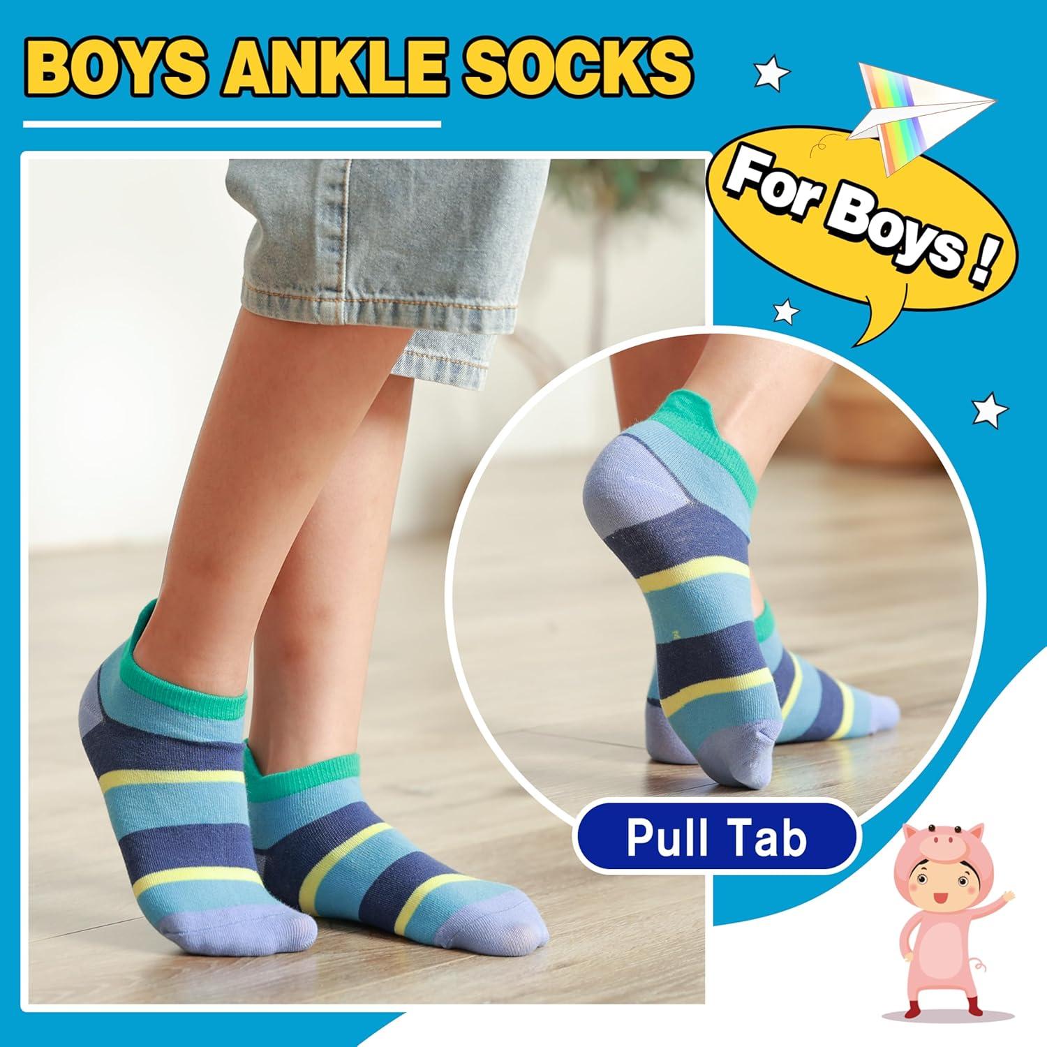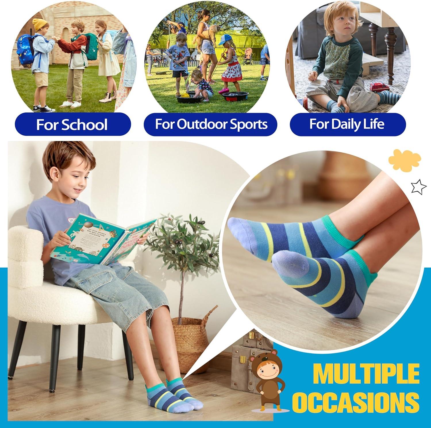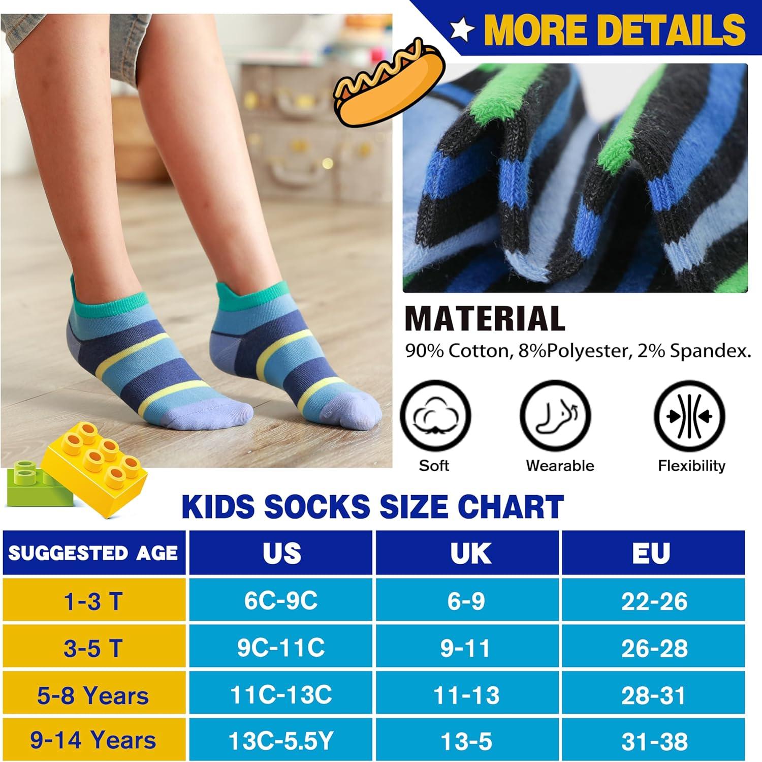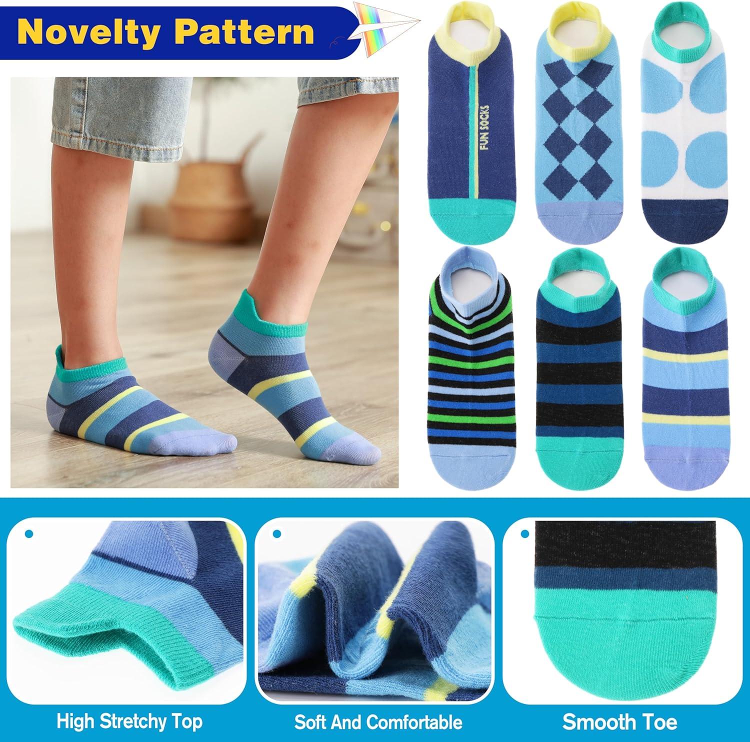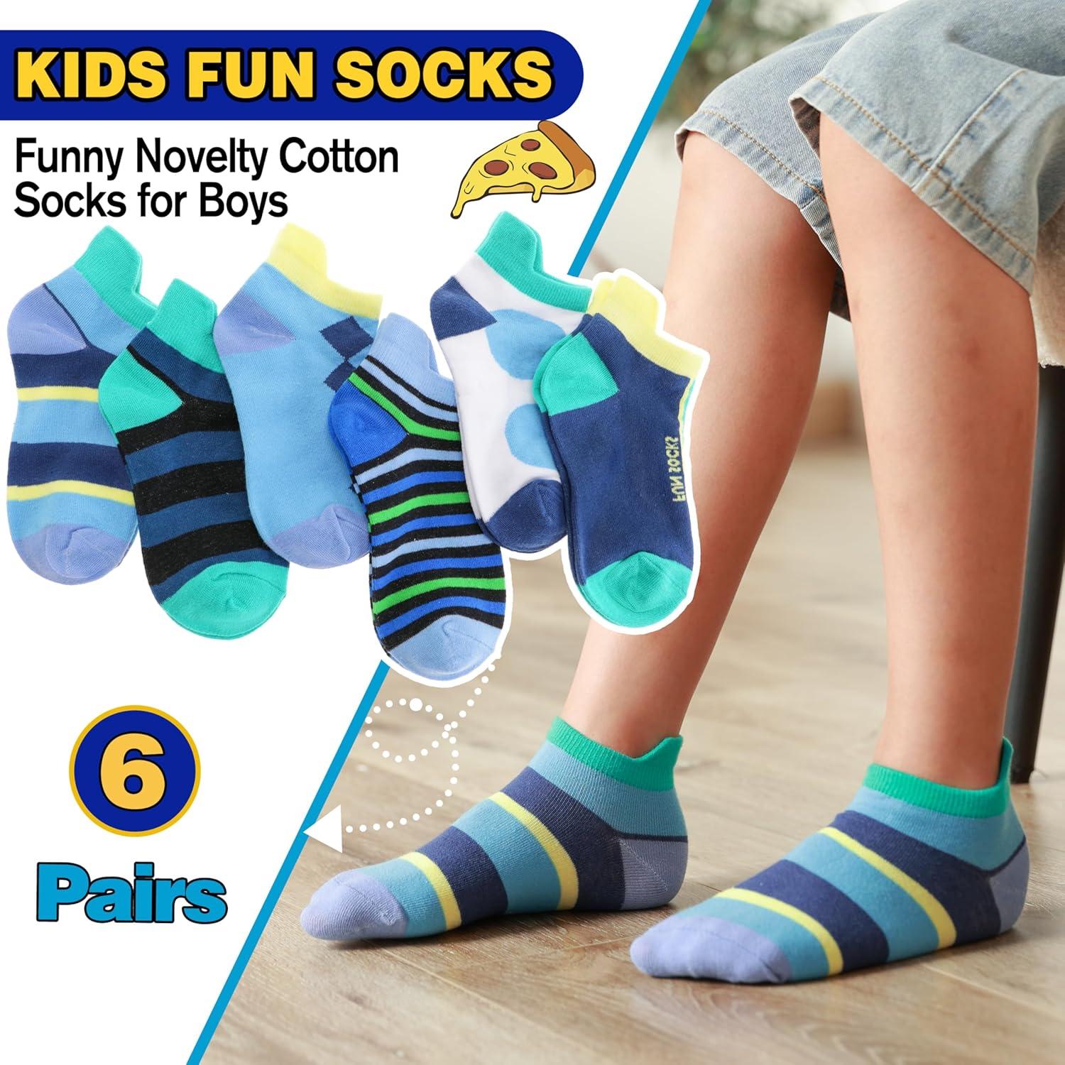 MOGGEI Kids Boys Ankle Socks Low Cut No Show Funny Cartoon Fun Cute Novelty Cotton Socks 6 Pairs(Striped)