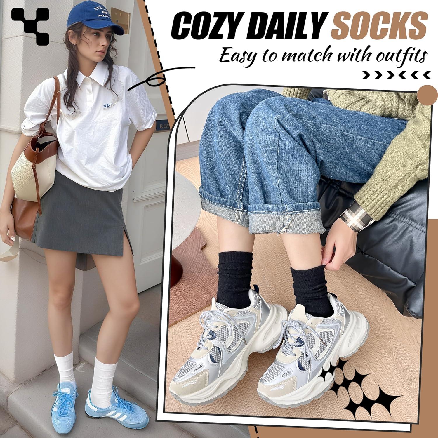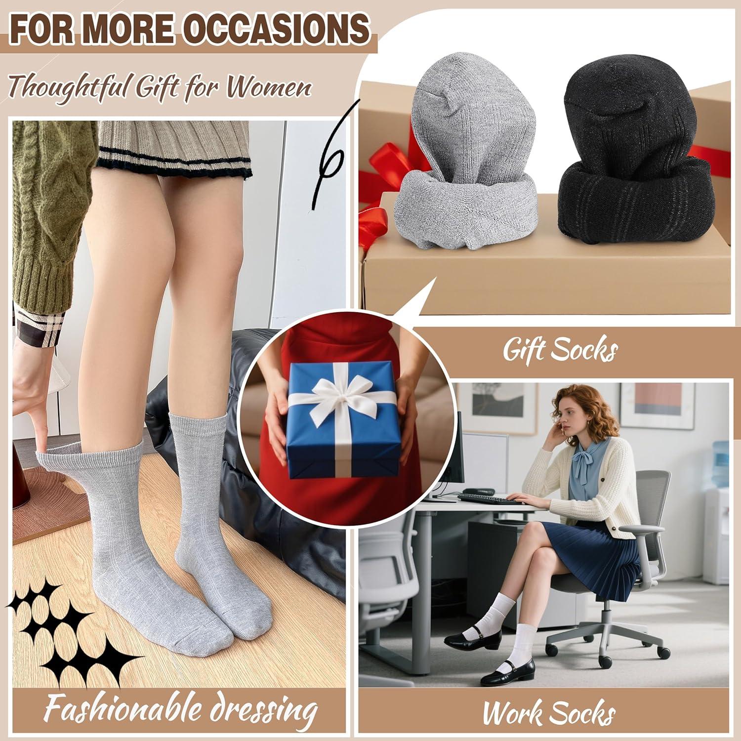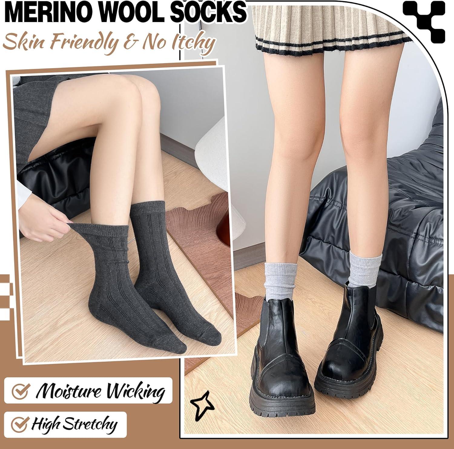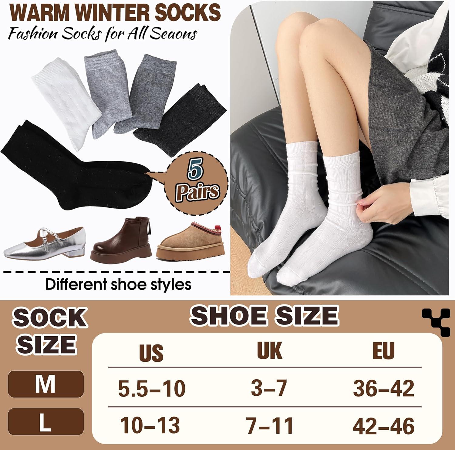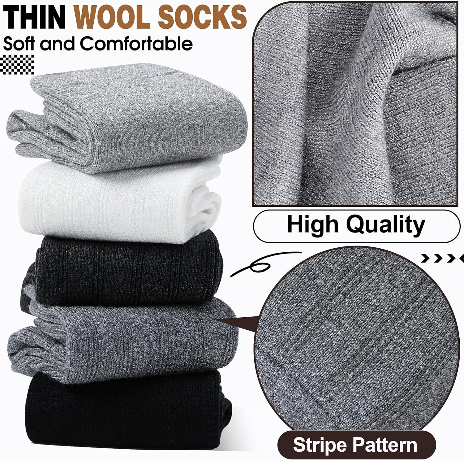 Thin Merino Wool Boot Socks Warm Winter Cozy Comfy Breathable Work Casual Socks for Women 5 Pairs(Black/Grey/White)