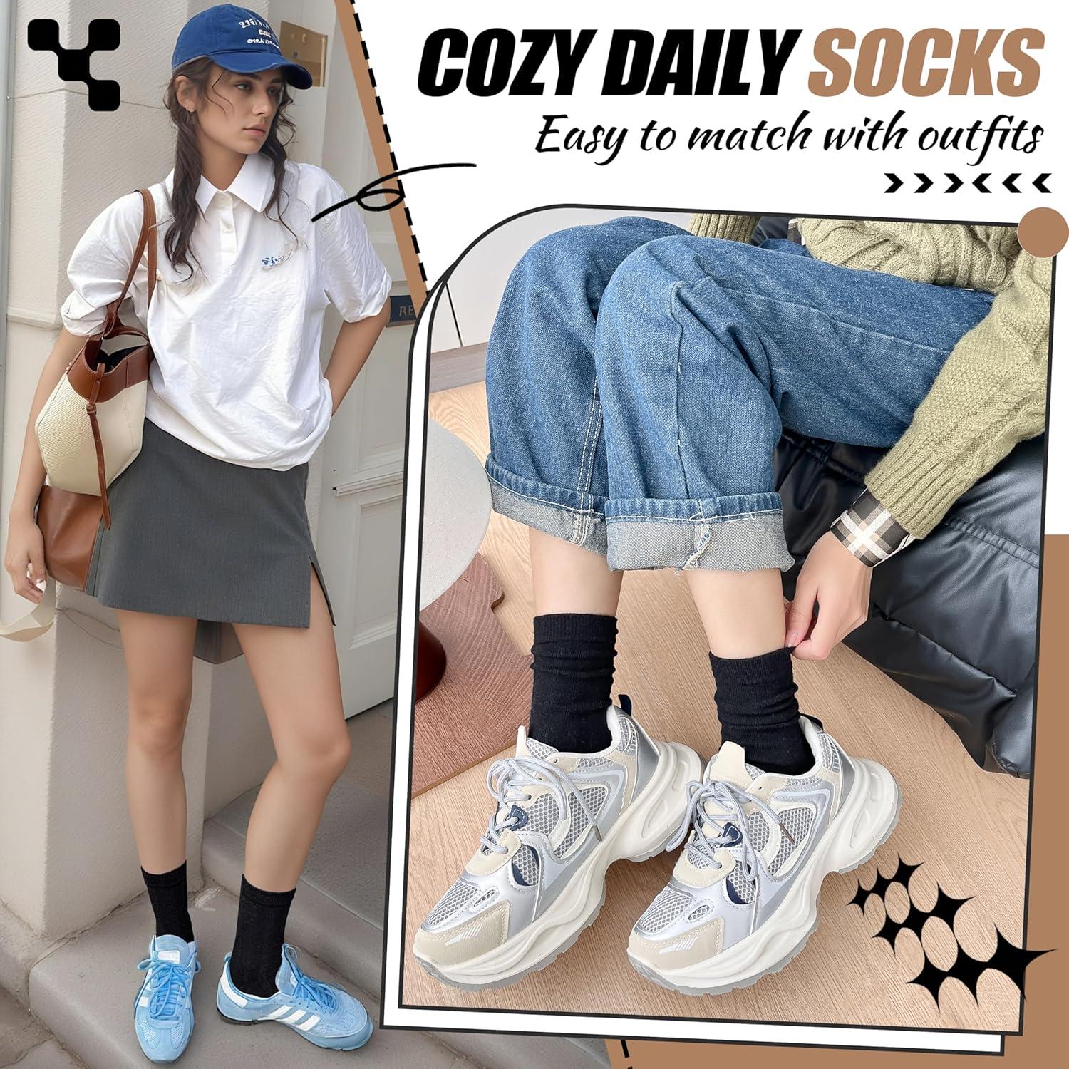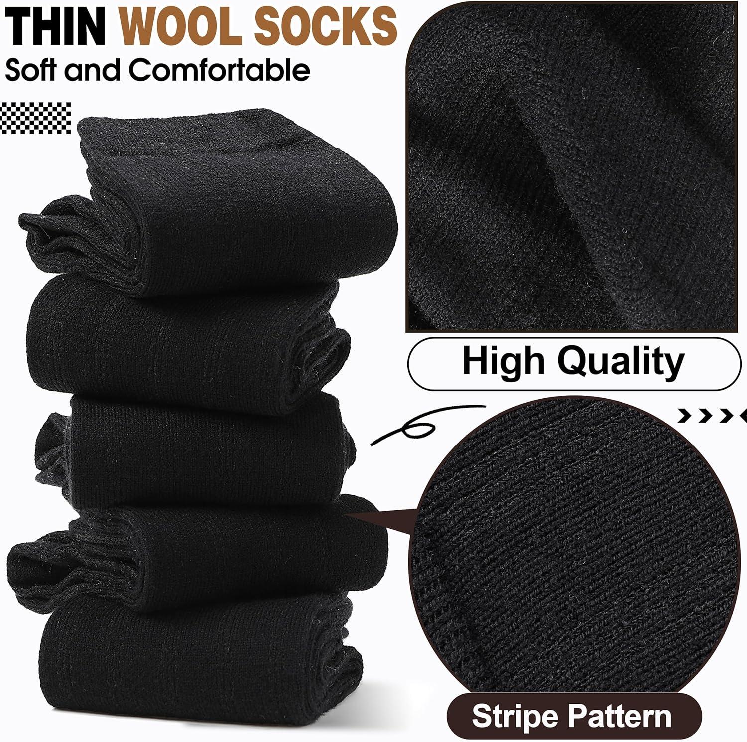 Thin Merino Wool Boot Socks Warm Winter Cozy Comfy Breathable Work Casual Socks for Women 5 Pairs(Black)