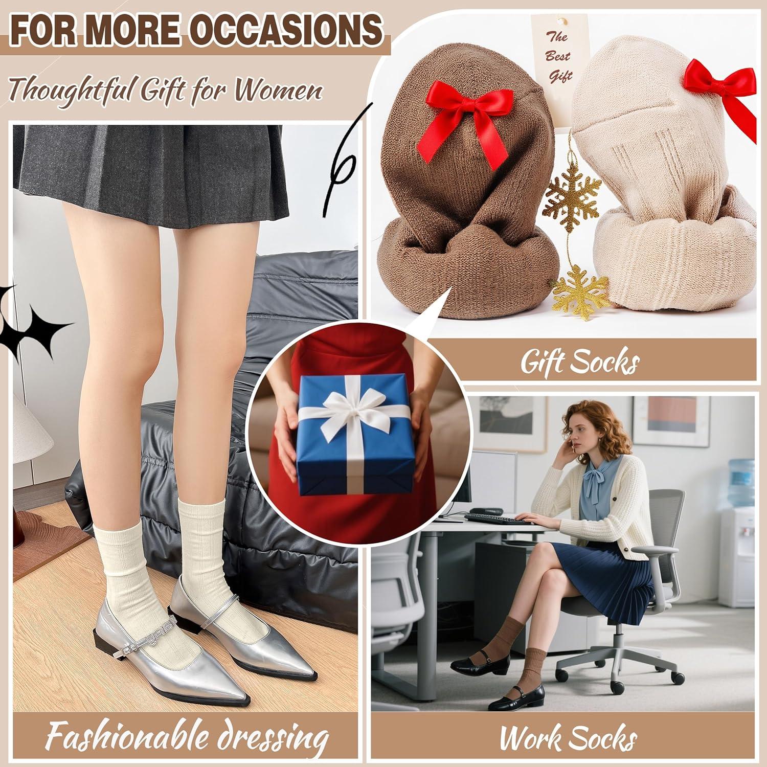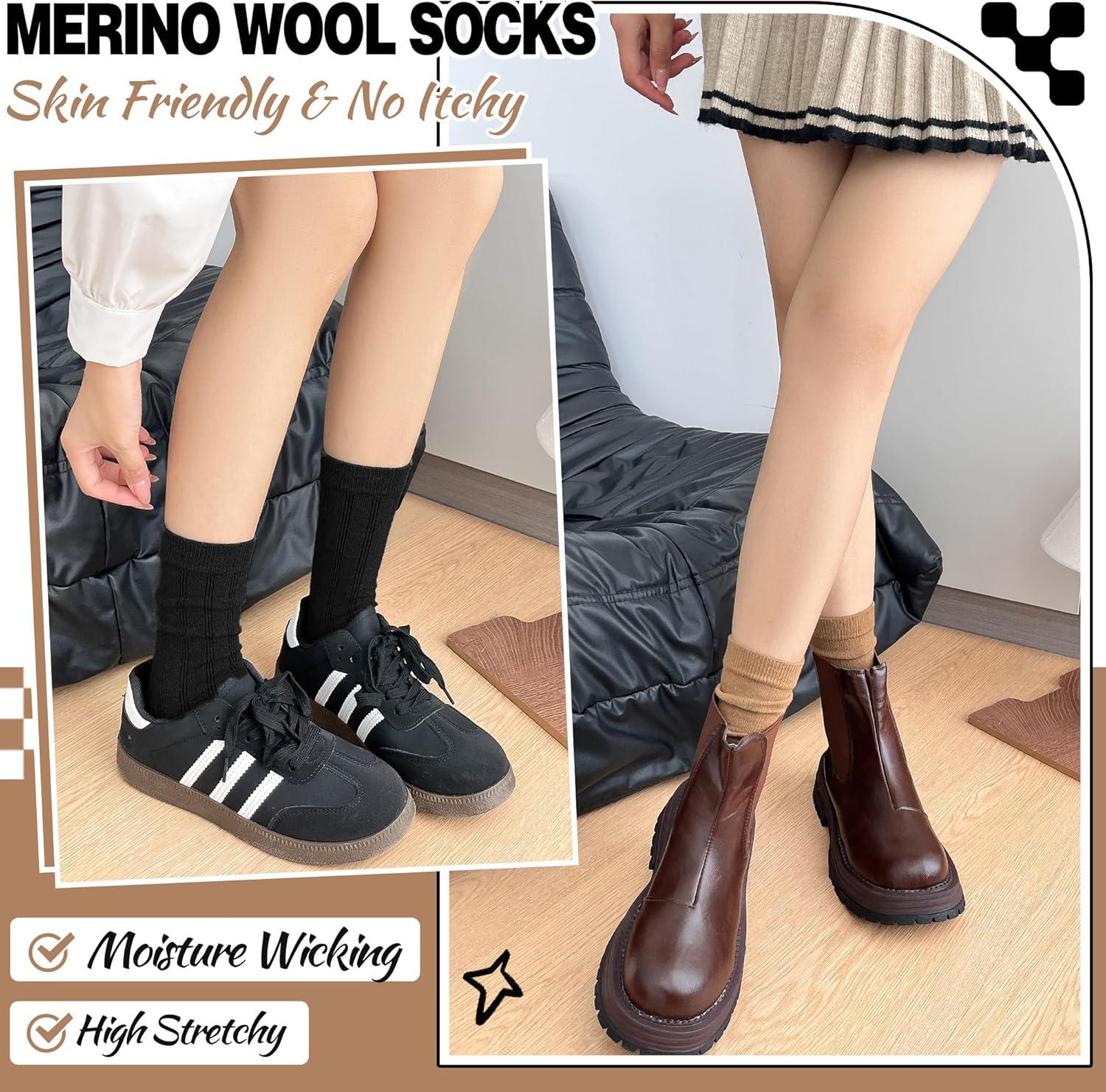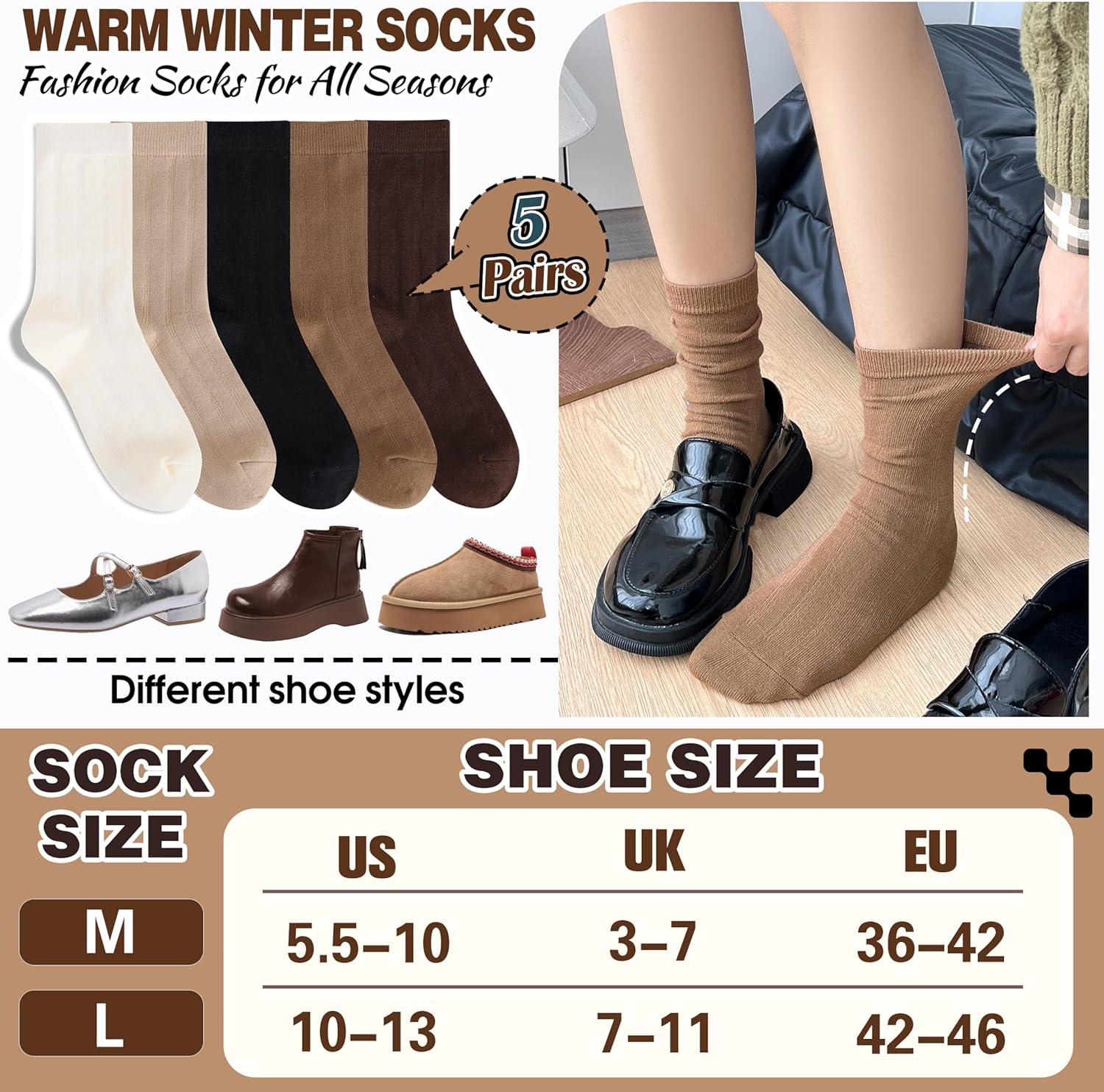 Thin Merino Wool Boot Socks Warm Winter Cozy Comfy Breathable Work Casual Socks for Women 5 Pairs(Khaki/Coffee/Beige/Black)